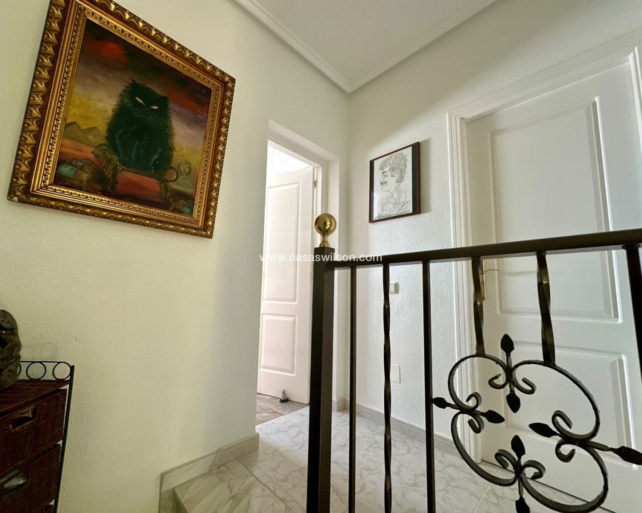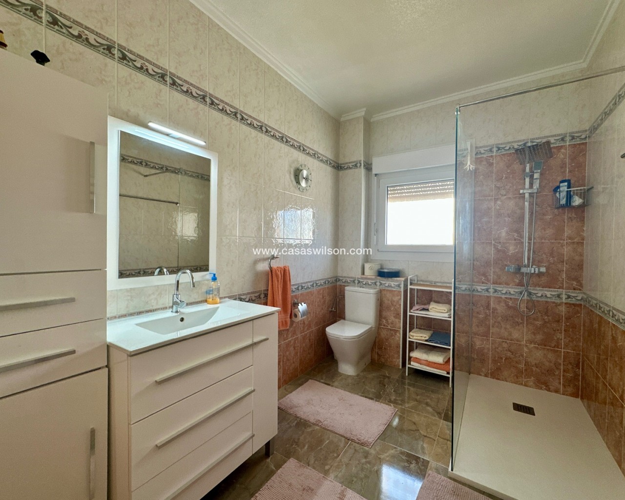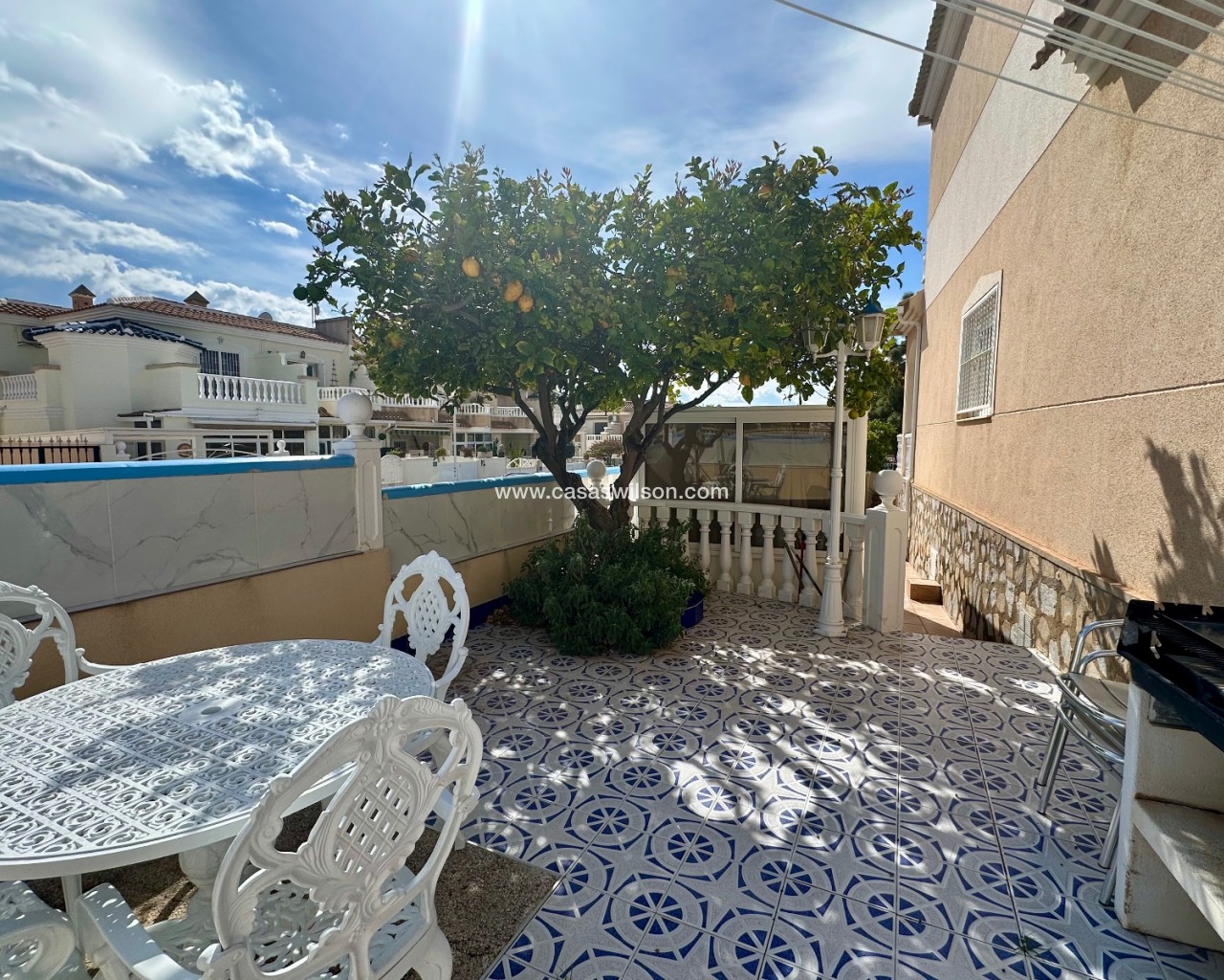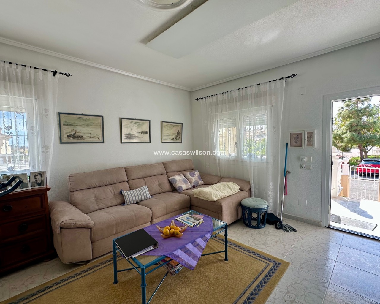 NIEUW in Portefeuille: hoekwoning met 2 slaapkamers en 2 badkamers, gelegen in de geliefde wijk Doña Pepa in Ciudad Quesada.De master bedroom beschikt over een aangrenzend ruim balkon met vrij uitzicht. Boven is de badkamer modern gerenoveerd. Voor extra comfort is er airco in de master en zijn er halogeen-warmtepanelenaanwezig.Buiten geniet je van een ruime, zonnige tuin en een terras aan de voorzijde met open uitzicht. In de tuin staan bovendien mandarijn- en citroenbomen. Praktisch is de opslag-/wasruimte van ca. 4 x 3 meter. Daarnaast is er een aparte, degelijk gebouwde ruimte die ideaal is voor een jacuzzi, en die je naar wens open of dicht kunt maken.De urbanisatie biedt een ruim gemeenschappelijk zwembad en fraai aangelegde gemeenschappelijke tuinen. De woning ligt bovendien op loopafstand van voorzieningen zoals winkels, bars en restaurants.LocatieDoña Pepa (Ciudad Quesada) is een populaire woonomgeving aan de Costa Blanca Zuid. Het strand (o.a. Guardamar del Segura) ligt op ca. 10–15 minuten rijden. Alicante Airport (ALC) bereik je in ca. 35–40 minuten. In de omgeving vind je meerdere golfbanen, zoals La Marquesa Golf (Ciudad Quesada) en diverse banen richting Orihuela Costa/Villamartín, op ca. 10–25 minuten rijden.