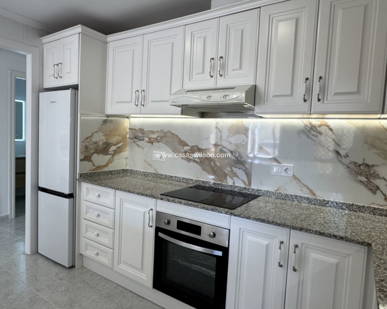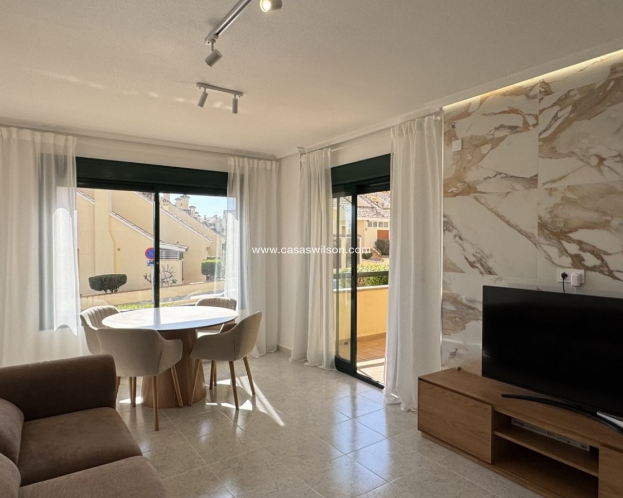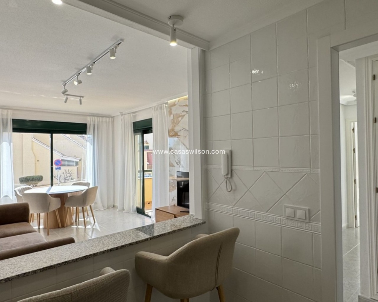 Dit volledig gerenoveerde appartement met zuidligging ligt in het prestigieuze golfgebied van Lomas de Campoamor en biedt een perfecte combinatie van comfort en stijl. Met 83 m² woonoppervlak beschikt het over 2 slaapkamers en 2 badkamers. Hoogwaardige afwerking met porseleinen tegels en natuursteen. Volledig naar buiten gericht, veel licht en ventilatie. Voorzien van airconditioning, gasverwarming, dubbele boiler en beveiligingssysteem. Lift aanwezig. Gemeenschappelijk zwembad en groene zones.