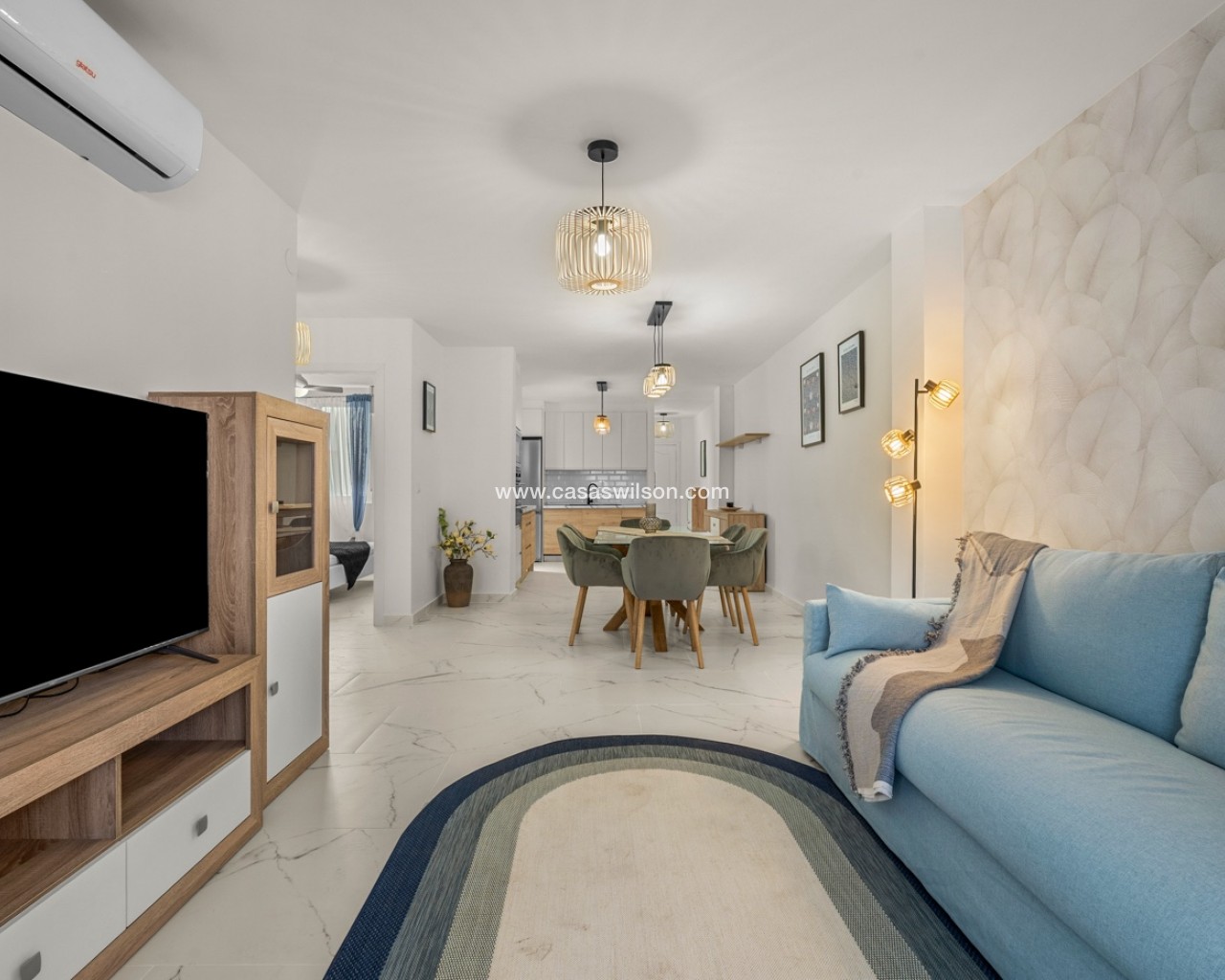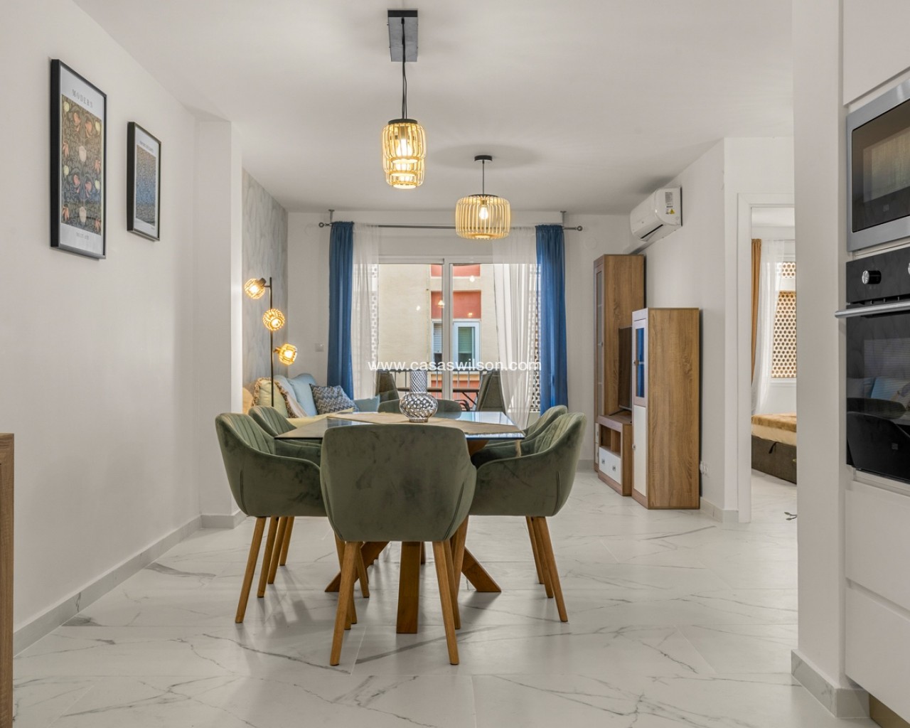 Prachtig appartement van 75 m², volledig gerenoveerd en direct te betrekken. De woning beschikt over drie ruime slaapkamers, waarvan één met een eigen badkamer, en een extra badkamer, beide voorzien van een douche. Het appartement heeft een moderne, volledig uitgeruste keuken met toegang tot een handige patio waar de wasruimte zich bevindt. De woon-eetkamer loopt naadloos over in de keuken, waardoor een lichte en luchtige open ruimte ontstaat, ideaal om tijd door te brengen met familie en vrienden. Alle kamers zijn voorzien van plafondventilatoren en airconditioning, voor comfort het hele jaar door. Het appartement biedt gedeeltelijk zeezicht en geniet een toplocatie in Playa del Cura (Torrevieja), op slechts een steenworp afstand van het strand en de boulevard, omgeven door recreatiegebieden, restaurants en alle voorzieningen. Het appartement wordt volledig gemeubileerd verkocht en is inclusief een parkeerplaats.