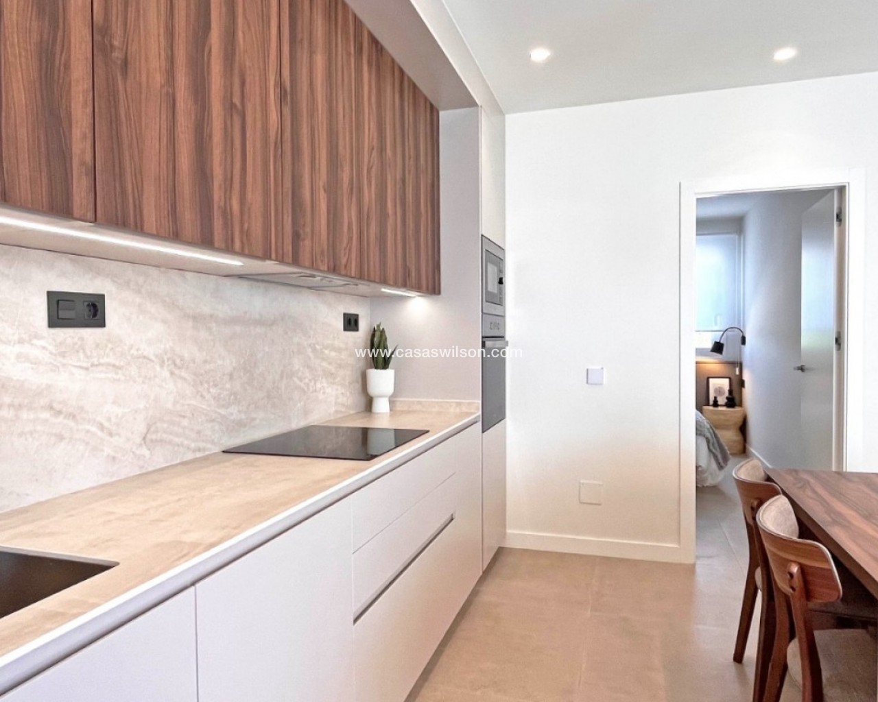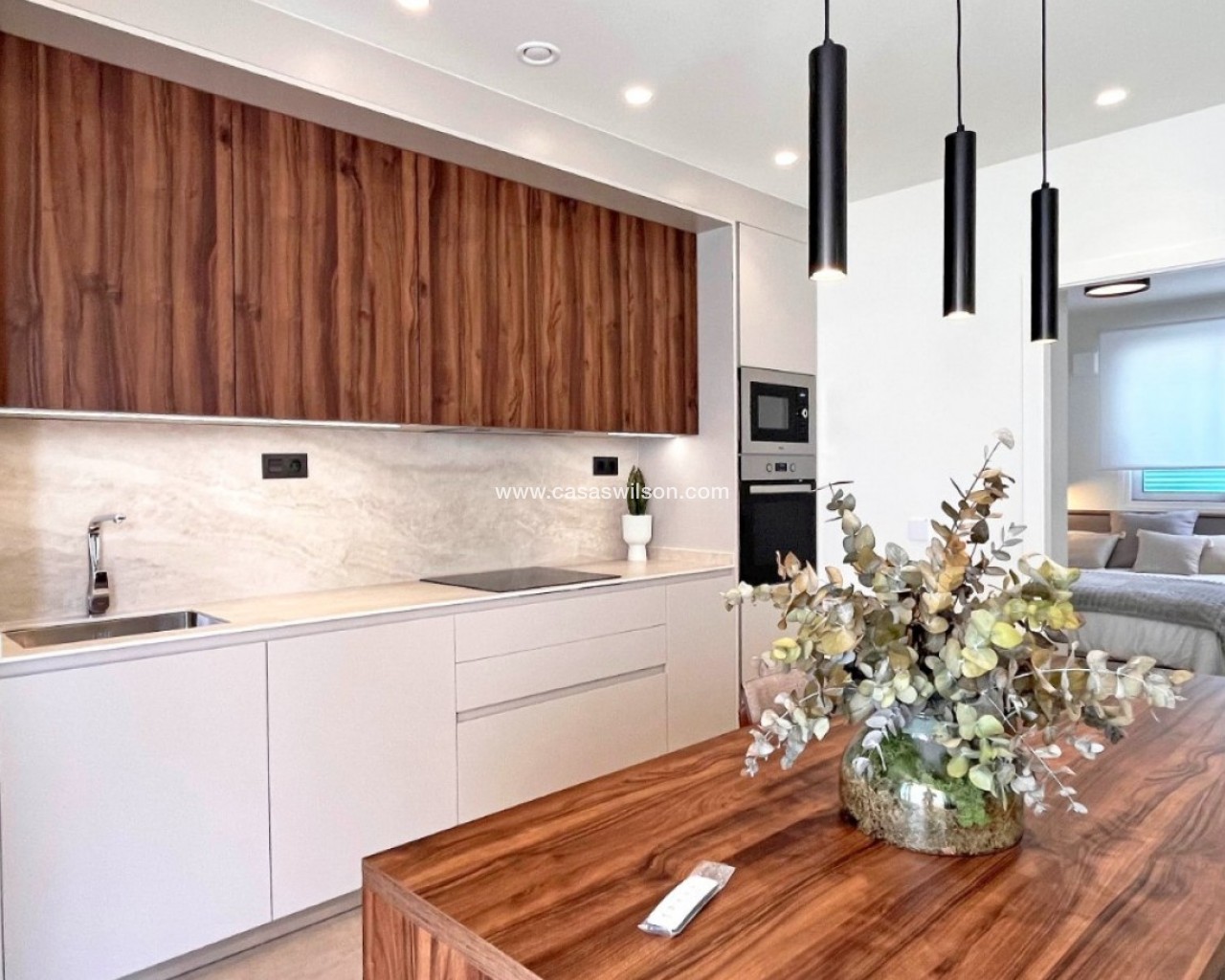 NEW BUILD RESIDENTIAL COMPLEX IN TORRE DE LA HORADADA New Build residential complex of bungalow apartments in Torre de la Horadada only 450m from the beach. All properties has 3 bedrooms, 2 bathrooms, open plan kitchen with the lounge area, fitted wardrobes and terrace. Beautiful bungalows on the ground floor has private garden with the pool, bungalow on the top floor has private solarium with the pool. All properties has private parking. Torre de la Horadada is located south of Alicante in a beautiful location on the coast. The beautiful beaches of Torre de la Horadada and Mil Palmeras have fine sand beautiful promenade. There are lots of restaurants, bars and shops, also water sports, diving and snorkelling. It is well connected just 40 minutes from Alicante and Murcias Corvera airports, with large commercial shopping centres and multiple golf courses all within easy reach.