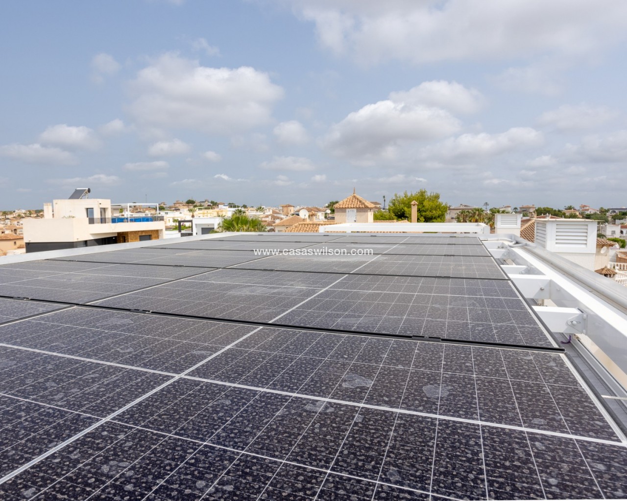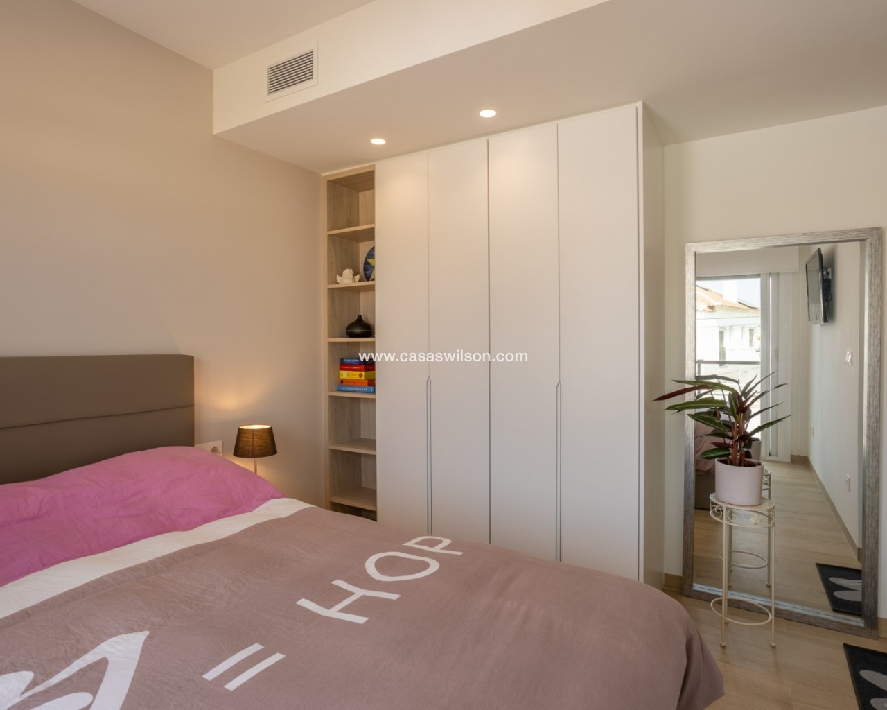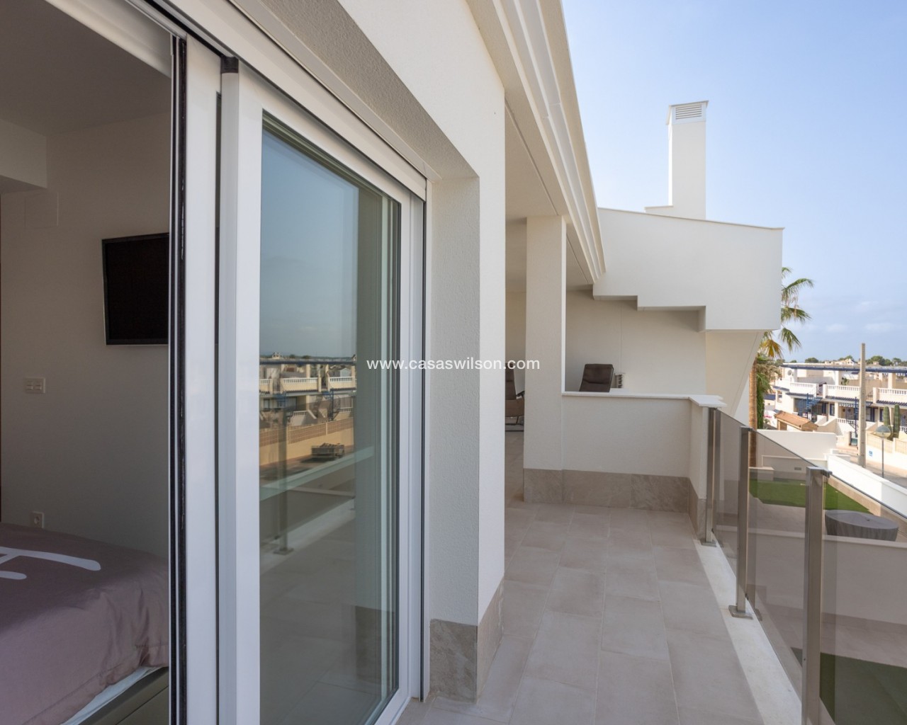 This excellent 2 bedroom, 2 bathroom apartment in San Miguel de Salinas - Blue Lagoon offers a comfortable living space of 80m2. The penthouse is located on the 1st floor and has a very nice communal swimming pool and a private underground parking space with a large lockable storage room. The apartment has an open kitchen, which is perfect for receiving your guests and is fully equipped with household appliances. The property has a beautiful solarium, from which you can also see the sea and has a beautiful, large and complete outdoor kitchen, which even has extra storage space! Naturally, the property has air conditioning, but an alarm and a reinforced door also provide extra security. The balcony, which is accessible from the living area, offers a wonderful place to enjoy the panoramic view. Conveniently located just 15 minutes from the beach, 45 minutes from the airport and 5 minutes from both amenities and golf courses, this apartment is ideal for those looking for a peaceful lifestyle with good connections. The communal pool, garage and intercom system add to the convenience and comfort of this property. With the added features of an awning, mosquito nets and an outdoor kitchen/BBQ area, this apartment offers a wonderful living experience. Don't miss the opportunity to view this beautiful property!