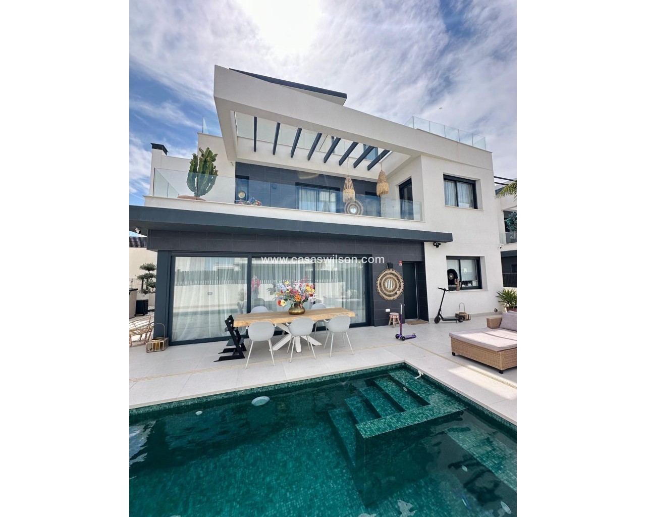 We are excited to offer a stunning detached villa in the desirable area of La Finca Golf, Algorfa. Built in 2022, this ultra modern home offers a spacious internal layout, perfectly designed for comfortable living. With five generous bedrooms and four stylish bathrooms, there's ample space for families or those who enjoy guests. The villa also features a basement, providing additional room for storage or recreational use. The solarium has a sun canopy for much needed shade in the hottest months. From here there are extended views towards the coast and mountains. The property boasts a private heated swimming pool, ideal for enjoying the winter and summer climate while relaxing in your own garden. The property is presented unfurnished, allowing you to customize the space to your taste, creating a home that truly reflects your style. There are many extra's to offer: under floor heating in the bathrooms, luxury tiles, spacious solarium with great views towards the mountains and coast, luxury kitchen with Bosch equipment and dishwasher and luxury worktops, utility room with large boiler, solar panels, electric shutters, heated pool with multiple colored illumination, electric pool cover, marble staircases, extra outdoor lights, electric entrance gate, preinstallation for electric car loader. This is a ultra luxury home which provides all the neccesary comfort! The property is within walking distance to a lively commercial centre with bars and restaurants. The famous golf course la Finca Golf is within a few minutes drive. La Finca Golf is a luxury resort where you find space to walk or cycle in the surrounding areas. It offers total tranquility and with neighbouring villages nearby there is plenty of ways to enjoy all close amenities. This villa is a perfect opportunity for those looking to invest in a modern and spacious property. Don't miss out on this unique chance to own a beautiful home in a prestigious location.