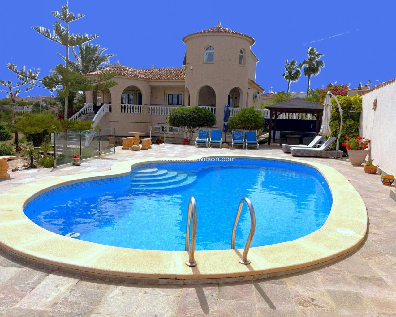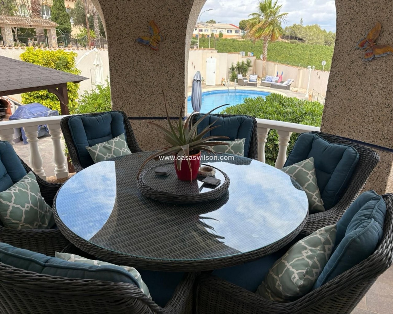 For sale is a stunning detached villa located in the tranquil area of Algorfa. This beautiful resale property boasts a generous internal space of 375 square meters, featuring five spacious bedrooms and four modern bathrooms, perfect for families or those who enjoy entertaining. This villa is situated on a large plot that offers privacy and room for outdoor activities. You will appreciate the fully furnished interior that combines comfort with style. Enjoy the warm climate from your private swimming pool, or take a moment to relax and admire the breathtaking mountain and country views that this location has to offer. Algorfa is known for its welcoming atmosphere and is conveniently close to a variety of amenities, including shops, restaurants, and recreational areas. The surrounding landscape provides a peaceful retreat from the hustle and bustle, making it a perfect place to unwind. Don't miss the chance to own this exceptional property that combines luxury living with natural beauty. For more information, contact us today.