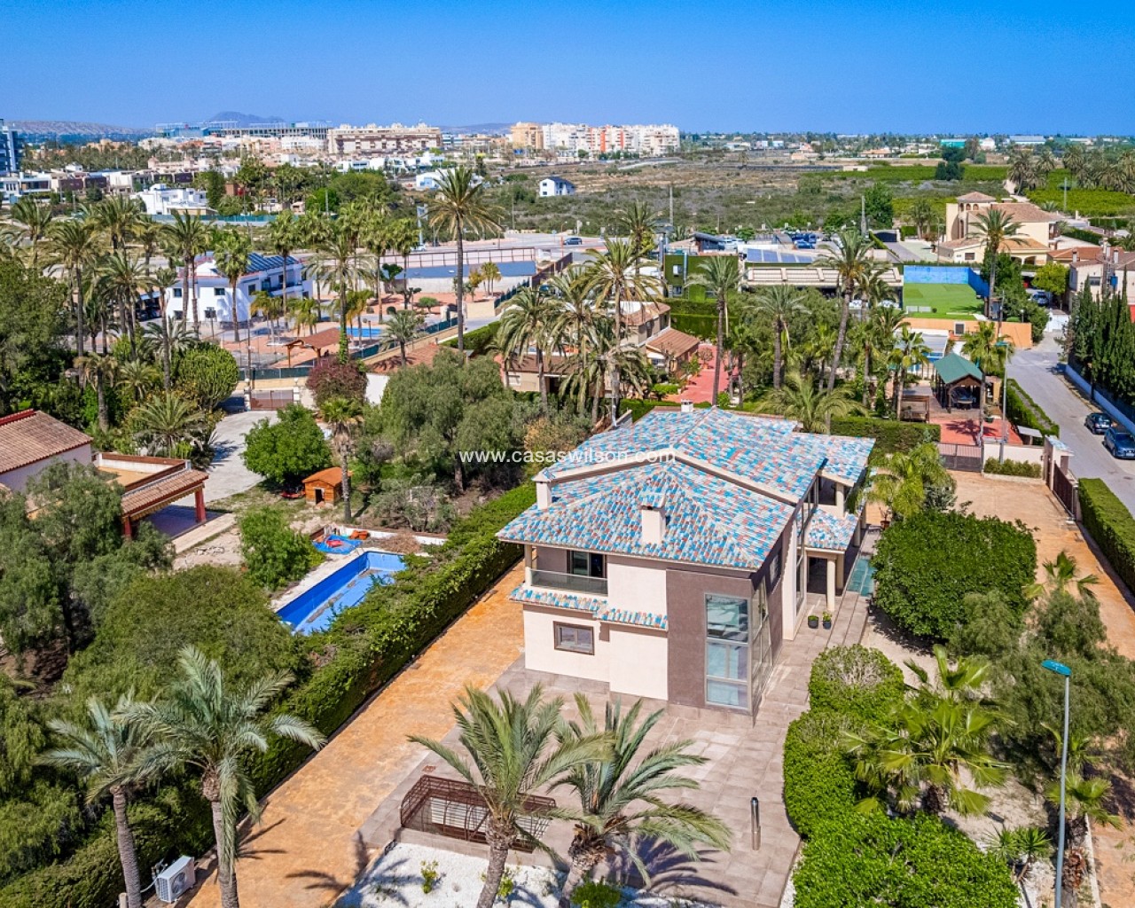 Welcome to this spacious villa with a great location in Elche. The property has 2 floors and a basement, and a total of 5 bedrooms and 3 bathrooms. On the ground floor you will find a foyer, a big living room, kitchen and dining area, a family room that can be used as a bedroom, another bedroom that is used as an office, a laundry room, pantry and a bathroom. On the 1st floor you will find the master bedroom with access to a bathroom, a walk-in-closet, two more bedrooms and one more bathroom. From two of the bedrooms you have access to their private balconies. The basement consists of two big rooms, a patio, a storage, an electrical room and two bathrooms that will need some work. The plot is spacious and in the entrance you will also find a covered parking and a barbecue. The entire house has water-based underfloor heating. For more information or to schedule a viewing, contact us!