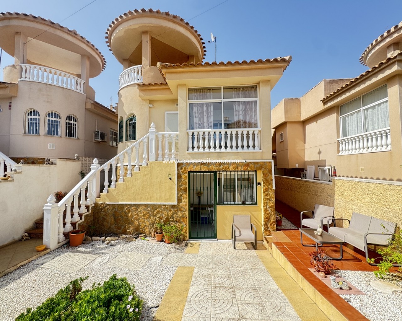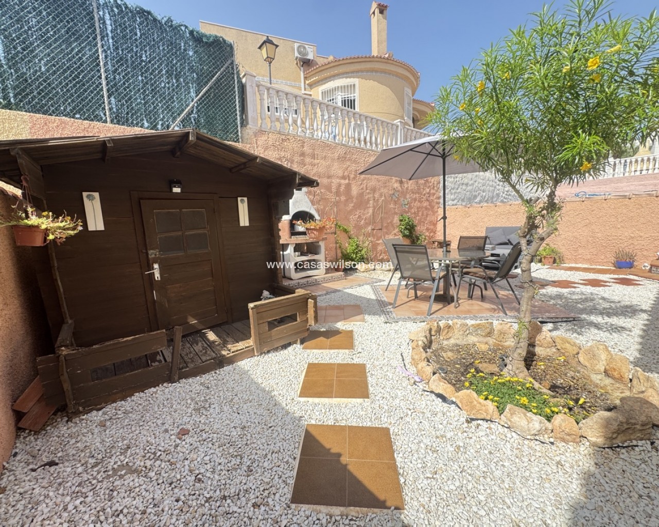 Spacious 4-Bedroom Detached Villa in El Galan, Villamartin Discover the perfect blend of comfort and versatility in this 4-bedroom, 2-bathroom detached villa, situated in the desirable El Galan area of Villamartin. Unique Layout: - Main floor: Front porch, lounge, kitchen, 2 bedrooms sharing a modern family-sized bathroom - Downstairs: Another lounge with kitchen, 2 bedrooms, and bathroom, providing separate accommodations or perfect for multi-generational living Key Features: - 4 spacious bedrooms, each with ample storage and natural light - 1 modern bathrooms - 2 lounges and 2 kitchens, offering flexibility and independence - Large roof solarium, providing stunning views and a perfect spot to relax Plot Potential: - Ample space to add a private pool, just like neighboring properties - Mature plot, perfect for outdoor living and entertaining Ideal for: - Multi-generational families, seeking separate living areas - Investors, interested in a property with rental potential - Individuals, looking for a spacious and versatile villa with room for expansion