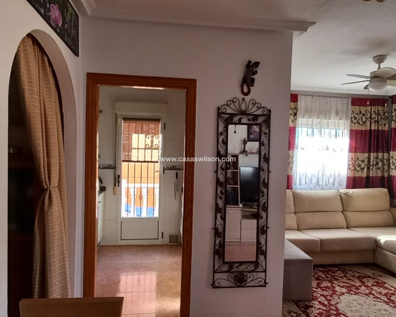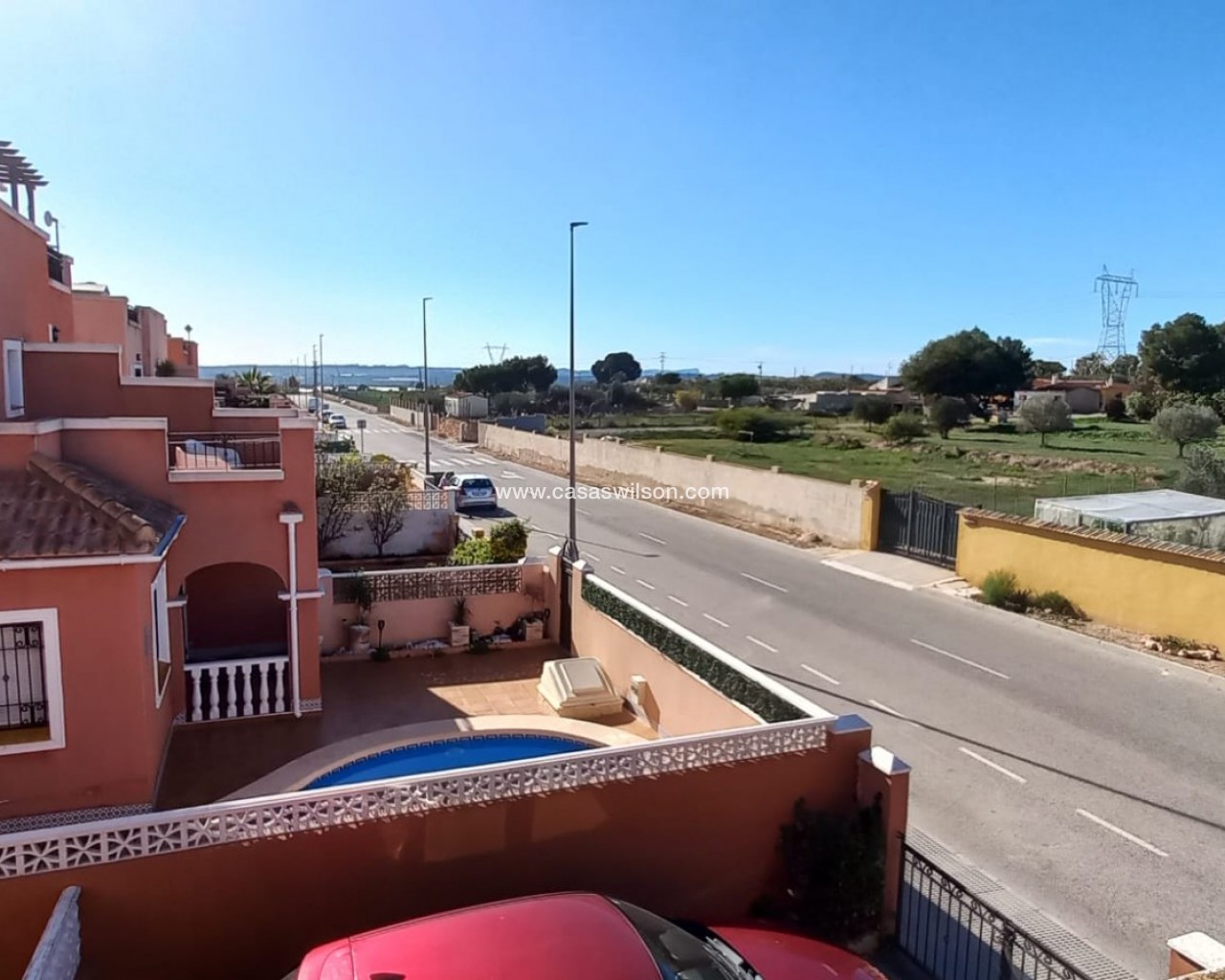This three bed, two bath quad house is located on the popular La Herrada urbanisation close to Los Montesinos. This house has 88,49m2 built and a living area of 74,33m2. It is distributed in two floors: ground floor, with living-dining room, independent kitchen with access to the garden, one bedroom and a complete bathroom; first floor, with two bedrooms, terrace and complete bathroom. It is in good condition. The property has air conditioning, fitted kitchen with some electrical appliances, and fitted wardrobes in the bedrooms. From the solarium there is a beautiful view of the Natural Park of Las Lagunas de La Mata and Torrevieja. The exterior of this property also has parking space and access door for vehicles. This property is part of an urbanization with communal green areas and swimming pool open all year round. La Herrada also has its own supermarket, bars and restaurants. Only 1.5km away you will find Los Montesinos, where you will find all the main services and leisure facilities.