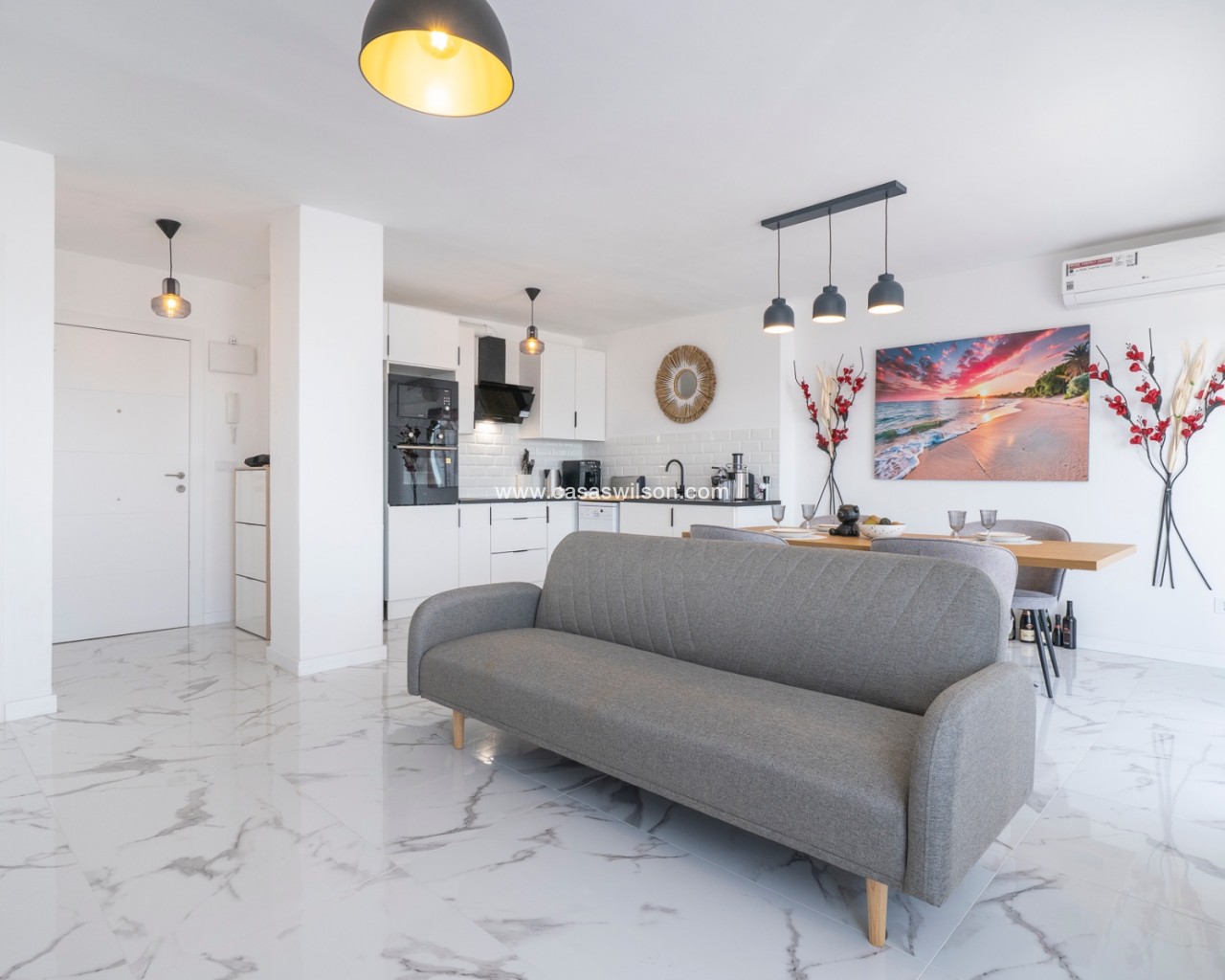 Discover this bright 2-bedroom, 2-bathroom apartment, designed to offer comfort, spaciousness, and an exceptional quality of life. Located in an exclusive gated community in Punta Prima, this home is perfect both as a permanent residence and as a vacation investment. Upon entering, you are welcomed by a spacious living-dining room with an open-plan kitchen, ideal for enjoying time with family or friends. The integration of the spaces and the excellent orientation allow for a constant stream of natural light throughout the day. From the cozy private balcony, you can enjoy unobstructed views of the sea, the perfect spot to relax at the end of the day. ✅ 2 double bedrooms with built-in wardrobes ✅ 2 full bathrooms ✅ Fully equipped modern kitchen ✅ Private parking space included ✅ Gated community with swimming pool ✅ Just minutes from all amenities: supermarkets, restaurants, public transportation, schools, and leisure areas ✅ Quiet and well-connected surroundings A property that combines style, functionality, and a prime location. Come visit and fall in love!