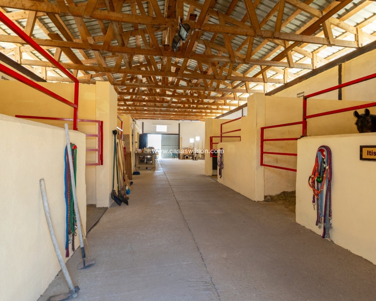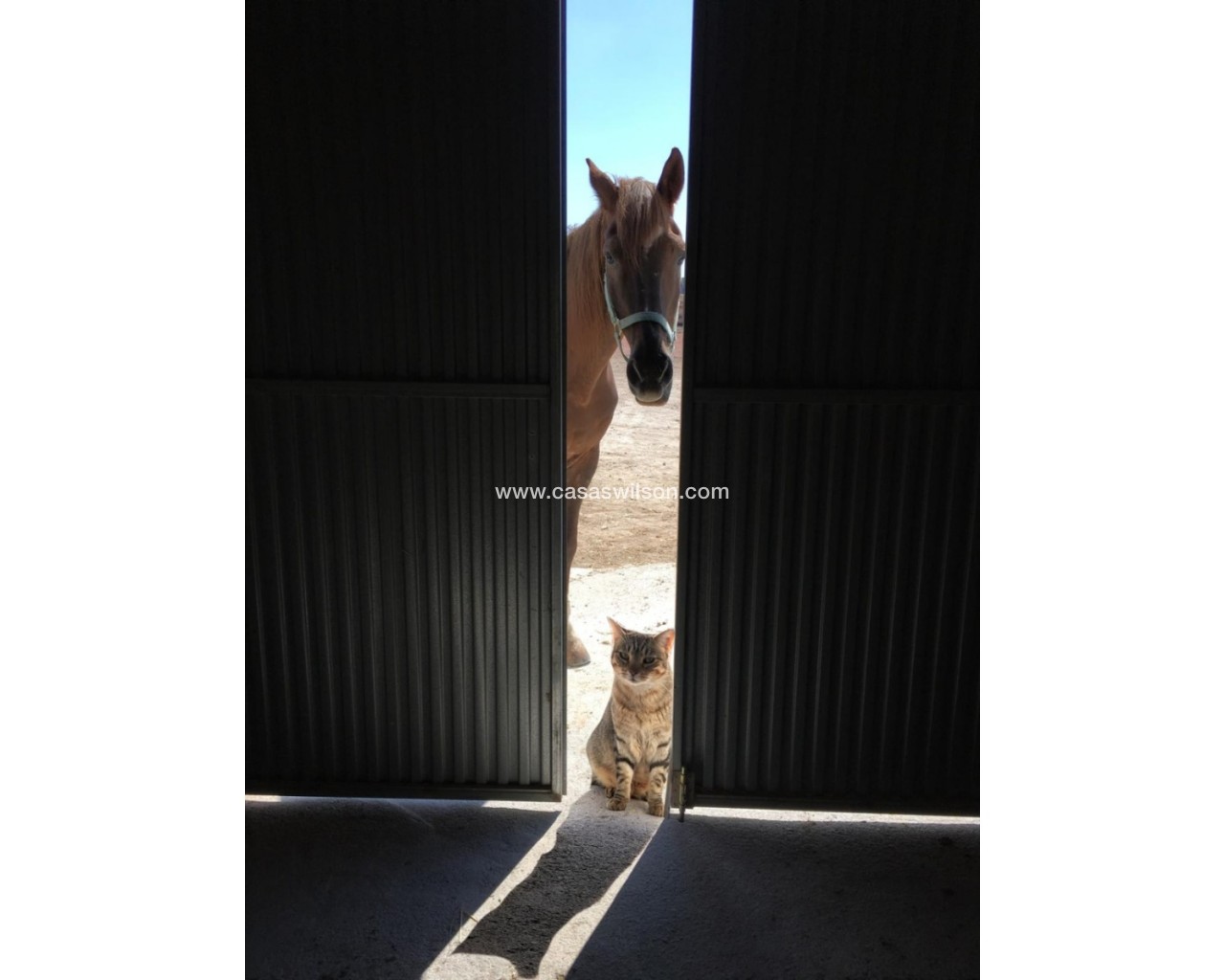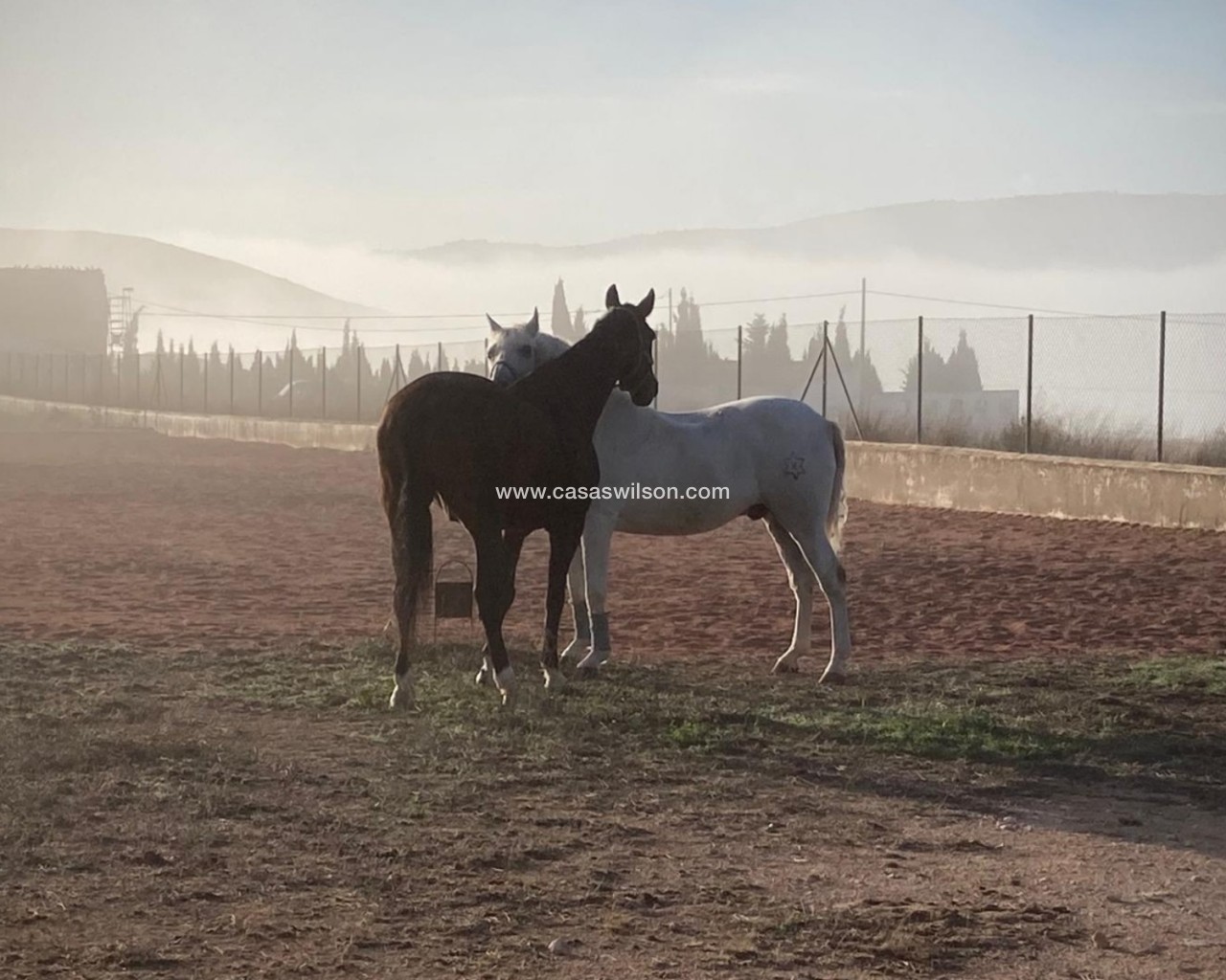 Unique horse lover's villa with multifunctional American stables and panoramic mountain views – Torre del Rico (Murcia) Are you looking for a rural property with plenty of space, peace and quiet, and the opportunity to keep horses or start a home-based business? This charming, single-story villa with three bedrooms is situated on a fully fenced plot of no less than 7,944 m², surrounded by breathtaking mountain views. Located in the quiet village of Torre del Rico, just an 8-minute drive from the charming town of Pinoso and within walking distance of a local bar, this property combines the best of rural tranquility with easy access and daily amenities. The villas The house is entirely on one level and offers a comfortable and practical layout. You have access to: Three spacious bedroomsTwo bathroomsA spacious living room with a cozy wood-burning stove – perfect for the cooler monthsAn oil heating system that also provides hot waterDouble glazing and thermally insulated walls for optimal living comfort, all year roundFront and rear terraces to enjoy the natural surroundings in peace and quiet Behind the house is a separate casita, which houses the boiler and oil tank—practical and discreet. The multifunctional American barn – endless possibilities An absolute highlight of this property is the impressive 200 m² fully enclosed American-style barn, which was originally designed as a horse stable. This solid, multifunctional space currently features: Four spacious horse stalls, including one for a mare with foalFeeding and preparation areasA tack roomSufficient extra space for adding multiple boxes But this barn offers more than just storage space. Thanks to its concrete floor, large internal surface area, and enclosed structure, the building is ideal for a variety of purposes. Consider using it as a workshop, storage space, vintage vehicle garage, or for small-scale commercial activities at home. The possibilities are endless—whatever you're looking for in a large, multifunctional space, here you can go in any direction. Outdoor space and grounds The entire plot is fenced with a combination of walls and fencing, offering optimal security and privacy—ideal for animals or equipment. There are two wide entrance gates measuring 8 meters wide, providing excellent accessibility for trailers, trucks, or service vehicles. Location and amenities This villa is located in Torre del Rico, in the province of Murcia—a region known for its tranquility, nature, and easy accessibility. Only 8 minutes from Pinoso with supermarkets, shops, and restaurantsGood connections via national roadsWater and electricity via the public grid Are you looking for unique horse accommodation with a multifunctional barn, suitable for both private and commercial use?Then this villa in Torre del Rico is definitely worth a visit. Contact us today for more information or to schedule a viewing.