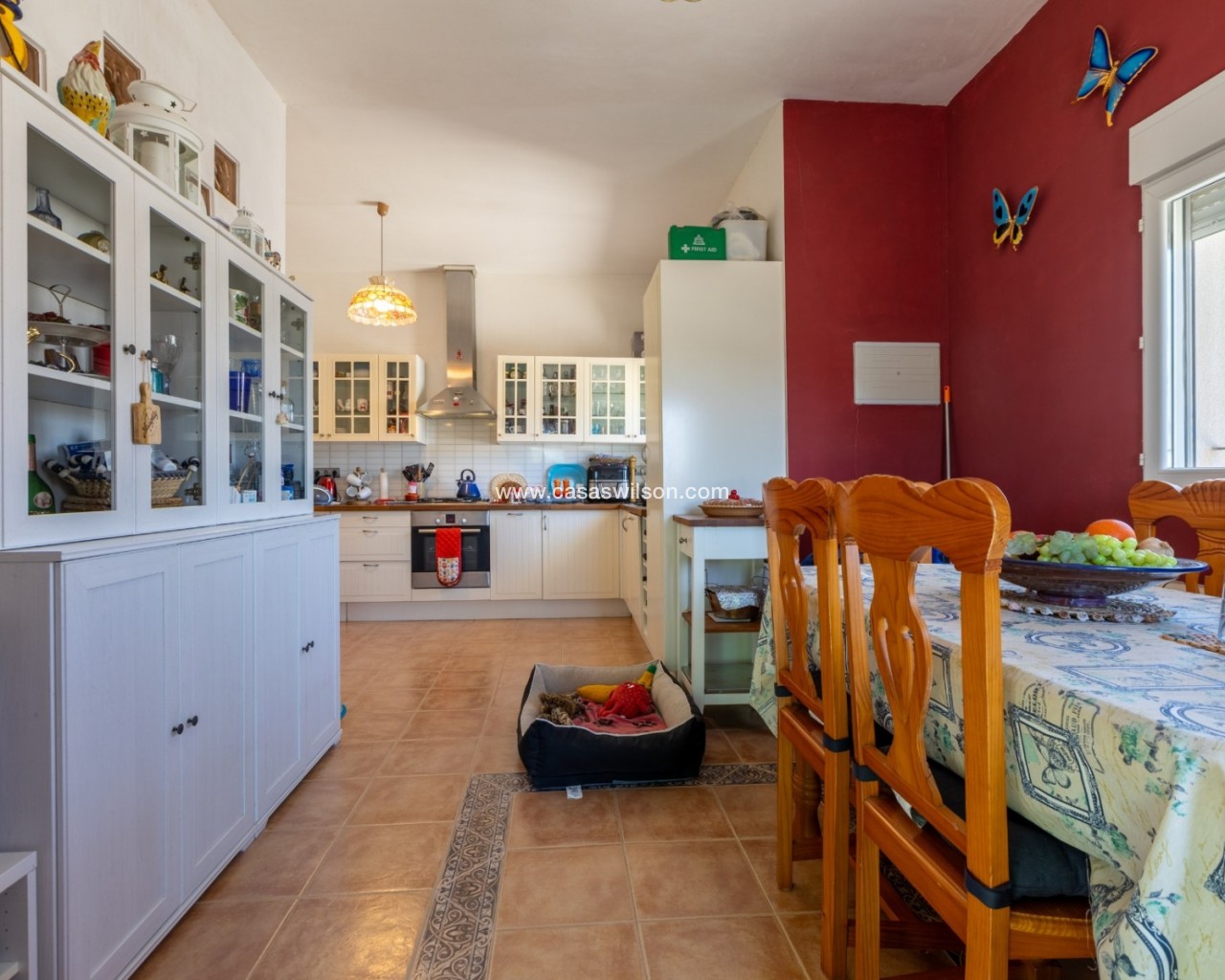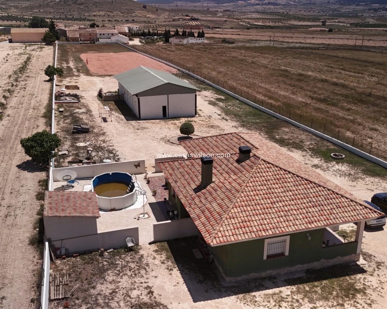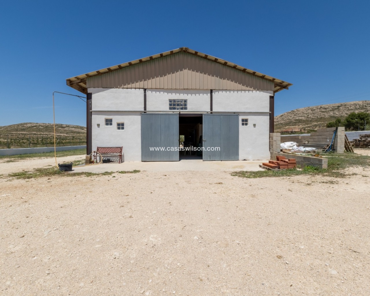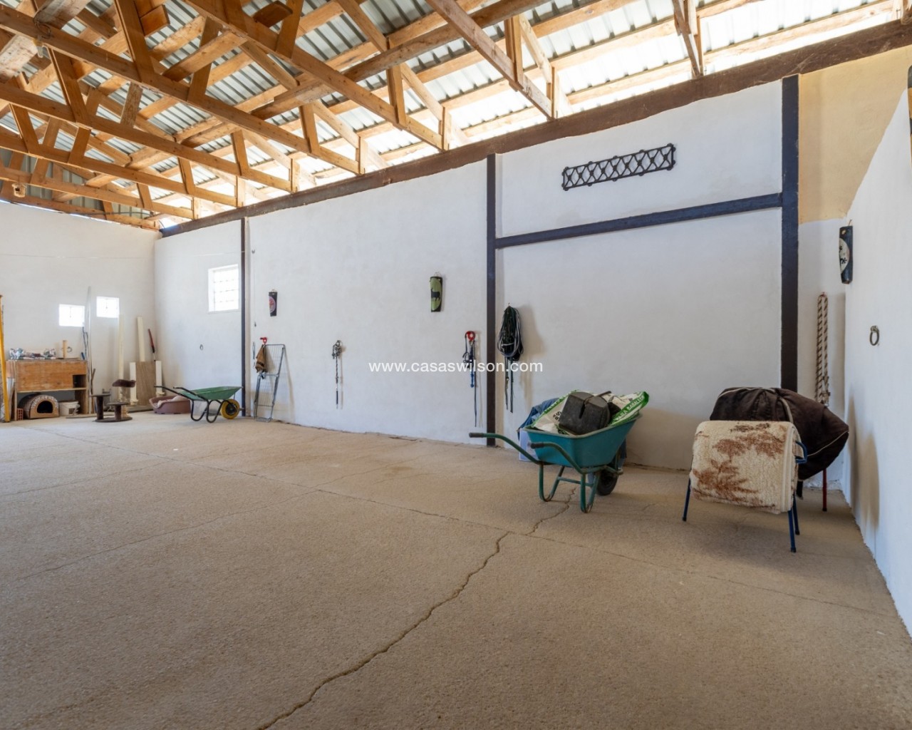 Unique horse lover's villa with multifunctional American stables and panoramic mountain views – Torre del Rico (Murcia) Are you looking for a rural property with plenty of space, peace and quiet, and the opportunity to keep horses or start a home-based business? This charming, single-story villa with three bedrooms is situated on a fully fenced plot of no less than 7,944 m², surrounded by breathtaking mountain views. Located in the quiet village of Torre del Rico, just an 8-minute drive from the charming town of Pinoso and within walking distance of a local bar, this property combines the best of rural tranquility with easy access and daily amenities. The villas The house is entirely on one level and offers a comfortable and practical layout. You have access to: Three spacious bedroomsTwo bathroomsA spacious living room with a cozy wood-burning stove – perfect for the cooler monthsAn oil heating system that also provides hot waterDouble glazing and thermally insulated walls for optimal living comfort, all year roundFront and rear terraces to enjoy the natural surroundings in peace and quiet Behind the house is a separate casita, which houses the boiler and oil tank—practical and discreet. The multifunctional American barn – endless possibilities An absolute highlight of this property is the impressive 200 m² fully enclosed American-style barn, which was originally designed as a horse stable. This solid, multifunctional space currently features: Four spacious horse stalls, including one for a mare with foalFeeding and preparation areasA tack roomSufficient extra space for adding multiple boxes But this barn offers more than just storage space. Thanks to its concrete floor, large internal surface area, and enclosed structure, the building is ideal for a variety of purposes. Consider using it as a workshop, storage space, vintage vehicle garage, or for small-scale commercial activities at home. The possibilities are endless—whatever you're looking for in a large, multifunctional space, here you can go in any direction. Outdoor space and grounds The entire plot is fenced with a combination of walls and fencing, offering optimal security and privacy—ideal for animals or equipment. There are two wide entrance gates measuring 8 meters wide, providing excellent accessibility for trailers, trucks, or service vehicles. Location and amenities This villa is located in Torre del Rico, in the province of Murcia—a region known for its tranquility, nature, and easy accessibility. Only 8 minutes from Pinoso with supermarkets, shops, and restaurantsGood connections via national roadsWater and electricity via the public grid Are you looking for unique horse accommodation with a multifunctional barn, suitable for both private and commercial use?Then this villa in Torre del Rico is definitely worth a visit. Contact us today for more information or to schedule a viewing.