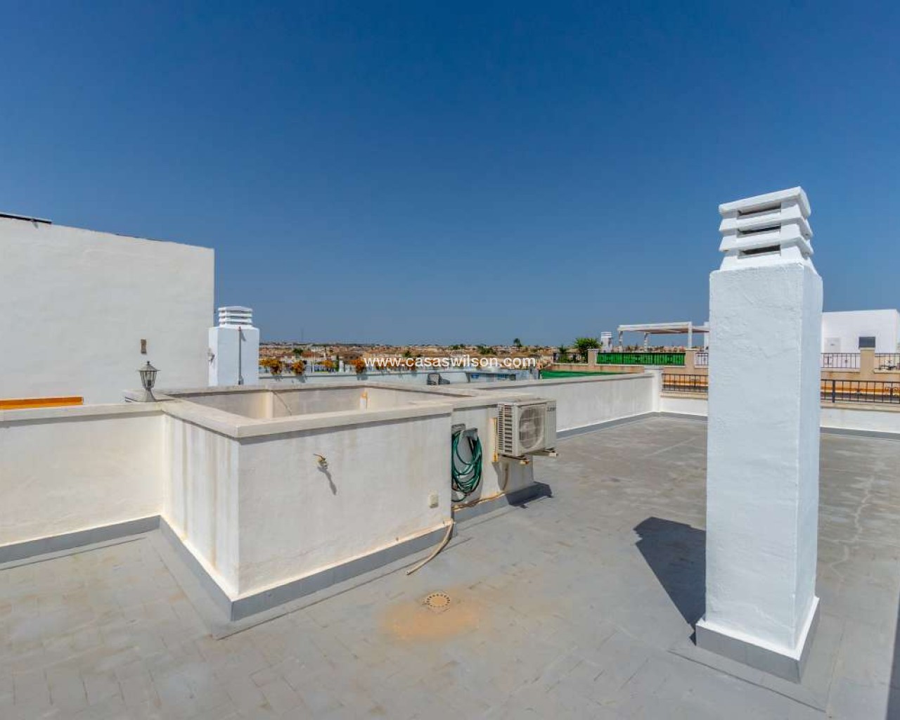 Bright and well-designed top-floor apartment located on the third floor in Orihuela Costa. Built in 2004, this home offers two bedrooms, one bathroom, a practical utility room, and a spacious open-plan living and dining area with access to a glazed balcony. One of the apartment’s highlights is the private rooftop solarium the size of the entire apartment, providing plenty of sun and space for relaxation.The residential complex features a pleasant communal pool area, and all daily services are within walking distance — including a popular Scandinavian school just around the corner. The beach is only about 550 meters away, making seaside walks and beach days easily accessible.Orihuela Costa is one of the most desirable residential and holiday areas on the Costa Blanca, known for its stunning sandy beaches, golf courses, and laid-back international atmosphere. The area offers a wide range of restaurants, shopping centers, and year-round leisure options.This property is an excellent choice for permanent living, a holiday home, or as an investment. Book your visit today and discover a home that beautifully combines location, space, and natural light.