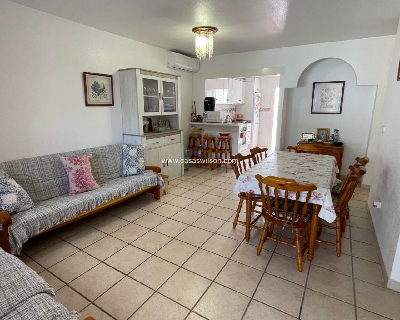 South-facing Spanish-style single-story house in Torre de La Horadada, 800m from the beach. Description: - Living room - Open kitchen - 3 bedrooms - 2 bathrooms At the front, a pleasant terrace, parking space and possibility of building a swimming pool. At the rear, you can enjoy the coolness of the patio, a laundry area, and a staircase leading to the solarium with impressive views. - Air conditioning - Storage space on the solarium