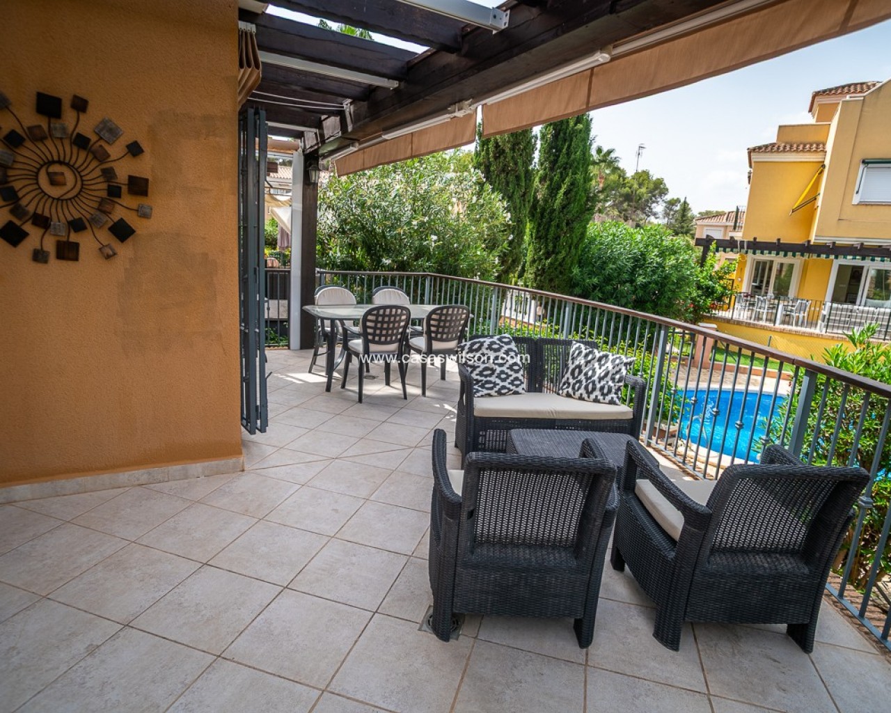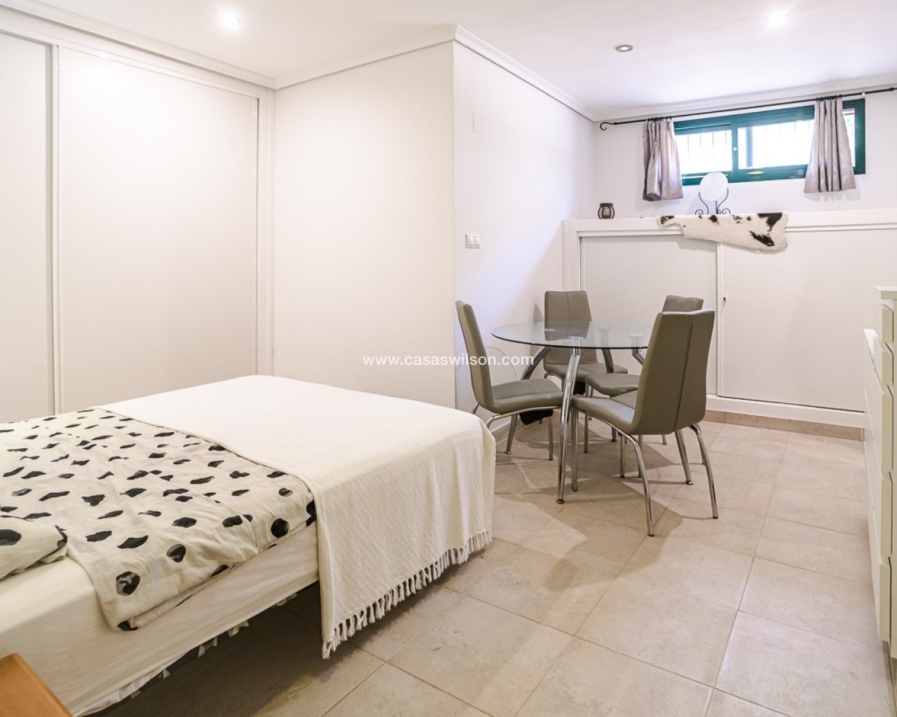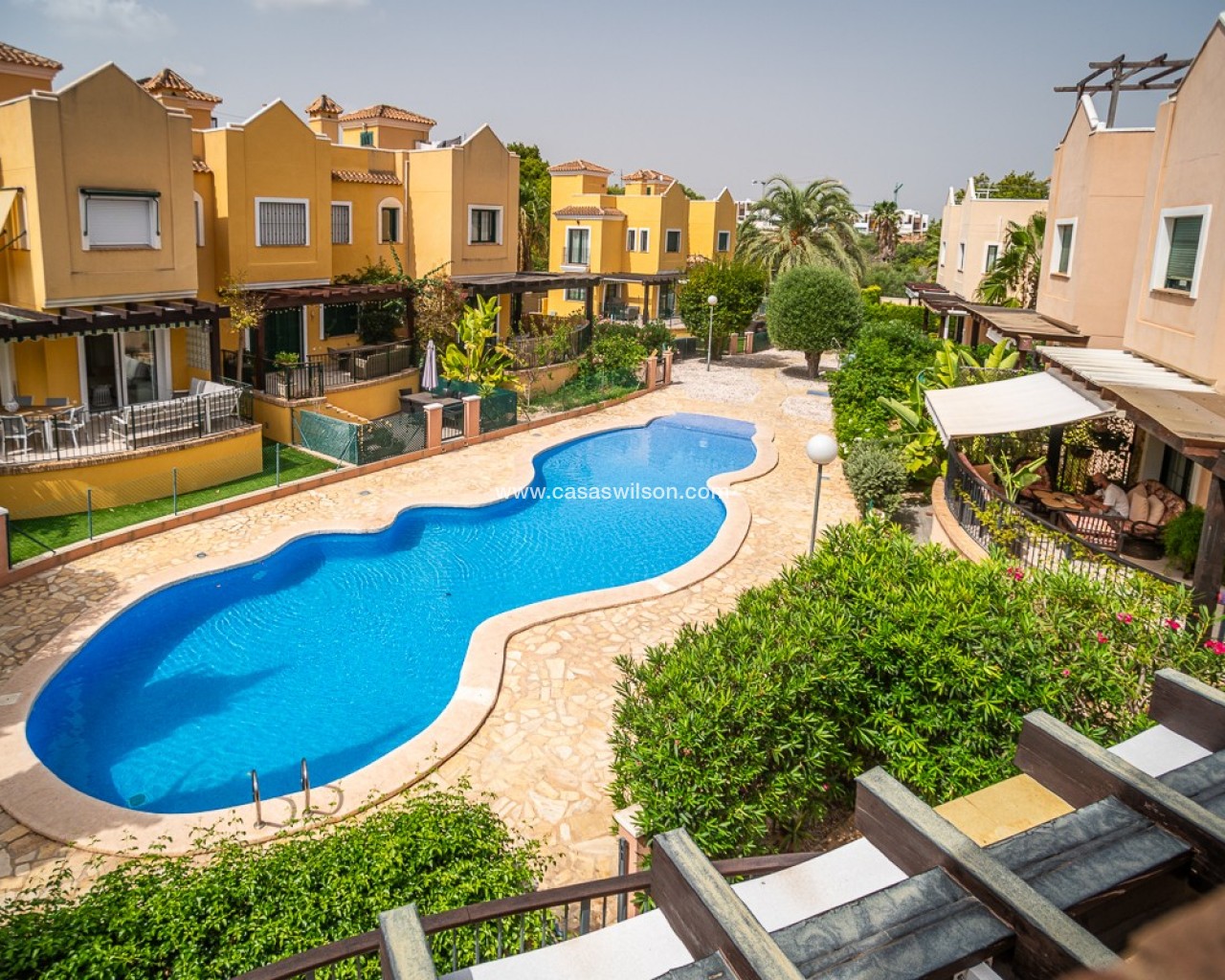 Charming semi-detached house in Los Balcones, Torrevieja Discover this beautifully maintained townhouse in the sought-after area of Los Balcones, where quality construction meets Mediterranean charm. The main house offers two spacious bedrooms on the first floor and a modern bathroom, creating a comfortable living space for both permanent residence and holiday stays. On the ground floor, you will find a generous living area that connects seamlessly with the outside space. The kitchen is fully equipped and combines flawlessly with the living room. The big terrace with pool views is equipped with sun screens, making it the ideal spot to relax or entertain throughout the day. If you are looking for the complete holiday vibe in your own property when you come to Spain,... Then keep reading! The basement adds extra flexibility, featuring two beds and a bathroom en suite, perfect for hosting guests in comfort and privacy. As a final touch, we have a Solarium that offers an open view of the surroundings, such as the famous salt lakes of Torrevieja. Do you have hobbies or a passionate handyman? This house comes with a big storage room right next to your parking Space on your own plot! This home belongs to a small, well-kept community with a Mediterranean atmosphere that you can instantly feel in its surroundings. A large pool area, landscaped spaces with green plantation and the proximity to all amenities make daily life both practical and enjoyable. Located just steps away from Mercadona and close to beaches, restaurants, and services, Los Balcones is one of the most desirable residential areas in Torrevieja. A property that combines location, space, and quality, ready to move in and enjoy. Could this be the home you’ve been searching for? Contact us today and come see it for yourself. Community costs: €500/semesterIBI: 368,58€