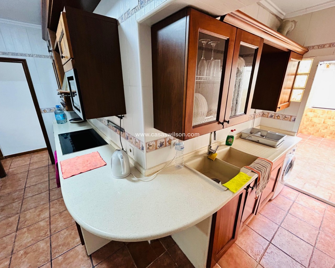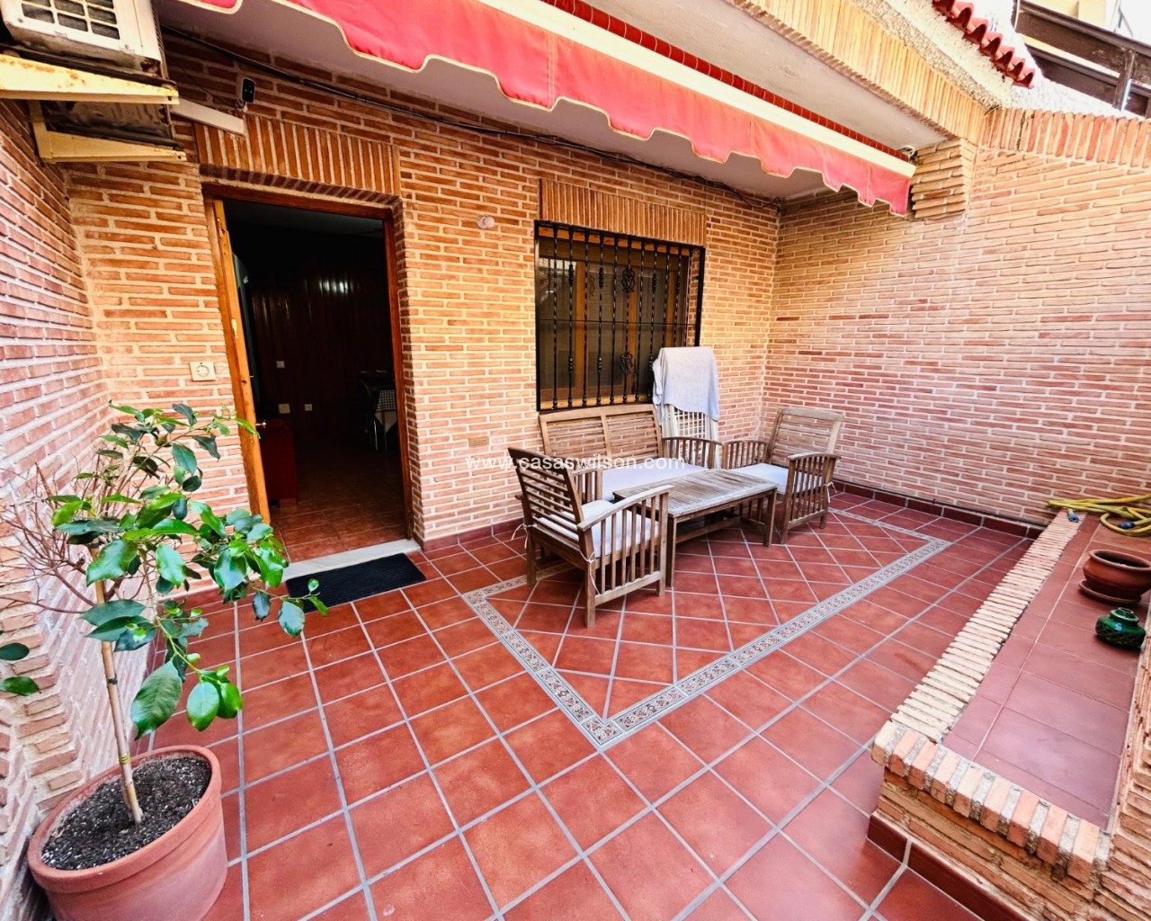 REFERENCE: 005 Property information This beautiful low-rise bungalow consists of 3 bedrooms, 1 bathroom, separate kitchen with gallery, living room with fireplace and access to the large terrace or front garden of 18m2. It is located 200m from Los Locos beach in Torrevieja. *Garage is not included in the price but can be purchased separately. Contact us for details. VIDEO