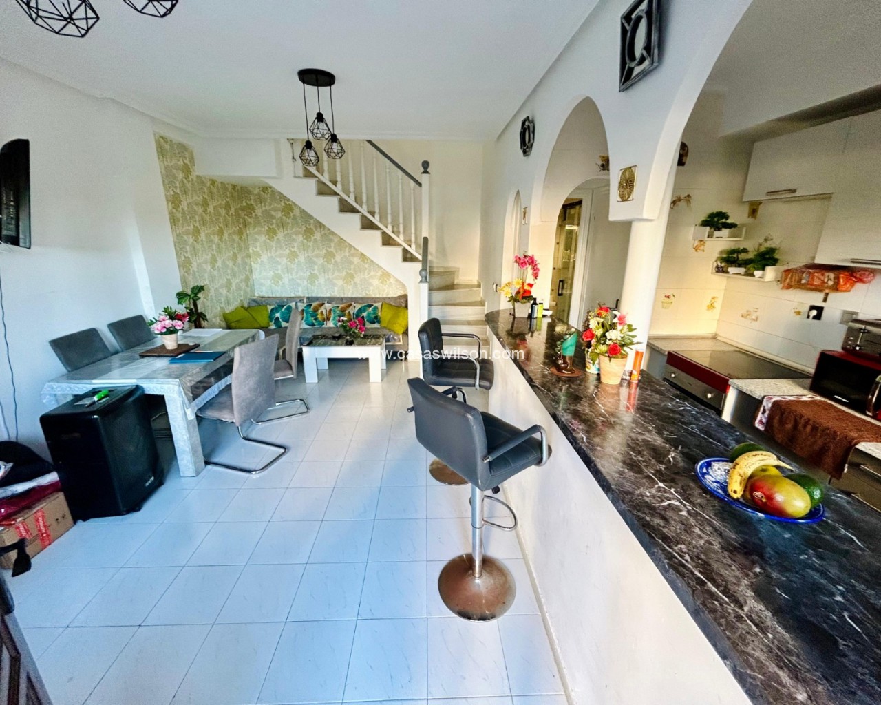 REFERENCE: 023 Property information The house is located on the ground floor where you are first met by a cozy terrace to the north with good space for e. g. outdoor furniture.Once inside, you are greeted by an open plan between a living room with space for a dining table and a fully equipped kitchen with plenty of storage. On this floor there is also access to a storage room where a washing machine and water heater have been placed. There is also a full bathroom with shower.One floor up we encounter two spacious bedrooms, one of which boasts a built-in wardrobe and a complete bathroom with bathtub.From both bedrooms you have access to a cozy balcony with a view of the street.Belonging to the residential area, there is a pleasant and appreciated communal pool area. VIDEO