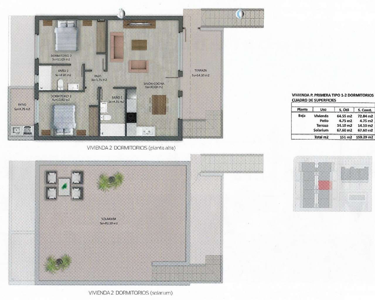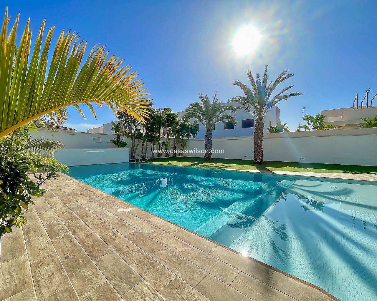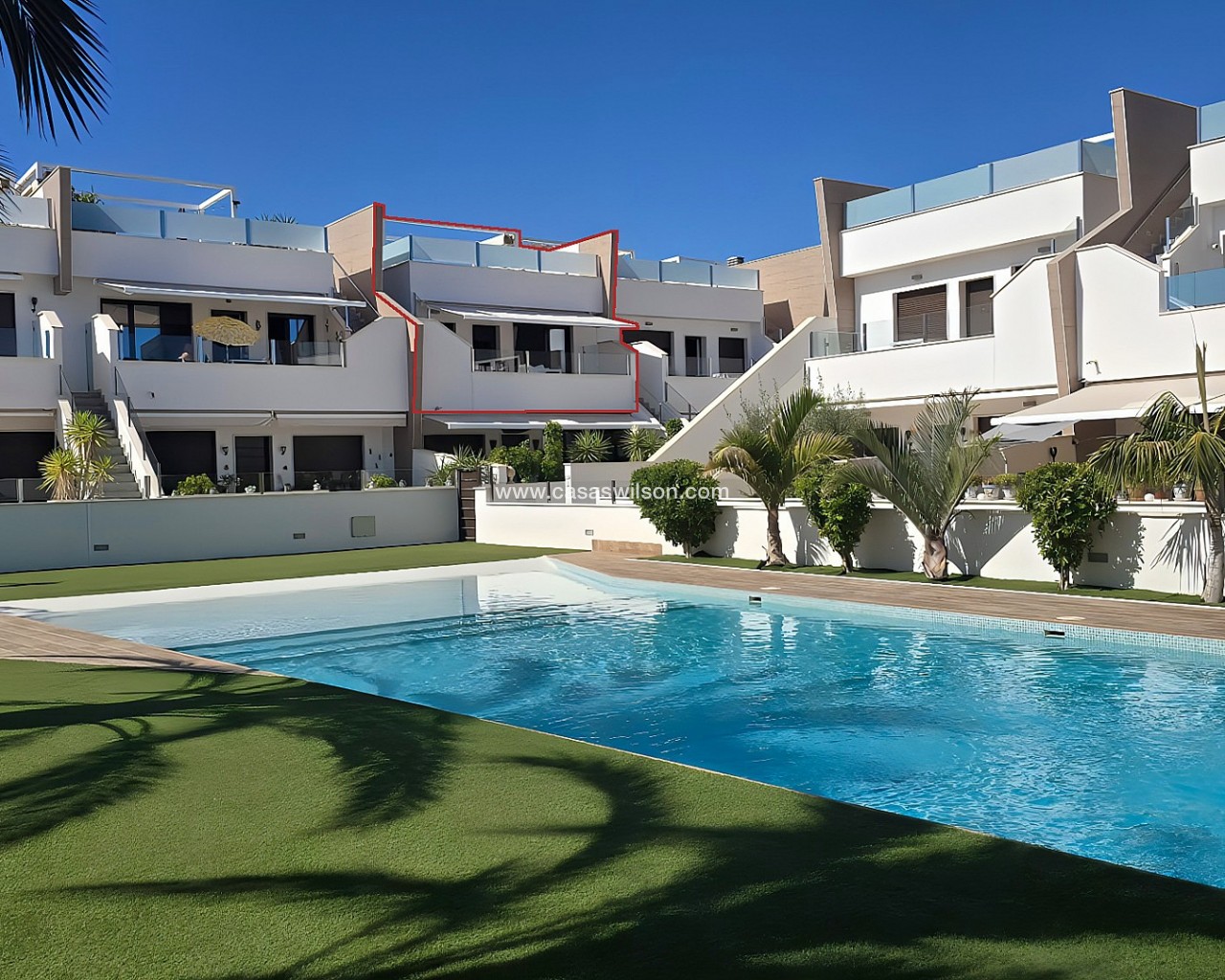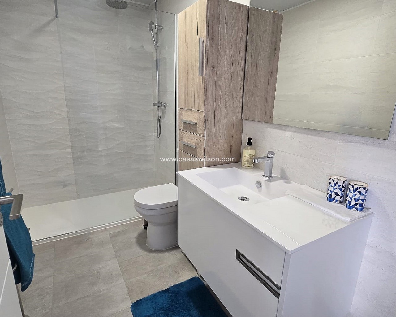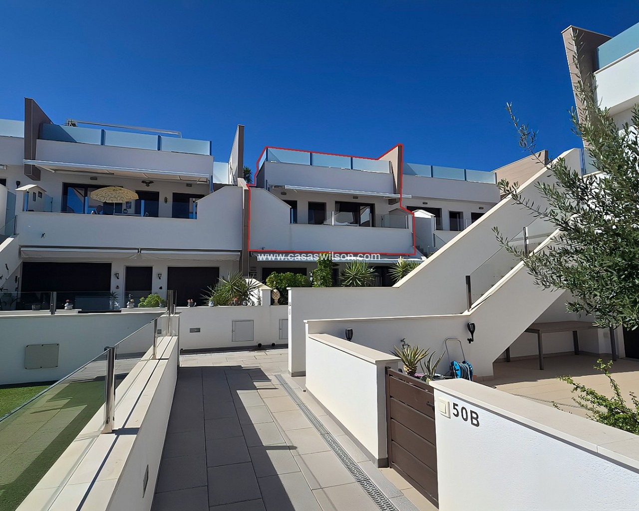 Modern penthouse with large rooftop terrace and sea view. Modern Top-Floor Apartment with Roof Terrace and Sea View in Authentic Spanish VillageDiscover this beautiful modern top-floor apartment located in the heart of the authentic Spanish village of Pilar de la Horadada. Within walking distance you’ll find all amenities — supermarkets, restaurants, cafés and shops while the stunning beaches of the Costa Blanca are just a few kilometres away.This stylish penthouse apartment offers everything for those who value comfort, sunshine and space. It features two spacious bedrooms and two modern bathrooms with large walk-in showers, toilets and elegant vanity units. The modern open-plan kitchen is fully equipped with high-quality appliances.The bright living room of approx. 30 m² enjoys plenty of natural light thanks to large sliding doors that lead to the spacious balcony, overlooking the large communal swimming pool and sunbathing area.One of the highlights of this property is the private roof terrace of 67 m², perfect for enjoying the sun, relaxing in privacy, and admiring beautiful views of the Mediterranean Sea.The property also includes a private parking space and a bicycle storage area. It is in excellent condition, beautifully maintained, and furnished with high-quality furniture in perfect shape.In short, a ready-to-move-in home in an ideal location — perfect as a permanent residence, holiday home, or investment on the Costa Blanca.