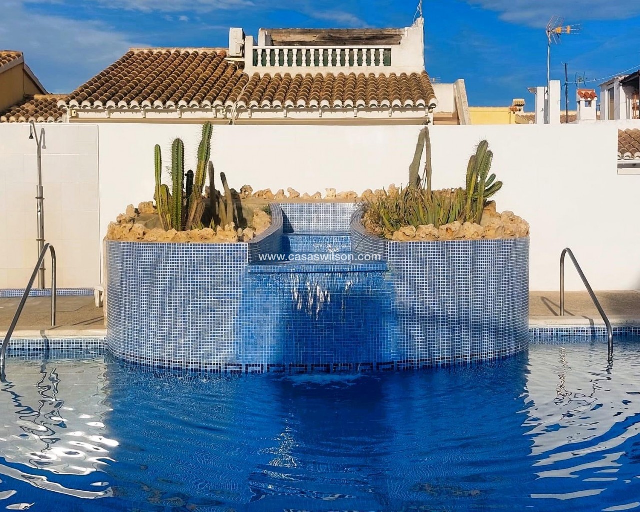 South facing charning quad. Very luminous in every room. 3 double bedrooms, living-dining room, independent kitchen with annexed interior patio, 2 complete bathrooms, porch and fantastic terrace-solarium and parking area.. . In the outside area on the ground floor there is access to park the car and a large porch. . On entering we find a spacious living-dining room from which we access to the independent kitchen, also quite spacious and with an interior patio, ideal as a pantry or laundry area. Also on the ground floor there are 2 double bedrooms and a complete bathroom.. Upstairs there is another large double bedroom, 1 complete bathroom and access to the terrace-solarium.. . Sold furnished and freshly painted inside.. . The property is in a cul-de-sac residential street, very quiet. . . Located in the Urbanization Mirador de Los Balcones, with communal pool, well maintained and very quiet and with a high number of residents all year round. Surrounded by parks and all necessary services: supermarkets, bars, restaurants, hospital, pharmacies.. . Just over 2 kilometres from the sea. Don't miss the opportunity to buy a spacious house to live all year round, for your holidays or as an investment.