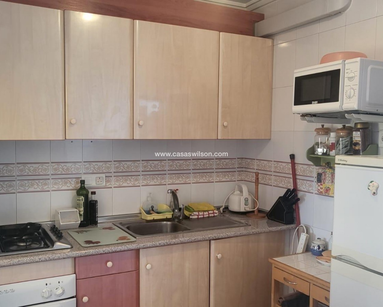 Unique opportunity on the Costa Blanca! For sale: top-floor bungalow in the quiet residential area of Torretas (Torrevieja), in good condition and with an east-facing orientation, ensuring natural light and a warm atmosphere throughout the day. The property offers 68 m² usable space (74.98 m² built) distributed across: 2 spacious bedrooms 1 full bathroom Bright living-dining room Fully equipped kitchen Sunny terrace, perfect for relaxing Residents can also enjoy a beautiful communal swimming pool, well-kept common areas and plenty of free street parking always available. With low community fees, this home is ideal as a permanent residence, a holiday retreat or a rental investment. 💶 Excellent value for money in one of Torrevieja’s most desirable areas. Ready to move into and enjoy the Mediterranean lifestyle!