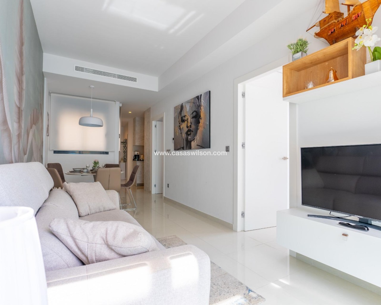 I present this renovated apartment, located in Torrevieja City Center. It is just 700 meters from Playa del Cura. The property offers a constructed area of 65 m² and is located on the second floor. It has a spacious and bright living-dining room, a separate kitchen equipped with furniture and appliances, and 2 bedrooms and 1 bathroom. The apartment has been renovated in a modern and elegant style. The furniture and appliances are new. What makes this apartment unique: it has 2 south-facing terraces, perfect for sunbathing and keeping your home full of light. It has a laundry room to keep the apartment tidy, clean, and comfortable. The building is newly. An assigned parking space in the garage is included. It has a communal pool and a sun terrace area. Its excellent location in the center is surrounded by all necessary services: supermarkets, bus station, shops, banks, and pharmacies. This apartment is perfect for an investment as well as for comfortable living close to everything! Contact us to view this home! We look forward to seeing you!