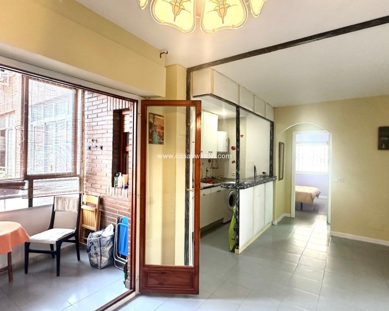 Apartment with a Glazed Terrace 300 Meters from the Beach – Excellent Location in Torrevieja We present this cozy apartment, ideal as a permanent home, a second vacation home, or an investment, thanks to its privileged location just 300 meters from the beach and with easy access to the N-332 national highway, ensuring excellent connections to the rest of the city and nearby towns. The home features a comfortable and functional layout that makes the most of every square meter to offer comfort and practicality. It has a spacious and bright bedroom, perfect as a master bedroom, and a well-maintained full bathroom. The living-dining room connects directly to the glazed terrace, a versatile space that can be used year-round as a relaxation corner, an additional dining area, a reading area, or even a small office. This feature adds value to the home, as it expands the usable space and allows for natural light in any season. The practical and functional kitchen blends seamlessly into the home, offering everything you need for everyday life. Its advantages include its proximity to the beach, allowing you to walk comfortably in just a few minutes, as well as its proximity to all kinds of services: supermarkets, restaurants, pharmacies, public transportation, and leisure areas. Furthermore, quick access to the N-332 motorway makes it easy to connect with Alicante, the airport, Orihuela Costa, and other points of interest on the Costa Blanca. In short, this apartment is an excellent opportunity for those looking for a home near the sea, with good transport links and additional space thanks to its glazed terrace, which makes a real difference and adds versatility to the home.