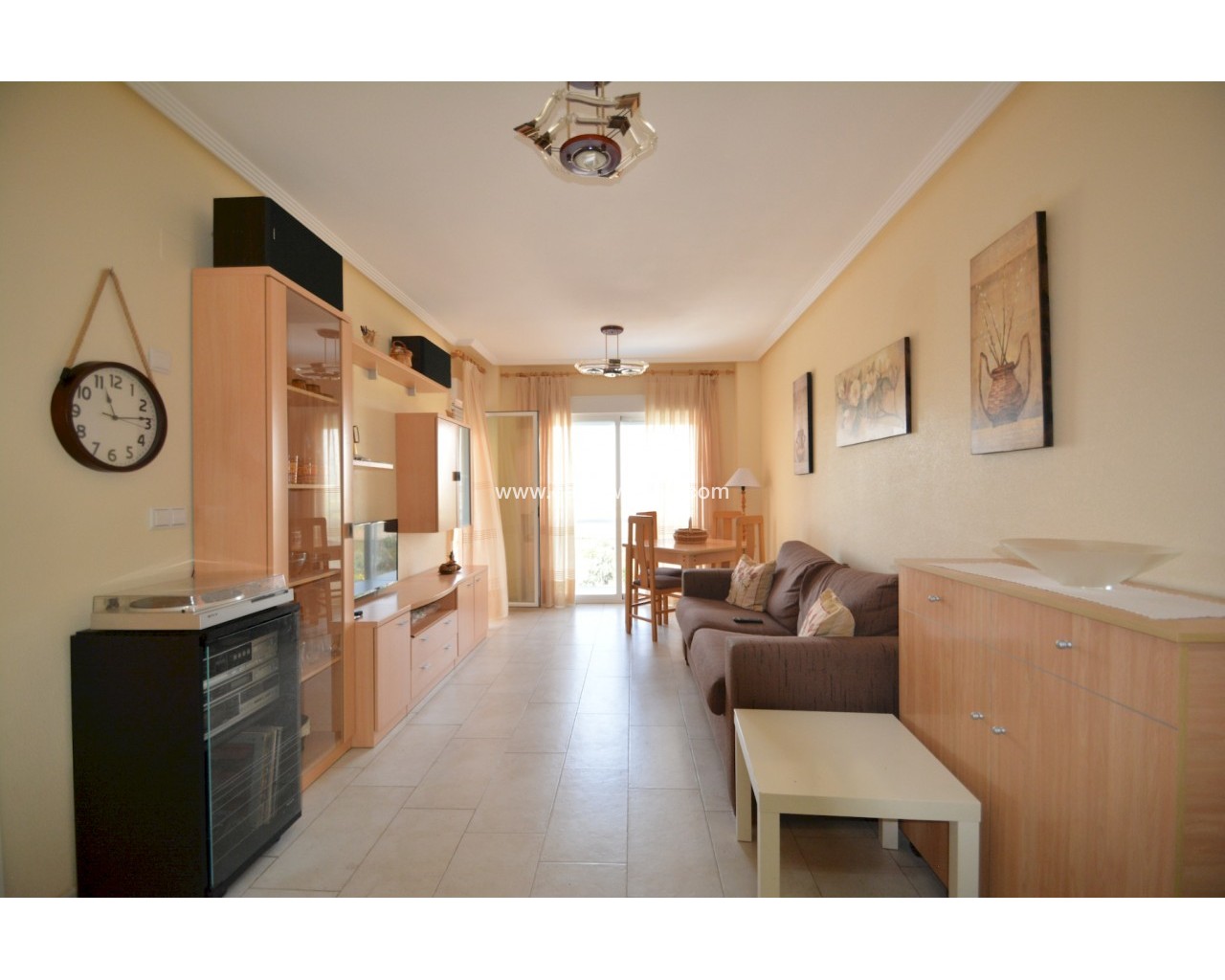 This lovely apartment is located in the SUP7 area of Guardamar del Segura, a charming seaside town on the Costa Blanca known for its long sandy beaches, natural dunes, and a relaxed Mediterranean lifestyle. The property sits within a gated residential complex made up of two apartment blocks, offering a swimming pool, open-air parking, and a playground for children. The home is on the 4th floor with elevator access and faces west, giving you open views of the Segura river and the green valley of Vega Baja that will never be blocked. With 70 m² of contracted area and 49 m² of usable space, it has been designed for both comfort and light. All rooms open onto a 10 m² terrace, which is perfect for relaxing and enjoying the excellent views. There is no interior patio, so the apartment feels bright and open throughout. Inside, you will find a furnished home with two bedrooms and one bathroom. The master bedroom includes a built-in wardrobe, and the bathroom comes with a bathtub. The kitchen is open style, fully equipped with electric appliances, and has a handy utility room nearby. The terrace is fitted with an awning for shade, and in addition to the apartment, you also have a private storage room in the basement and your own allocated parking space in the complex. The apartment has pre-installation for a ducted air conditioning system and has been very well cared for, used only as a summer residence and never rented. It is sold fully furnished, so you can move in and start enjoying it right away. Сommunal roof terrace available for all residents. The location is excellent, just 1 km from the beach and the town center, and a short drive to Alicante city and Alicante airport. This property is in very good condition and offers a fantastic opportunity to enjoy life by the sea. Taxes and purchase expenses are not included. Contact us today to arrange a viewing.