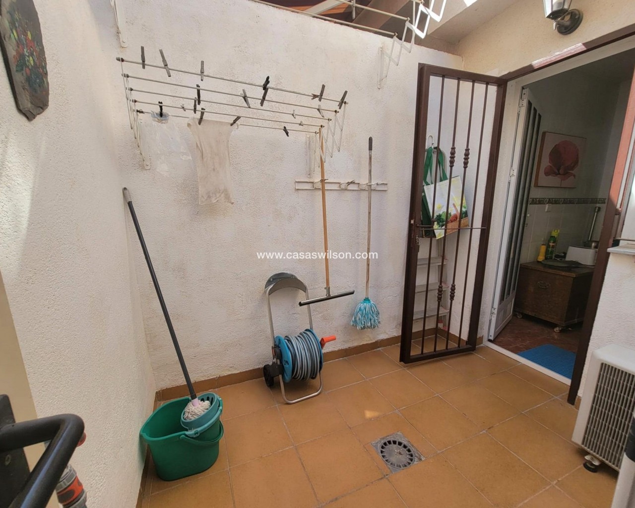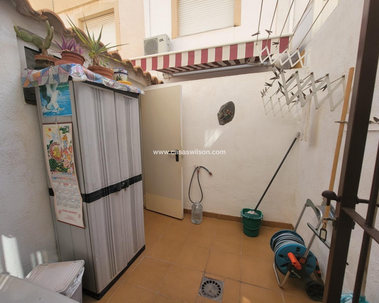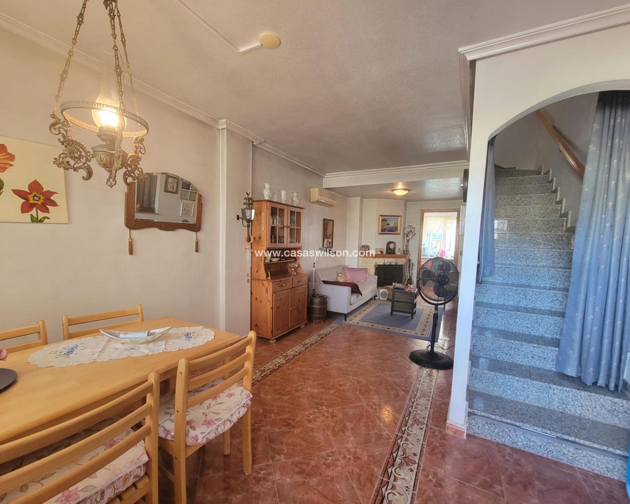 Spacious 3-story semi-detached house in a beautiful residential with a swimming pool and gardens in Playa Flamenca, about a 5-minute drive from the beaches and about a 30-minute walk from the Zenia Boulevard Shopping Center. It consists of a large front terrace, a large living room with a fireplace, a fully equipped separate kitchen with access to a private patio with a laundry room and bathroom with a shower. The first floor consists of two double bedrooms with built-in wardrobes and a bathroom (with a bathtub). The master bedroom has a terrace overlooking the swimming pool. And the top floor consists of an attic with a double bedroom and a bathroom. The price also includes a closed garage (approximately 23 m2) with a storage room in the community basement. Furnished. Air conditioning. In good condition, ready to move into. Located in a pleasant area of Playa Flamenca, close to all amenities, shops, supermarkets, restaurants, cafes, bus stops, and so on. In addition, the popular Playa Flamenca market is nearby, held every Saturday morning, perfect for spending the morning shopping, enjoying tapas and the atmosphere.