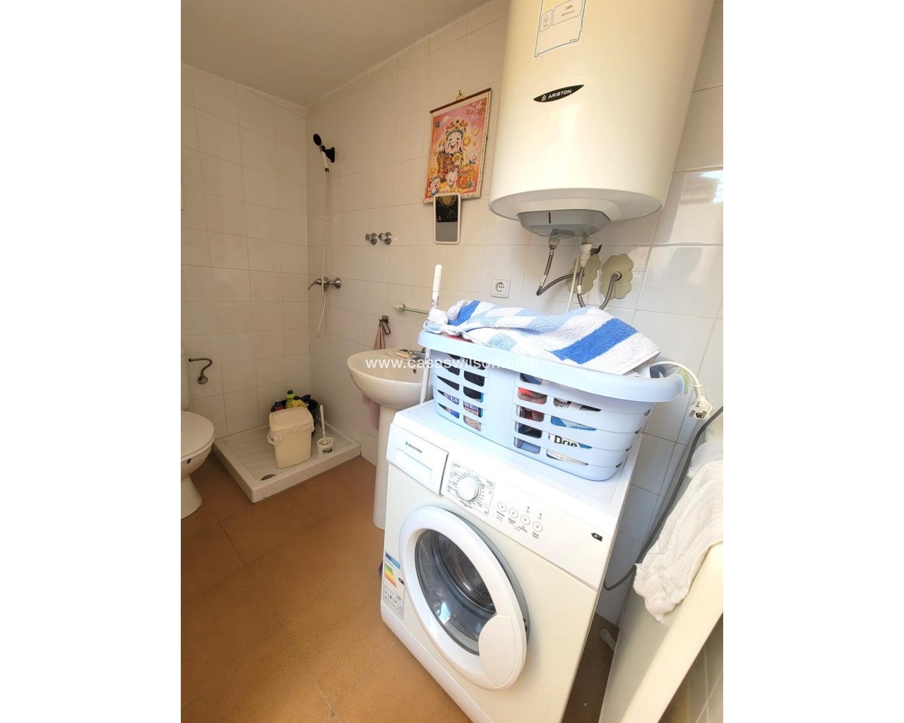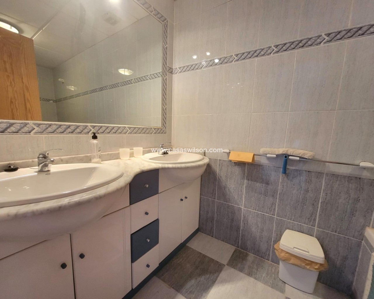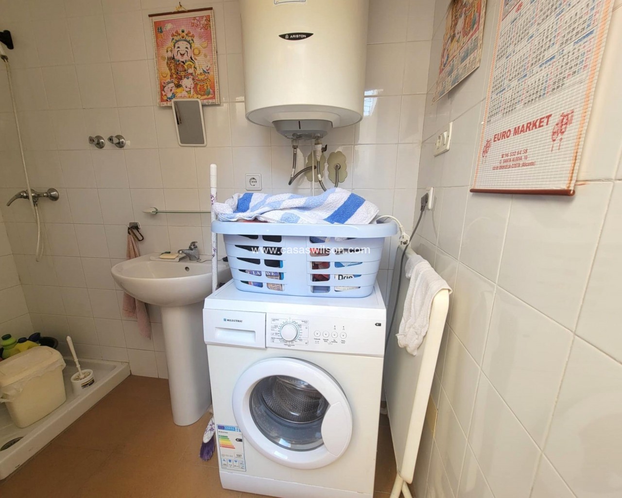 Spacious 3-story semi-detached house in a beautiful residential with a swimming pool and gardens in Playa Flamenca, about a 5-minute drive from the beaches and about a 30-minute walk from the Zenia Boulevard Shopping Center. It consists of a large front terrace, a large living room with a fireplace, a fully equipped separate kitchen with access to a private patio with a laundry room and bathroom with a shower. The first floor consists of two double bedrooms with built-in wardrobes and a bathroom (with a bathtub). The master bedroom has a terrace overlooking the swimming pool. And the top floor consists of an attic with a double bedroom and a bathroom. The price also includes a closed garage (approximately 23 m2) with a storage room in the community basement. Furnished. Air conditioning. In good condition, ready to move into. Located in a pleasant area of Playa Flamenca, close to all amenities, shops, supermarkets, restaurants, cafes, bus stops, and so on. In addition, the popular Playa Flamenca market is nearby, held every Saturday morning, perfect for spending the morning shopping, enjoying tapas and the atmosphere.