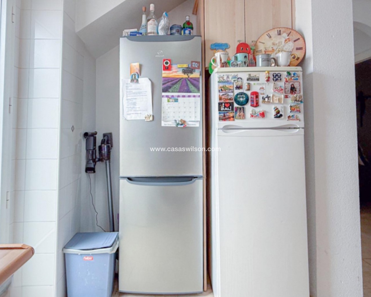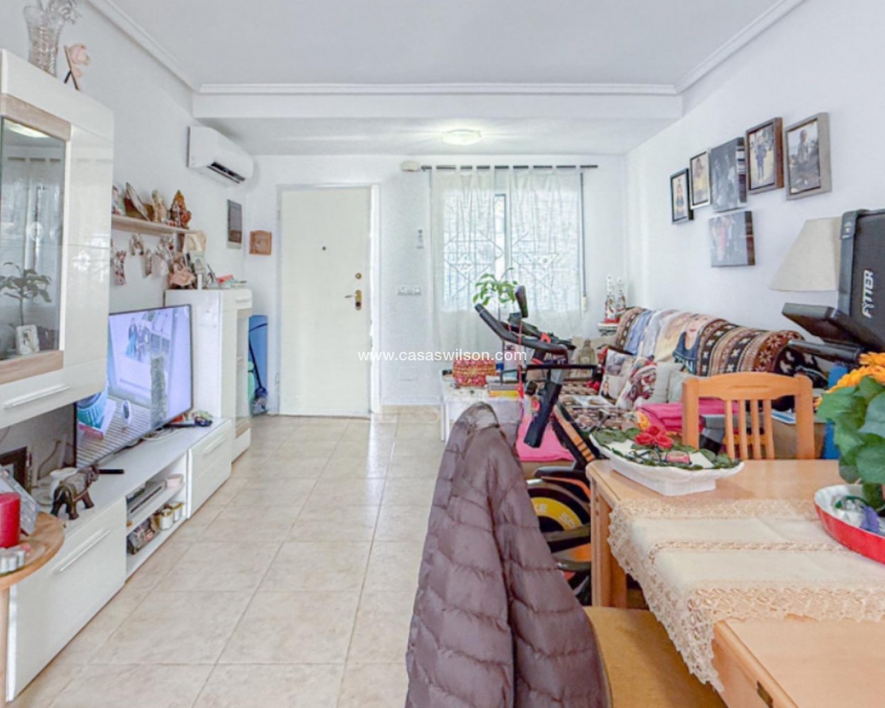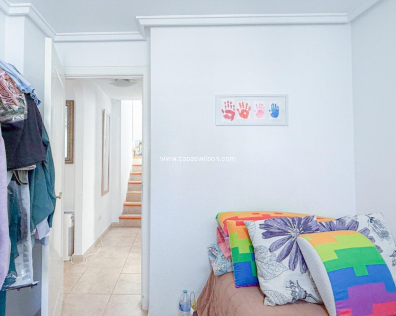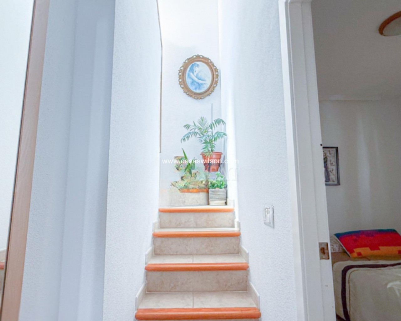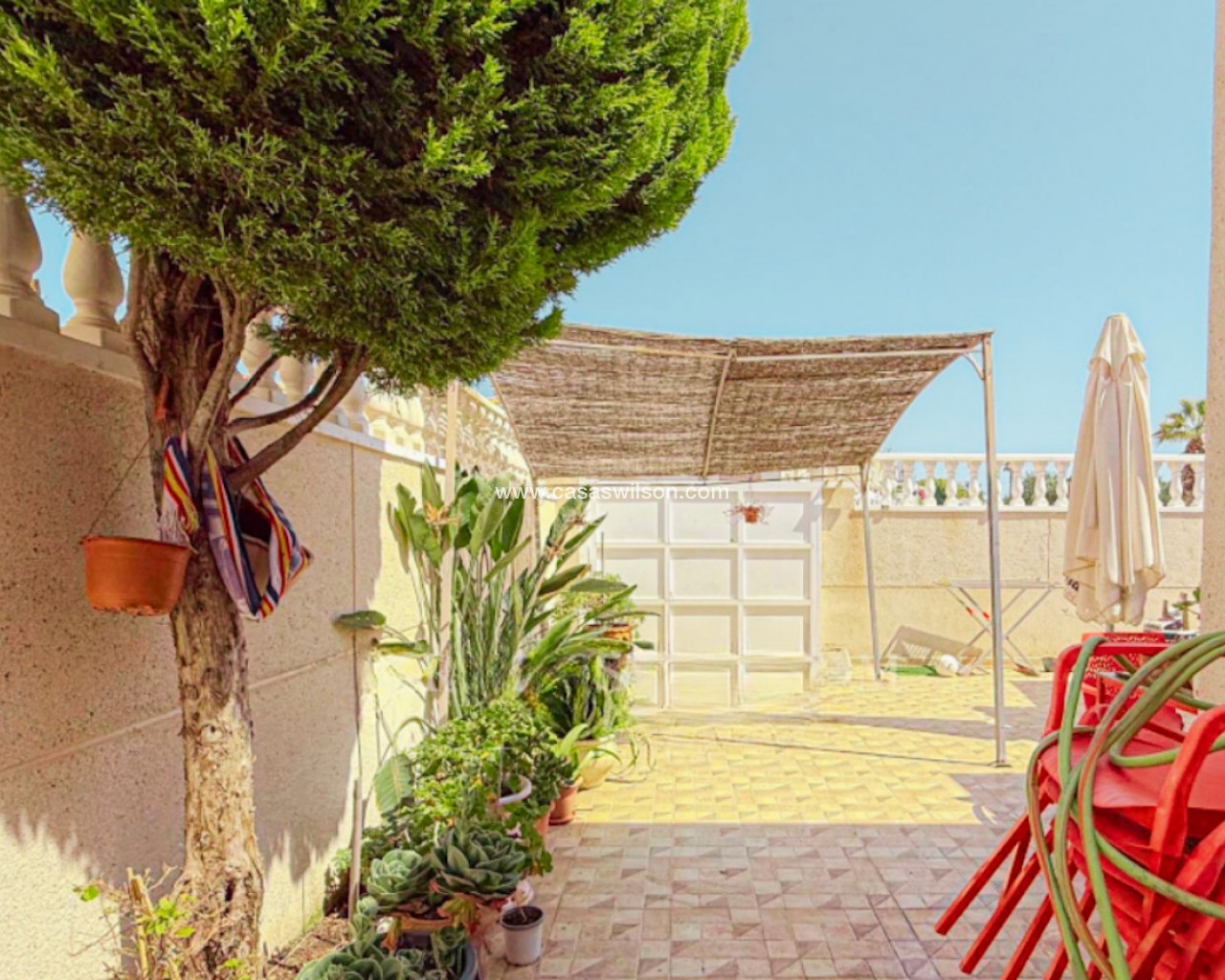 Townhouse in Aguas Nuevas, TorreviejaBeautiful semi-detached house with 101 m² built (80 m² usable), located just 650 meters from the beach. The property is distributed over two floors and offers 3 double bedrooms, 2 bathrooms, a fully equipped kitchen, and a bright living area.The home features oak interior carpentry, tiled floors, aluminum/climalit exterior windows, and northeast orientation. It is in very good condition and ready to move into.Extras include: air conditioning, built-in wardrobes, gallery, storage room, glazed terrace, private garden, community pool, solarium, high ceilings, and a parking space included in the price.Located in a well-connected residential area with bus services, medical centers, schools, supermarkets, parks, children’s play areas, and just steps away from the sea.