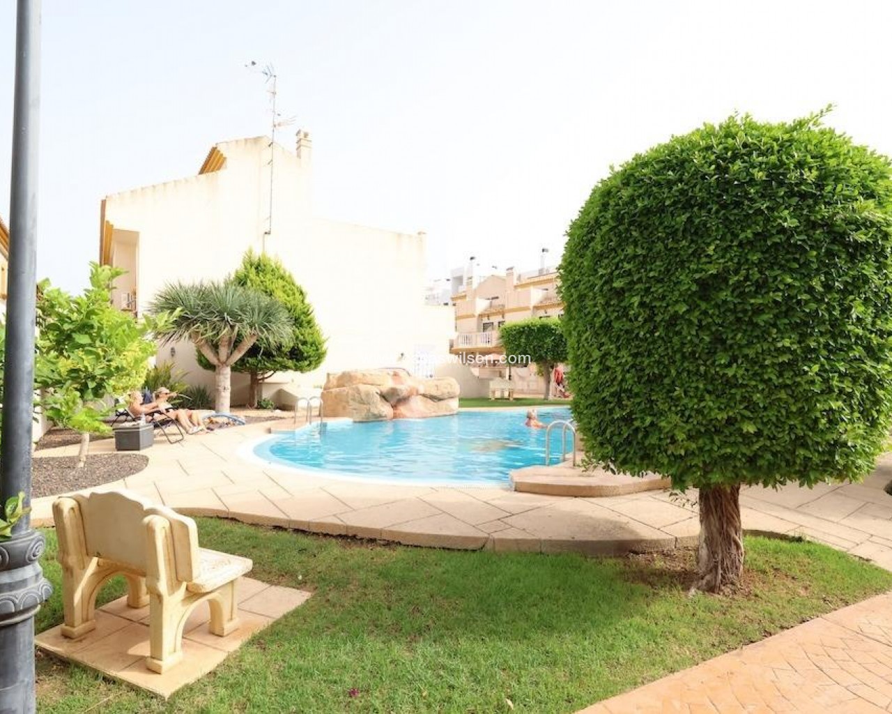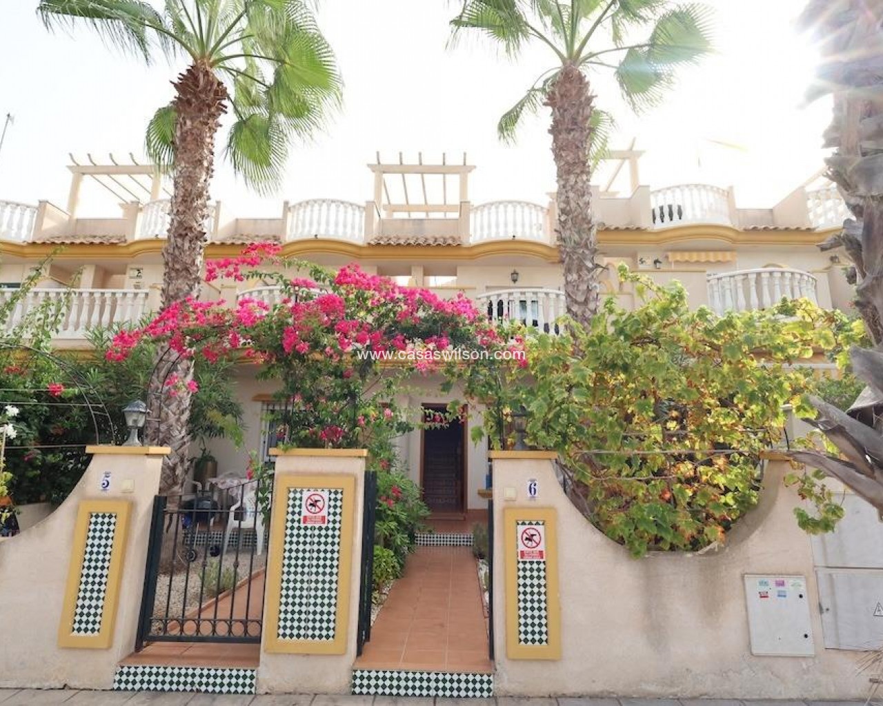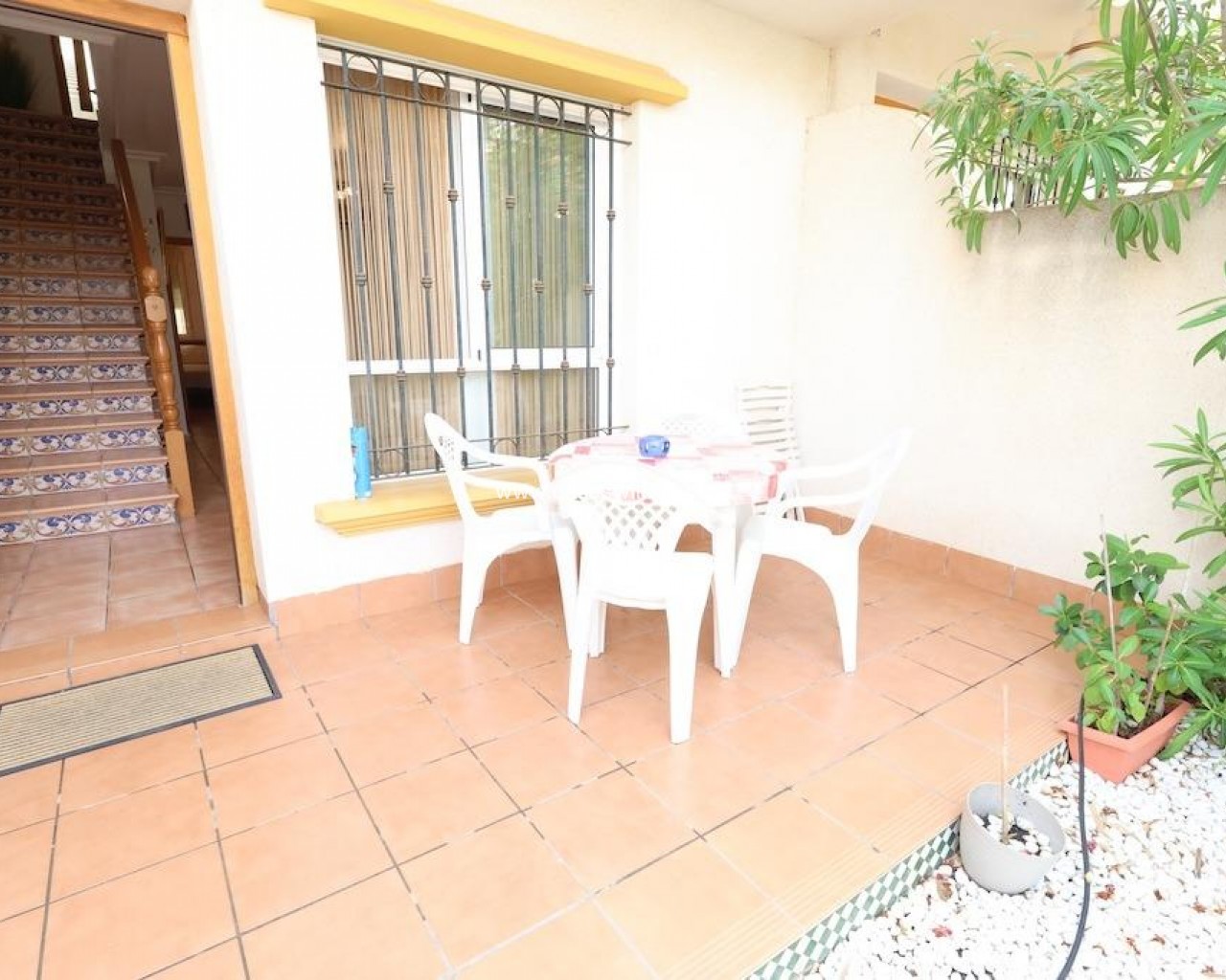 Semi-detached house in the exclusive Aldeas de Aguamarina residential area, located in Cabo Roig. The 72 m² home features 3 bedrooms, one of them on the ground floor, 2 full bathrooms, a spacious living-dining room, and a spacious separate kitchen with an open-plan utility room.. . It features two terraces, a 34 m² garden with a barbecue area, ideal for outdoor enjoyment, and a large sun terrace with sea views. It is sold semi-furnished and in good condition.. . The residential complex offers a beautiful communal pool and is located just steps from the sea and all amenities. Ideal as a permanent residence or as an investment for holiday rentals.
