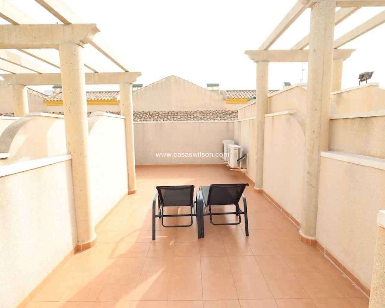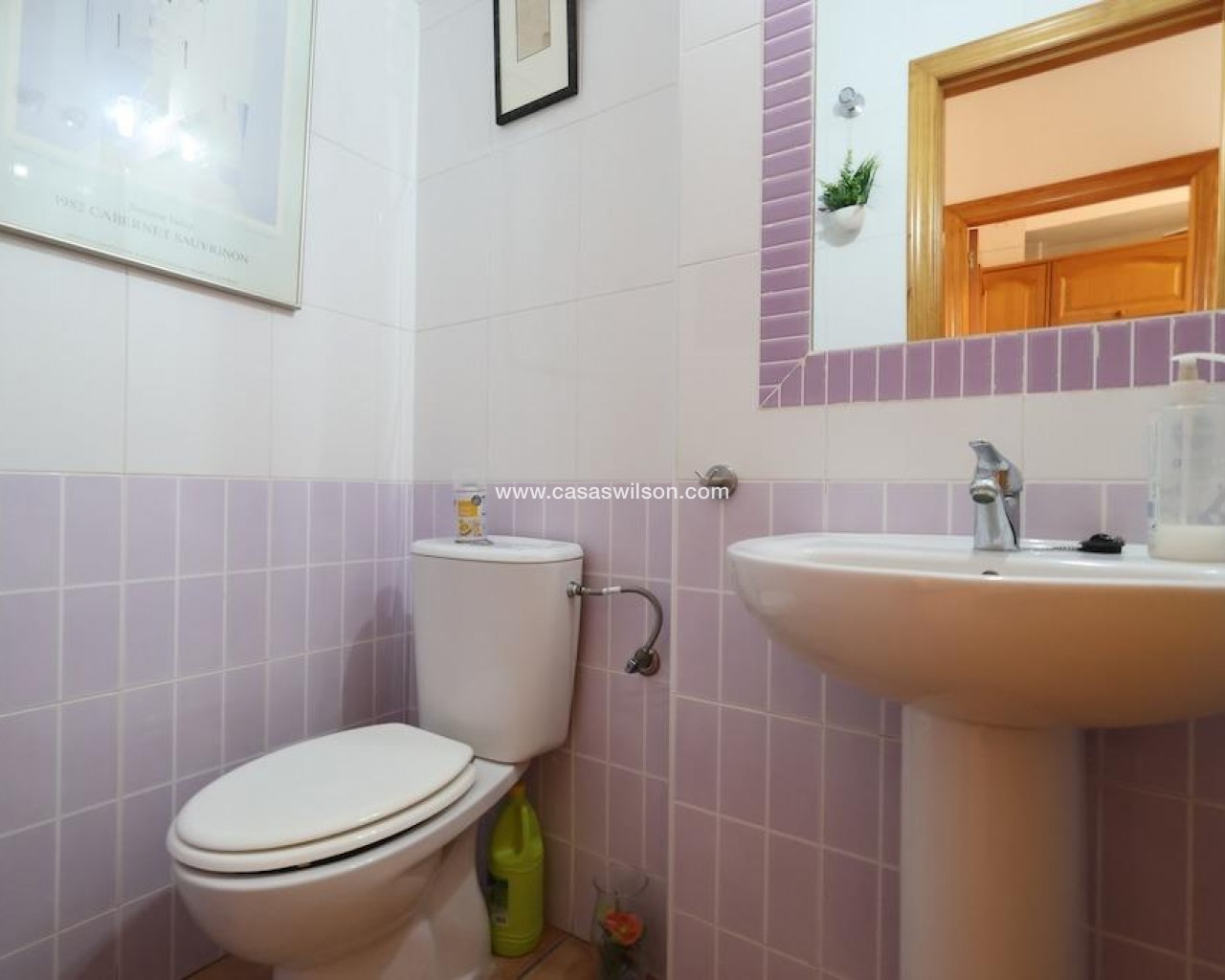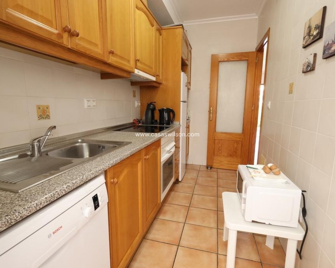 Semi-detached house in the exclusive Aldeas de Aguamarina residential area, located in Cabo Roig. The 72 m² home features 3 bedrooms, one of them on the ground floor, 2 full bathrooms, a spacious living-dining room, and a spacious separate kitchen with an open-plan utility room.. . It features two terraces, a 34 m² garden with a barbecue area, ideal for outdoor enjoyment, and a large sun terrace with sea views. It is sold semi-furnished and in good condition.. . The residential complex offers a beautiful communal pool and is located just steps from the sea and all amenities. Ideal as a permanent residence or as an investment for holiday rentals.