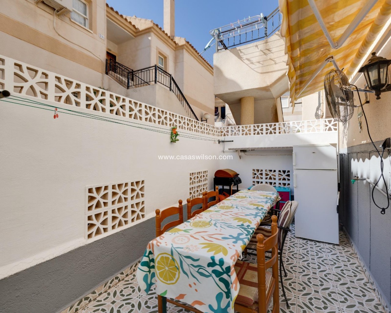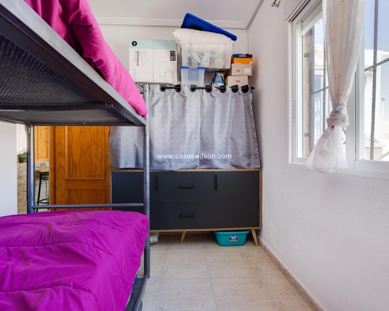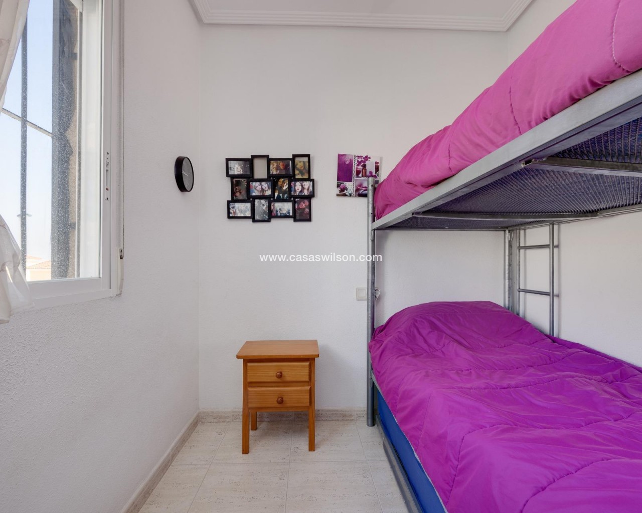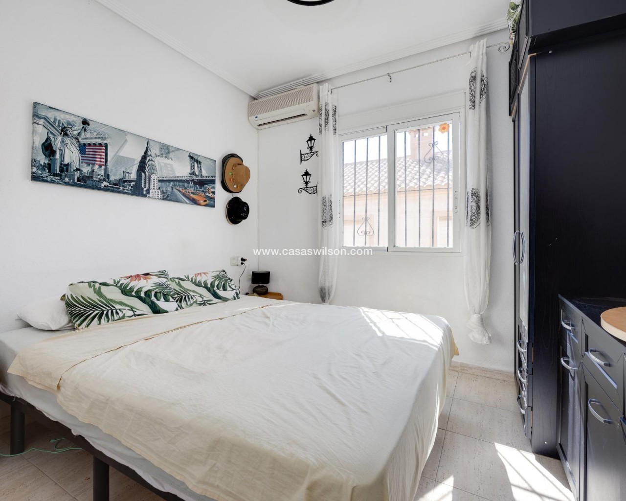 Top-floor bungalow in Aguas Nuevas – Torrevieja Perfect for enjoying the Mediterranean lifestyle. This cozy top-floor bungalow is located in the popular Aguas Nuevas area, just 1.7 km from the beach and close to all amenities: supermarkets, restaurants, public transport, and more. 2 bedrooms 1 bathroom with shower Terrace with large storage room – very practical extra space Communal pool for sunny days Quiet and well-connected location Ideal as a holiday home or for year-round living. Contact us for more information or to schedule a viewing. Legal costs and VAT not included in the price.