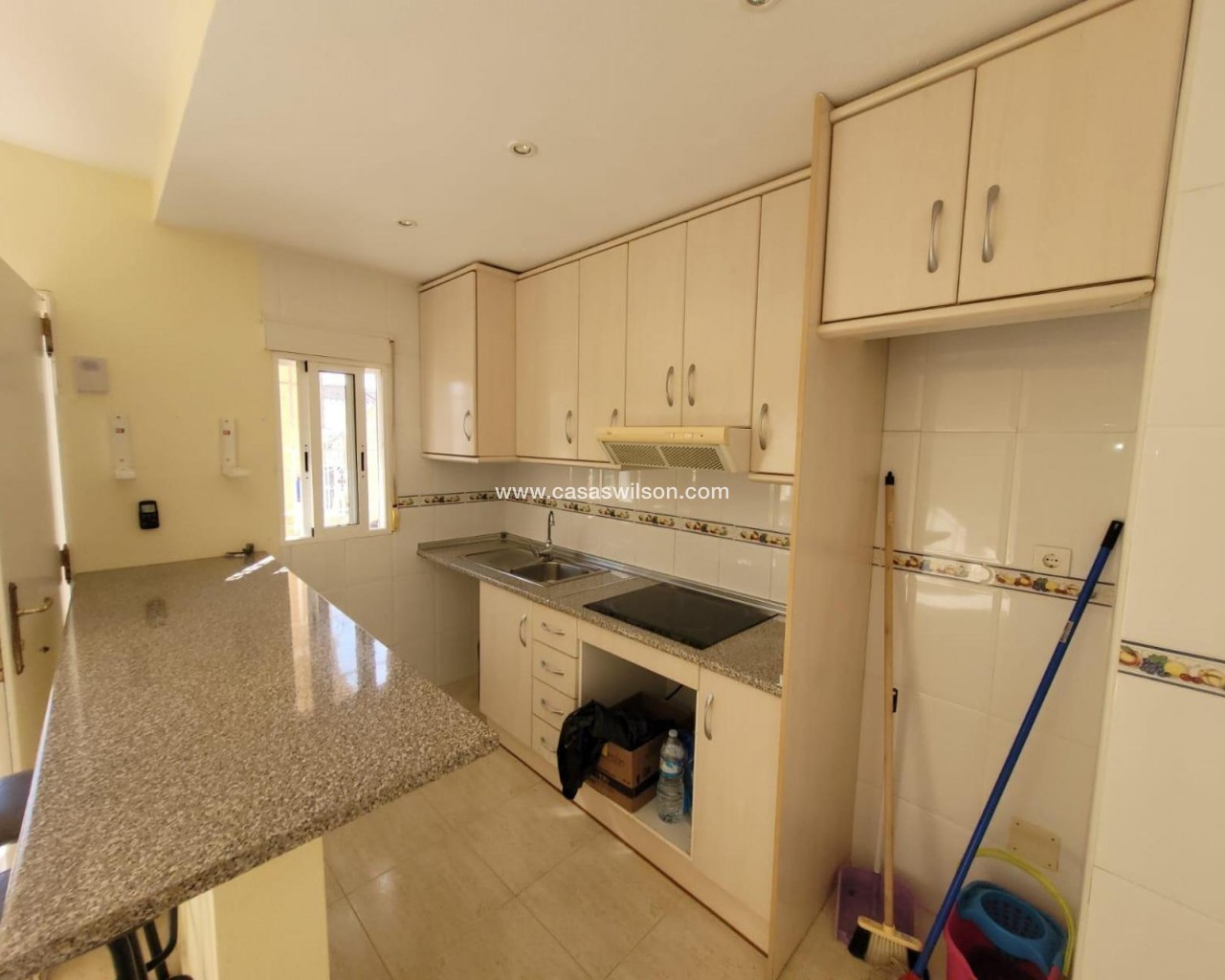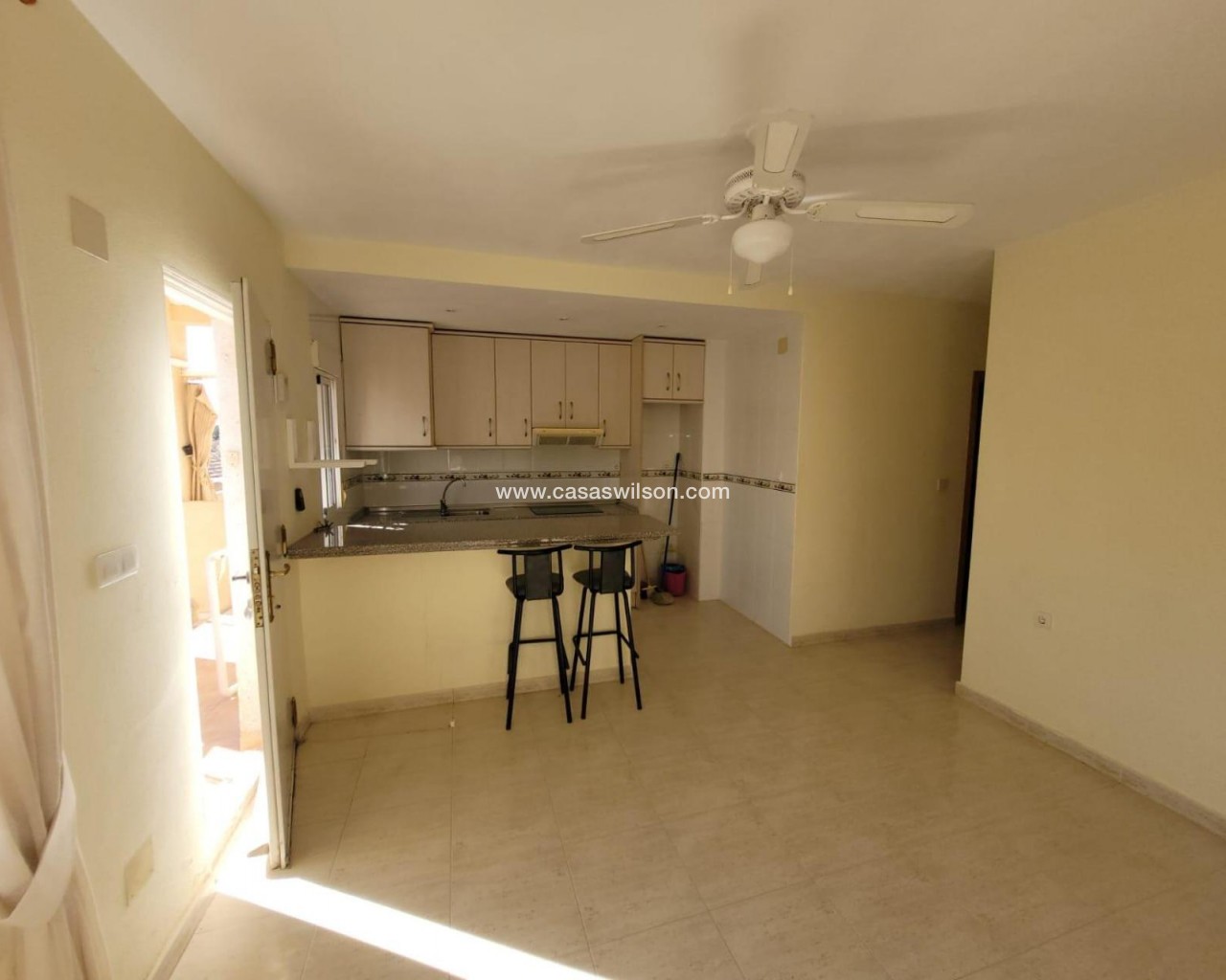 Bungalow for Sale in San Miguel de Salinas - El Galán - Galán Golf Residential AreaA top-floor bungalow for sale, southeast-facing, located in the Galán Golf residential area of San Miguel de Salinas. The property features the following features:Two well-appointed bedrooms.One full bathroom with bathtub.A spacious living-dining room with air conditioning and a ceiling fan.An open-plan kitchen is integrated into the living room.The residential complex offers a communal pool, barbecue area, and sun loungers.The property is sold as shown in the photos, ready to move into. Its location is ideal, just 1,000 meters from basic services, 5 km from the beach, and 45 km from the airport.Perfect as a permanent residence or second home to enjoy the climate and tranquility of the area.Those interested, please contact us for more information or viewings.