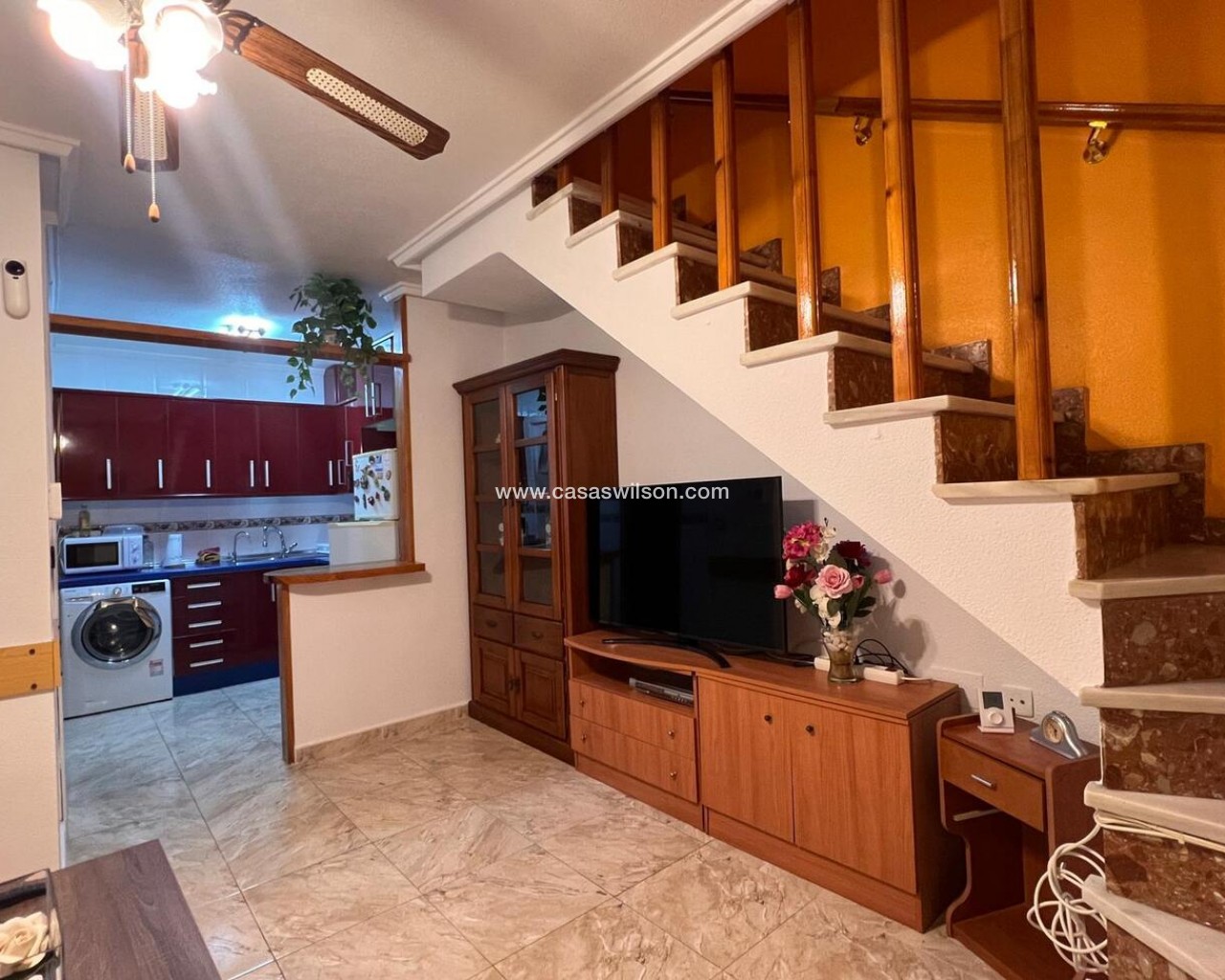 Duplex with 3 bedrooms and two bathrooms, a communal pool, and a gated community in Torrevieja Los Altos, Serena 1, located at Calle La Sagra No. 69 Los Altos. The main terrace has 25 m2 and faces south. The property has75 m2. Sold furnished.