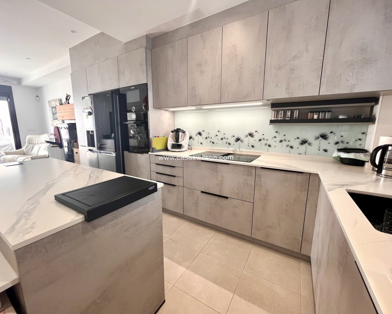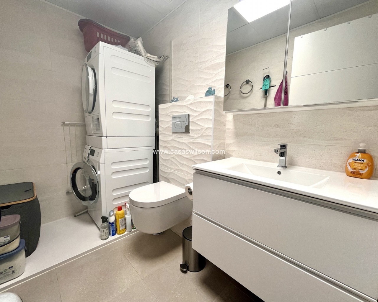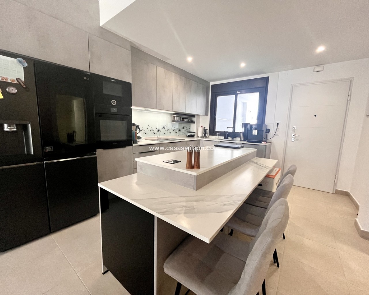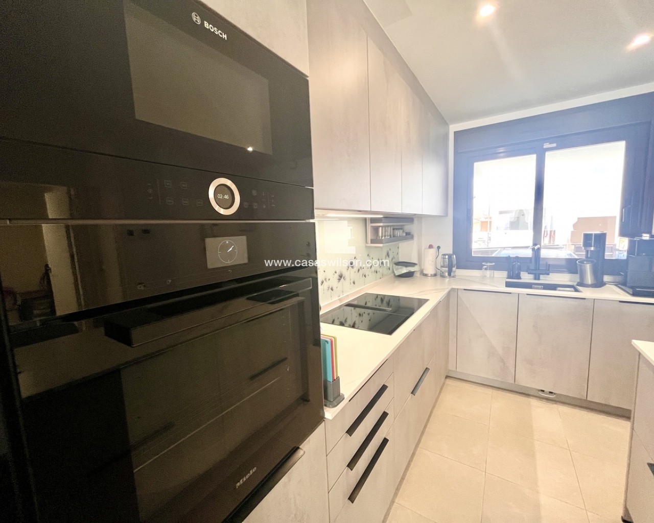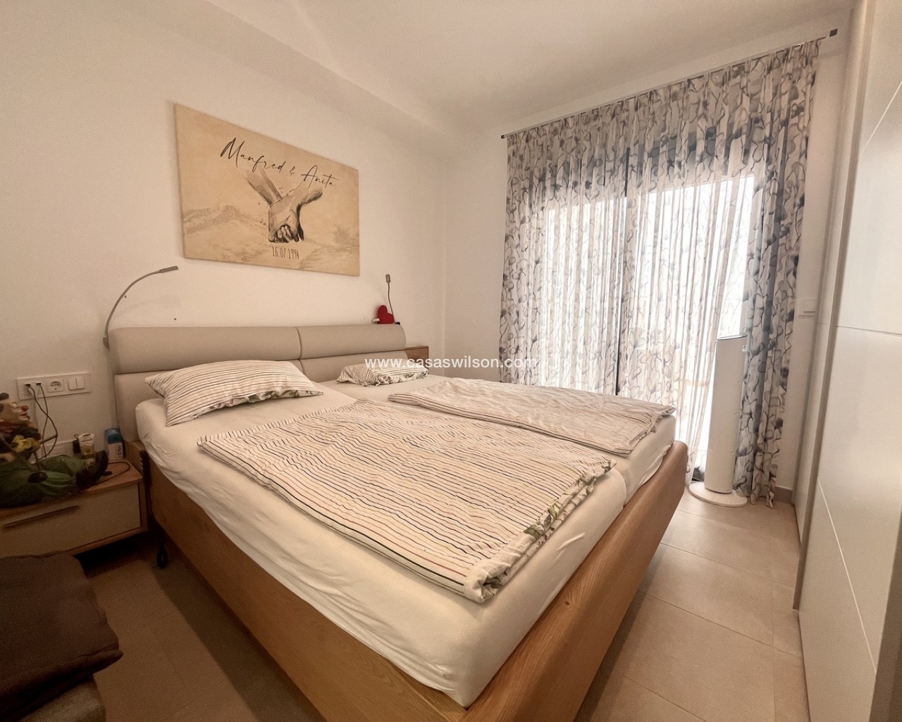 A fantastic opportunity to own this modern 2-bedroom, 2-bathroom ground-floor apartment in Pilar de la Horadada. Positioned on a corner plot, the property offers off-road parking right outside — ideal for convenience. Inside, you’ll find a bright open-plan lounge and dining area, alongside a recently upgraded fully furnished kitchen with new appliances.The property has sliding doors from both the living room and master bedroom to a spacious private rear terrace with a laundry cupboard, plenty of outdoor space, and a private jacuzzi, perfect for relaxing or outdoor dining. The property is sold fully furnished, ready to move in to.From the terrace, you have direct access to the communal gardens and a fantastic swimming pool that gets sunshine all day. There’s also a communal storage area and two designated bike spaces.Other features include ducted hot and cold air conditioning, a new terrace awning, water osmosis system, fitted wardrobes.Ideally located within walking distance of bars, restaurants, shops, and the weekly market. The beaches are just a 5-minute drive away, with quick access to the Mar Menor, Dos Mares Shopping Centre, and Lo Romero Golf Resort only 6 minutes by car.