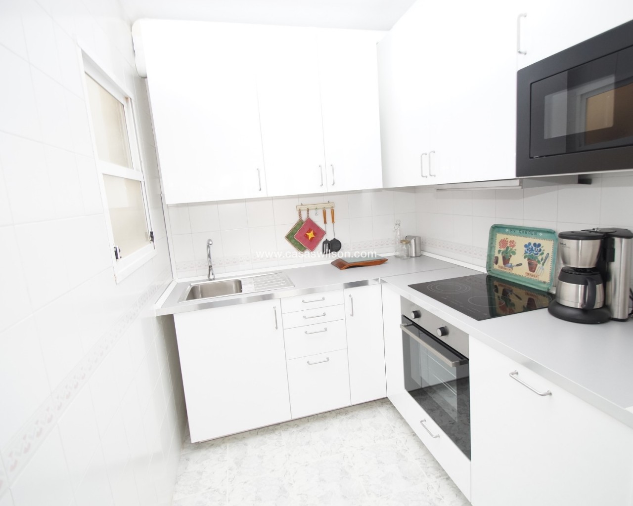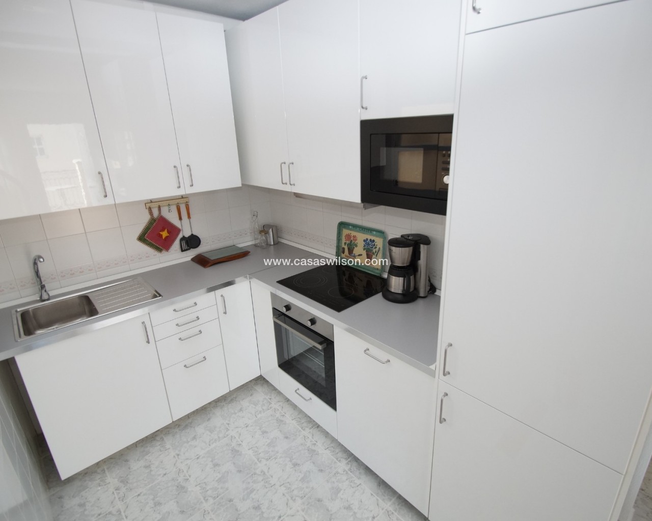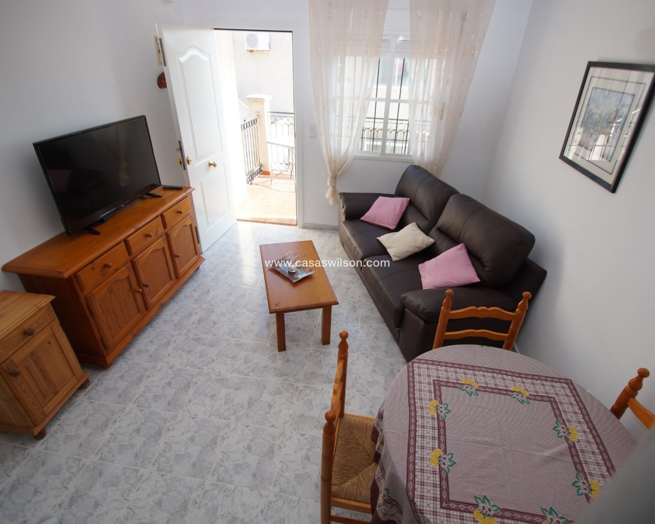 Bungalow on the top floor with internal stairs to private roof terrace. Located to the south, so sun on the terrace all day. The home has a new kitchen in 2020 and appears to be brand new. Sold with all furniture and appliances, except TV. The home has new air conditioning in the living room / kitchen.Communal swimming pool. Short way to the shopping center La Zenia Bulevard.The home is currently let on a long-term contract and a rent of EUR 6.792 per year. The rental contract can be terminated before a sale if buyer wants that.