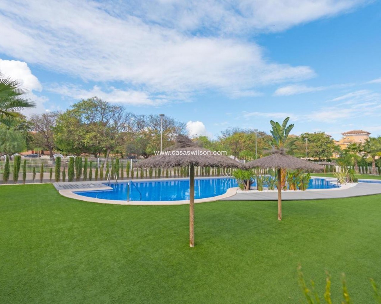 Nice Gruond floor in La Isla We have the pleasure of presenting this good and beautiful almost new living room apartment in the popular complex La Isla in Torrevieja.The apartment consists of a small hallway, 3 lovely bedrooms, 2 bathrooms, one in sweet. A large lovely living room with American kitchen, but all white goods, and a small back room, with washing machine with built-in dryer.The apartment is fitted with Aircan on ducts, which can deliver both cold and hot air.There is a large open window area, with access to a lovely terrace/garden, from which there is also direct access to common areas and a huge closed pool area.There is also a private parking in the basement included in the price.The apartment is beautifully furnished.A really good offer that must be seen.