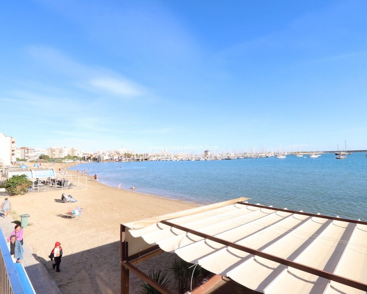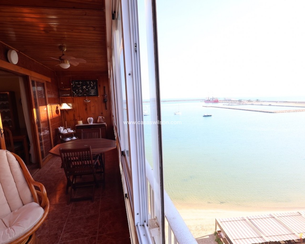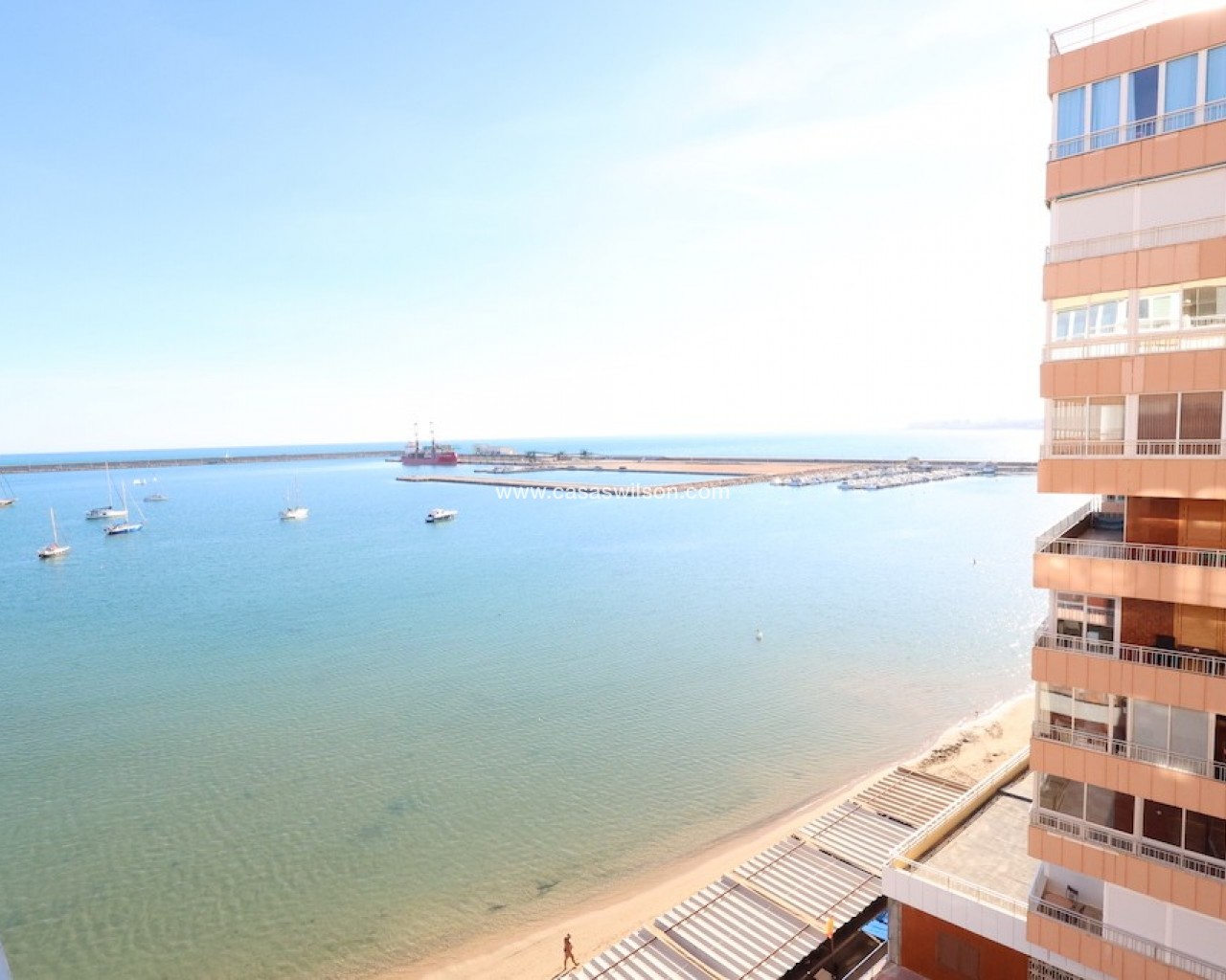 We presents at the Costa Blanca Alicante in Torrevieja an apartment first line on the beach on the 6floor with a panoramic view at the sea and port! There is a large glazed terrace! Close to restaurants, bars and supermarket! And dont forget the swimming pool!