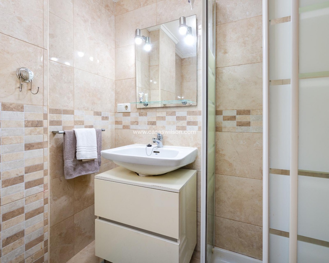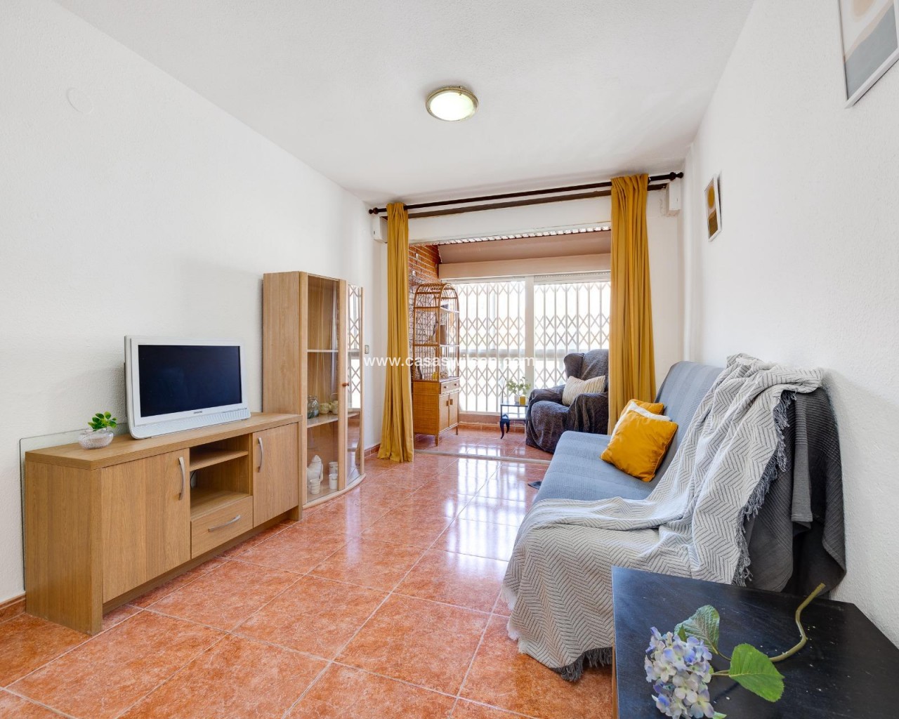For sale: a property located in one of the well-known Peysa buildings, just 300 meters from Playa de los Náufragos and only a 5-minute drive from the center of Torrevieja. Its excellent location offers proximity to all essential services such as supermarkets, pharmacies, public transport, and leisure areas. The property is on the ground floor and features access adapted for people with reduced mobility, as well as a communal pool, ideal for relaxing during the summer months. The home is distributed into two double bedrooms, a fully equipped bathroom with a walk-in shower, and an independent kitchen. The spacious living-dining room includes a glazed terrace, offering additional bright space perfect for year-round enjoyment. It also has a practical utility area that can be used as a laundry room or storage space, depending on the buyer’s needs. An excellent opportunity both as a permanent residence or a rental investment in one of the most sought-after areas of Torrevieja.