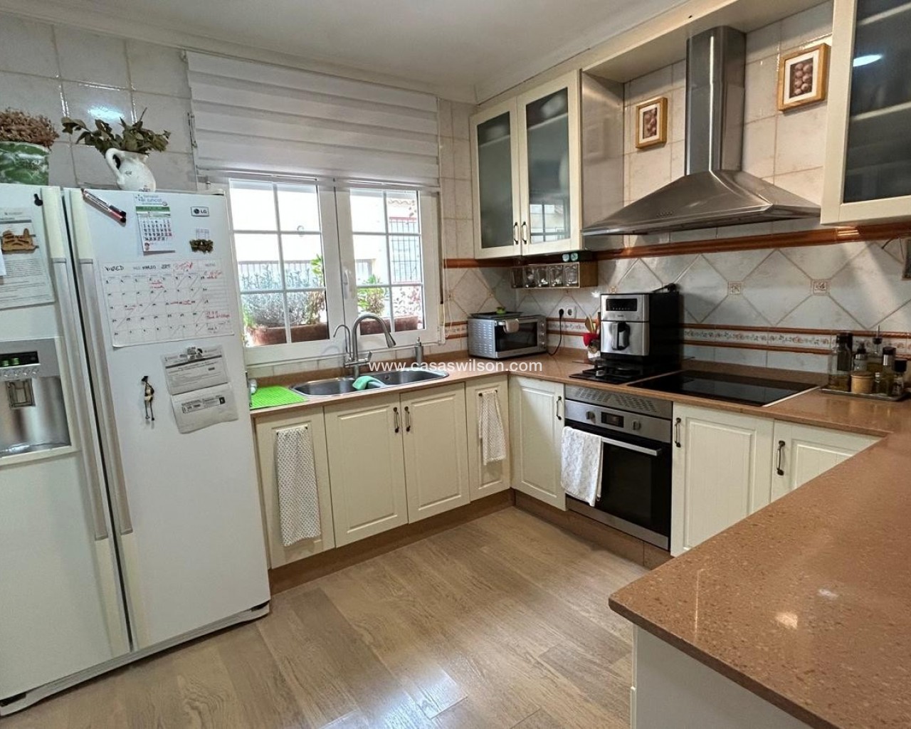 This charming semi-detached house in Los Montesinos offers a comfortable and well-maintained living space. The home features three spacious bedrooms, two bathrooms, and an additional guest WC. The independent kitchen is fully equipped with modern appliances, making it a practical and inviting space for cooking. The villa is in overall good condition and includes built-in wardrobes in all bedrooms for ample storage. The living area is bright and airy, complemented by air conditioning and heating to ensure year-round comfort. A cozy fireplace adds warmth and character to the space. Outdoor living is a highlight of this property, with a private yard, a spacious terrace, and a solarium offering plenty of space to relax and enjoy the sunshine. A balcony provides additional outdoor seating with pleasant views. The villa also comes with a private garage and storage room for added convenience. On the solarium is also wooden house which gives extra space and even a spare bedroom. Located in a well-connected area, the property is just a 10-minute drive from the beach, 30 minutes from the airport, and only 2 minutes from local amenities. Golf lovers will appreciate being just 15 minutes from a nearby course. Partly furnished and ready to move in, this villa is a fantastic opportunity for those looking for a comfortable home in a great location.