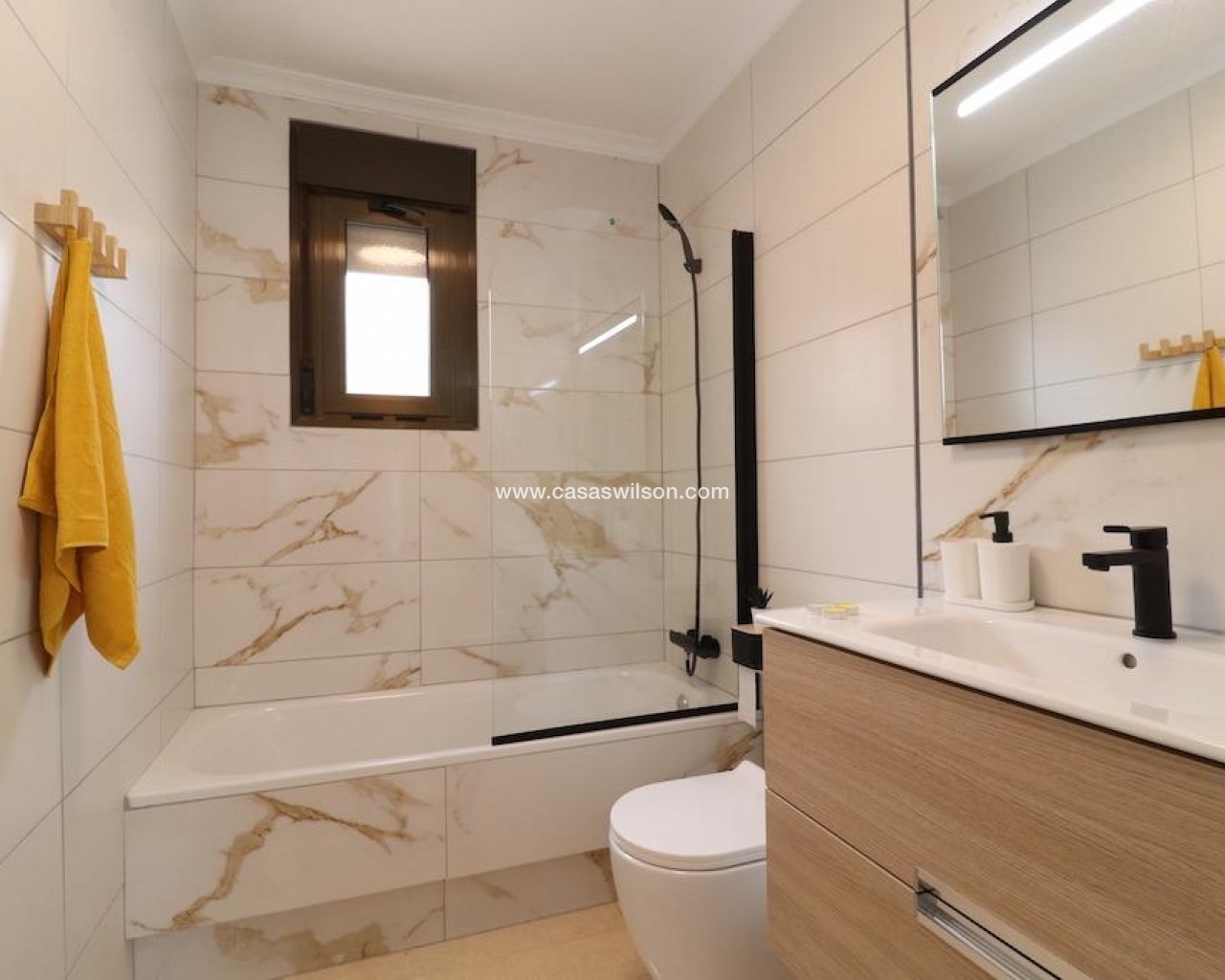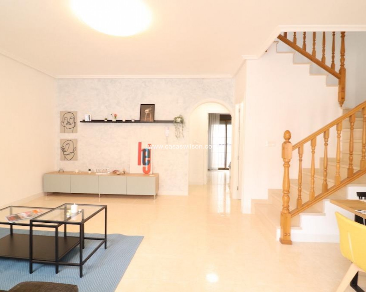 San Miguel de Salinas, Duplex townhouse of 102 m2 built, completely renovated and a paved garden of 82 m2, the house has 3 bedrooms (1 on the ground floor), 3 bathrooms, large independent kitchen, living room, terrace and a large solarium of about 25 m2, the house is sold furnished with an underground garage and large storage room, the residential has a community pool.