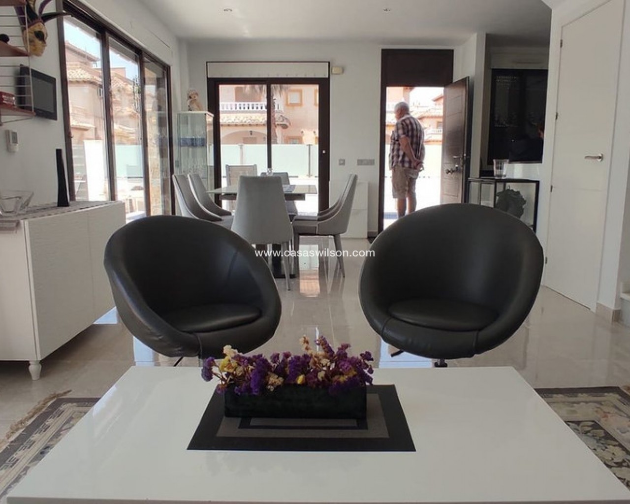 Welcome to Lomas de Cabo Roig in Orihuela Costa, where luxury and modern living come together in this exquisite detached villa. This stunning property offers an unparalleled combination of style, comfort, and convenience, providing an idyllic retreat for those seeking a truly exceptional lifestyle.Nestled within a peaceful residential area, this modern villa boasts a contemporary design that seamlessly blends with the surrounding Mediterranean landscape. The exterior showcases clean lines, sleek finishes, and large windows that allow natural light to flood the interiors, creating a bright and airy ambiance.As you enter the villa, you are greeted by a spacious and inviting living area that serves as the heart of the home. The open-plan layout effortlessly connects the living room, dining area, and a fully equipped modern kitchen, making it an ideal space for entertaining guests or enjoying quality time with family.The villa features two bedrooms, providing ample space for relaxation and privacy. Each bedroom has been thoughtfully designed to offer a tranquil sanctuary, with tasteful decor, built-in wardrobes, and large windows that frame picturesque views of the surrounding landscape.The villa also boasts two luxurious bathrooms, showcasing contemporary fixtures and finishes. These well-appointed bathrooms offer a spa-like atmosphere, where you can indulge in a rejuvenating bath or invigorating shower after a long day.One of the standout features of this exceptional villa is the private heated swimming pool, perfect for year-round enjoyment. Whether you prefer a refreshing dip on a hot summer day or a relaxing swim under the stars, this pool offers the ideal setting. The pool area is complemented by a spacious terrace, providing ample room for sun loungers, outdoor dining furniture, and a barbecue area, allowing you to make the most of the fantastic Mediterranean climate.Additionally, the villa boasts a large solarium, offering breathtaking panoramic views of the surrounding area. This versatile space provides an ideal spot for sunbathing, hosting gatherings, or simply unwinding while enjoying the stunning vistas.Lomas de Cabo Roig is a sought-after location, known for its tranquil atmosphere and proximity to a wide range of amenities. Within a short distance, you'll find pristine sandy beaches, championship golf courses, vibrant restaurants, shops, and entertainment options, ensuring that you have everything you need within easy reach.In summary, this modern detached villa in Lomas de Cabo Roig presents a rare opportunity to own a luxurious retreat in one of Orihuela Costa's most desirable locations. With its private heated swimming pool, spacious terrace, solarium, two bedrooms, and two bathrooms, this property offers a perfect blend of comfort, elegance, and modern living.Detached Villa, Orihuela Costa, Costa Blanca.2 Bedrooms, 2 Bathrooms, Built 100 m², Terrace 50 m².Setting : Close To Golf, Close To Port, Close To Shops, Close To Sea, Close To Town, Close To Schools, Close To Marina, Urbanisation.Orientation : North East, East, South, West.Condition : Excellent.Pool : Private.Climate Control : Air Conditioning, Hot A/C, Cold A/C.Views : Street.Features : Fitted Wardrobes, Private Terrace, Solarium, Marble Flooring, Double Glazing.Furniture : Fully Furnished.Kitchen : Fully Fitted.Parking : Underground, Private.Category : Resale.