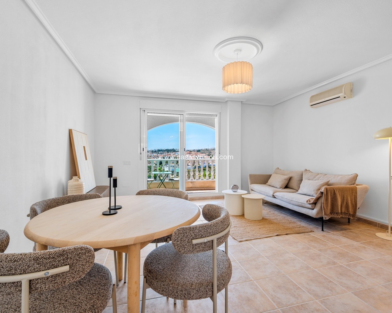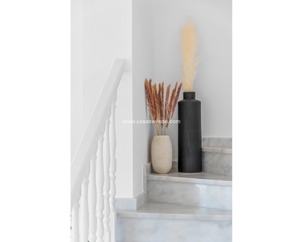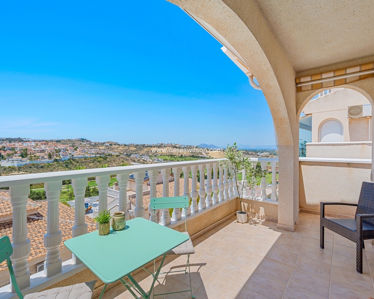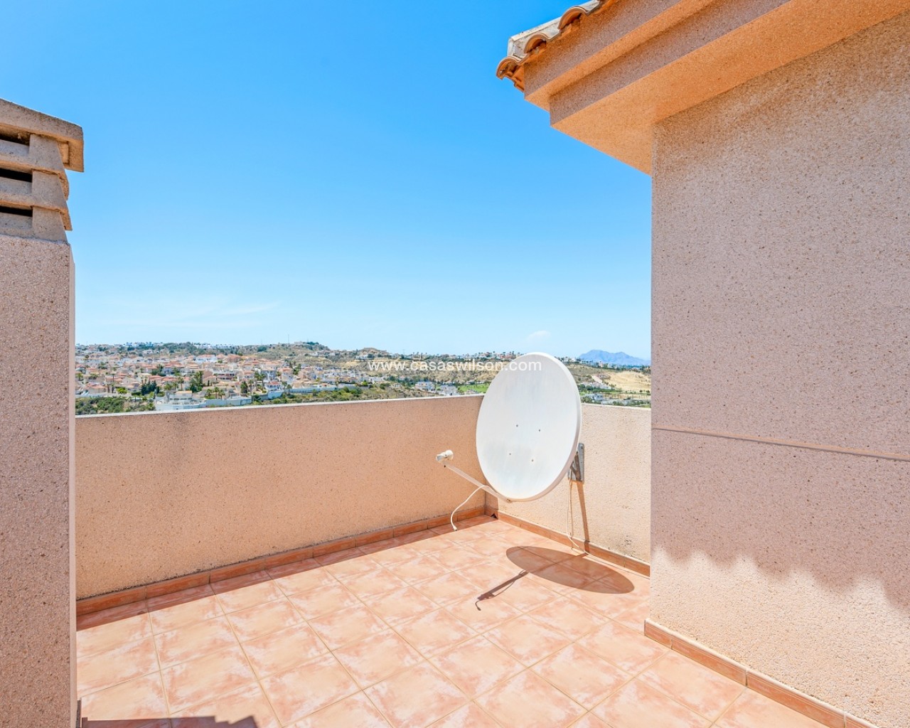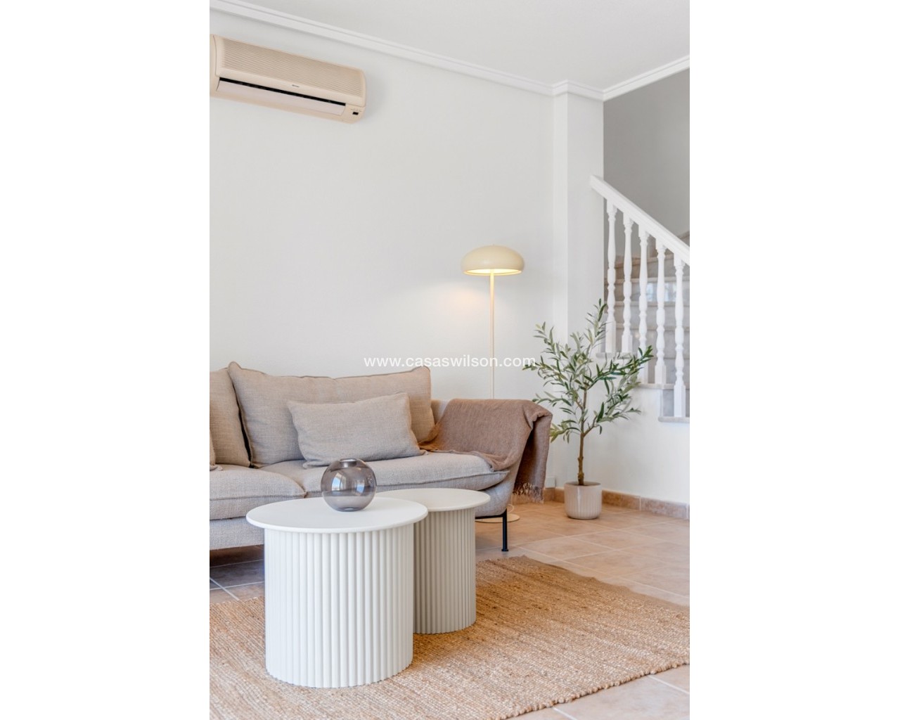 3 bedroom semi-detached house with beautiful views of the La Marquesa golf course. Built in 2006, the property sits on a 137 m² plot and features 105 m² of interior living space thoughtfully distributed across three levels. The main floor welcomes you with a recently renovated, fully equipped kitchen that opens to the dining and living areas in a bright, open-plan layout. This level also includes a guest toilet and two distinct outdoor spaces: a southwest-facing balcony with open views toward the La Marquesa golf course and green zones, and a charming front patio facing the quiet street—ideal for seating or casual outdoor dining.In the first floor you will find two additional bedrooms with fitted wardrobes and a bathroom. From the master bedroom you can enjoy the beautiful views of the golf course and the mountains. On the lower floor, you’ll find a spacious recreation room, a bedroom, a newly renovated bathroom, and a utility. This level opens onto a large, southwest-oriented patio with a garden area and an outdoor shower—perfect for relaxing in the sun or entertaining guests. The top floor leads to a private rooftop solarium with panoramic views of the surrounding landscape and golf course—an ideal spot for sunbathing, reading, or enjoying the sunset in total privacy. The property is equipped with air conditioning and includes three built-in wardrobes. It enjoys excellent sunlight throughout the day thanks to its southwest-facing outdoor areas and benefits from access to a well-kept community pool. Its location just minutes from the La Marquesa Golf Course makes it an ideal option for golf enthusiasts or those seeking a tranquil, green setting close to all amenities.