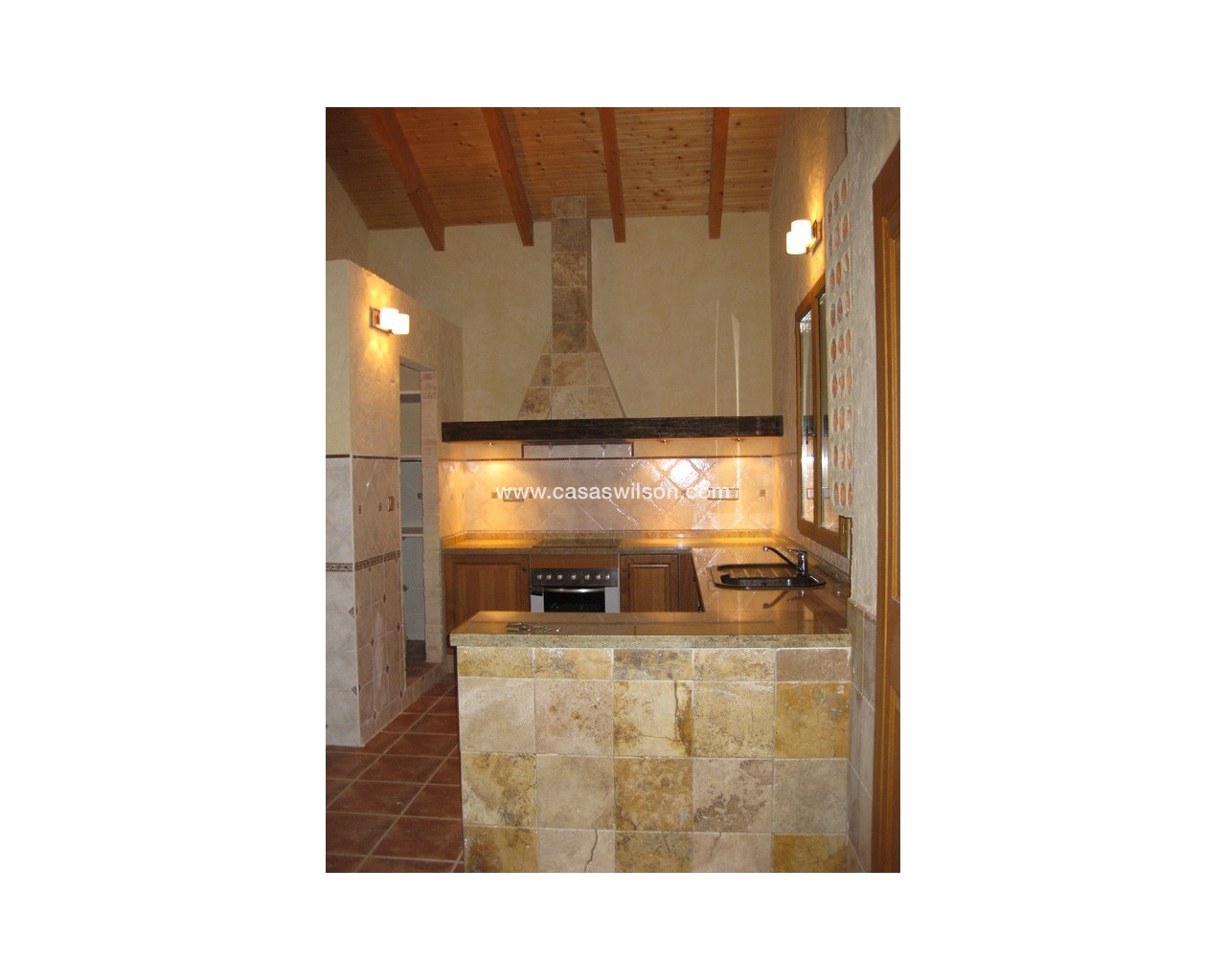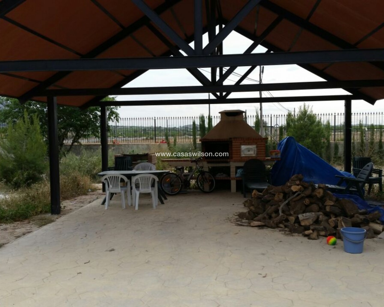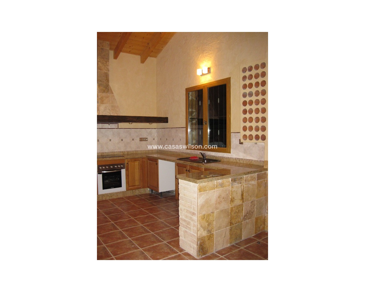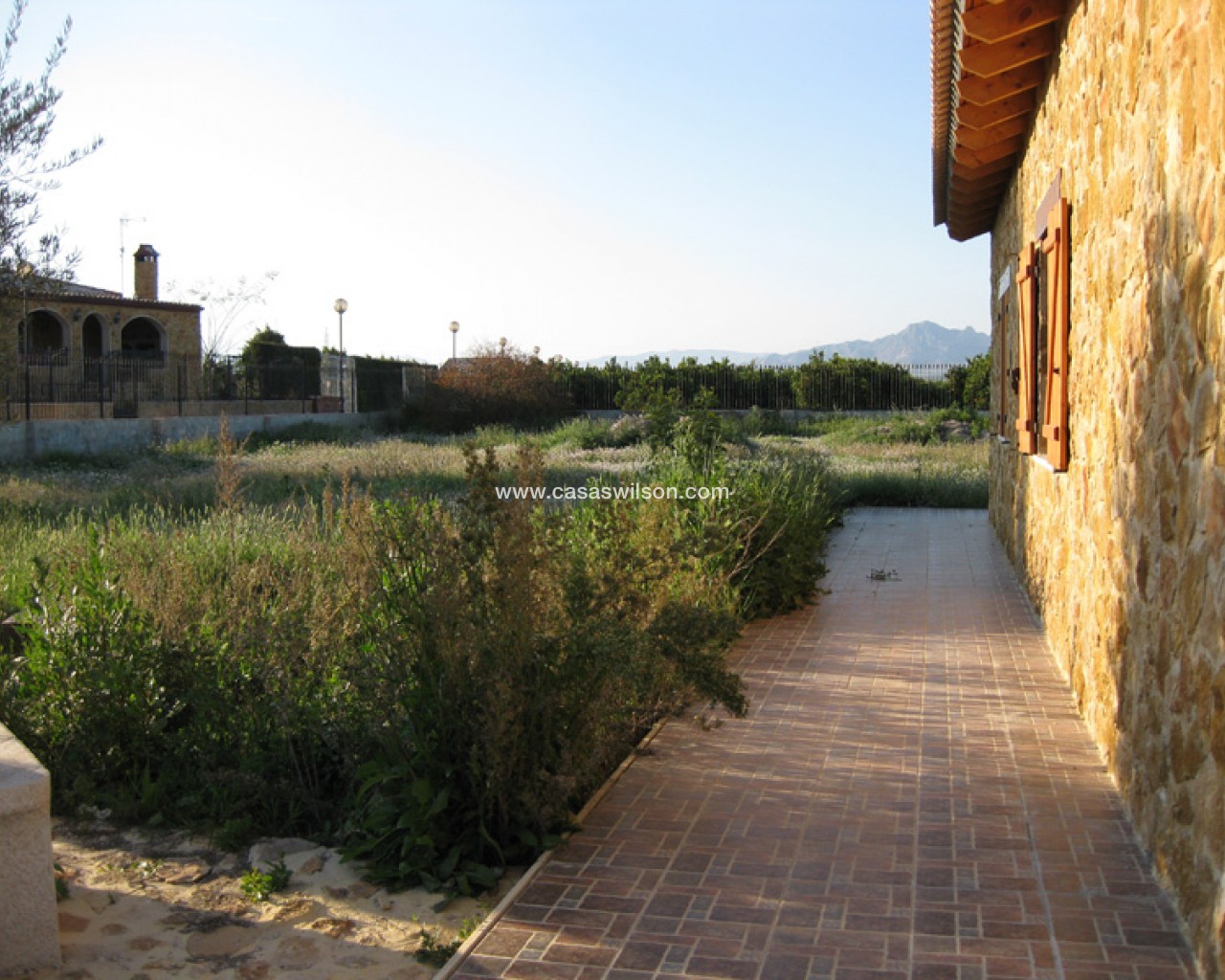 Rustic Castilian-style villa of 150 m² with high-quality finishes Exclusive rustic Castilian-style villa with a total built area of 150 m², constructed with top-quality materials. The façade is clad in sandstone, the interior features a wooden gable roof with exposed beams, old travertine marble skirting, a cast-iron wood-burning fireplace, and oak carpentry. Windows have double wooden shutters and double glazing (Climalit type) for excellent insulation.Located in Benferri (Alicante), the property enjoys an excellent location, only 2 minutes from the A-7 motorway towards Alicante and Murcia. Distances: 7 km to Orihuela, 25 km to Murcia and Elche, 45 km to Alicante, 35 km to the coast (Guardamar del Segura) and 40 km to Alicante Miguel Hernández International Airport.The house includes three bedrooms, two bathrooms, living room, kitchen, pantry, and utility room.Outside, there is a large covered porch of about 60 m², with an iron structure and a tiled gable roof, equipped with a sink, barbecue, wood-burning stove, and traditional oven.The surrounding plot of approximately 5,000 m² is fully enclosed with a brick wall and decorative wrought-iron fencing. It includes outdoor lighting, trees and ornamental plants, and a drip irrigation system.The property is fully registered, with electricity and water connections, TV antenna, private CCTV system, and internet access.
