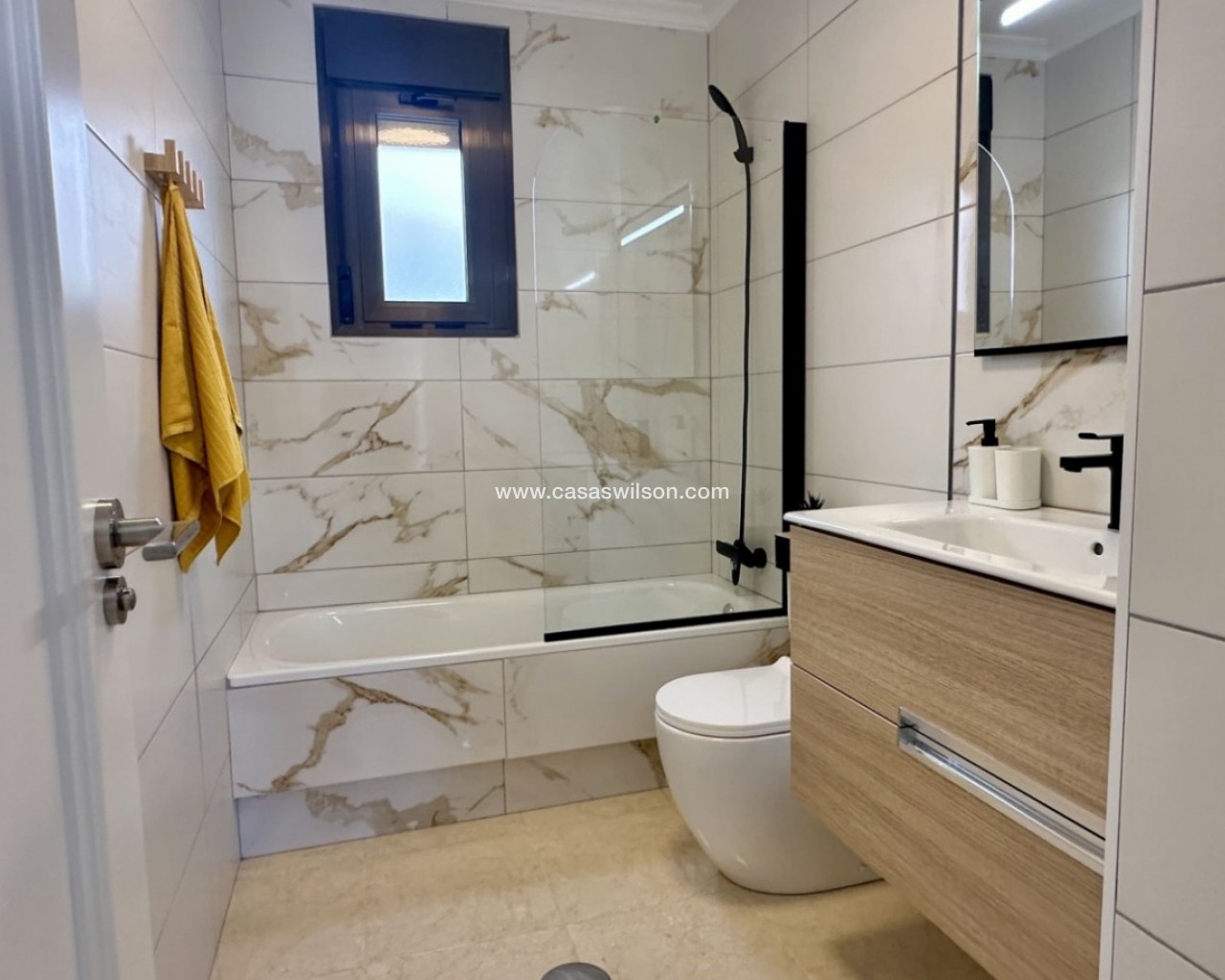 We’re proud to present this beautifully renovated townhouse located in a quiet yet convenient area of San Miguel de Salinas — the perfect blend of comfort, space, and modern living. This 3-bedroom, 3-bathroom home is move-in ready and offers everything you need for a full-time residence, holiday retreat, or rental investment. Prime Location Ideally situated in a well-maintained urbanisation, the property is within walking distance of two restaurants and an international school. Just a short drive away, you'll find the local village, commercial centres, and additional schools — giving you the best of both tranquillity and accessibility. Outdoor Living Step into a spacious, low-maintenance front garden with a large terrace — ideal for dining al fresco, relaxing with a book, or entertaining guests in the sun. Bright & Functional Interiors The main level features a light-filled living and dining area with stylish finishes and an inviting atmosphere. The fully equipped separate kitchen includes modern appliances and direct access to a utility area. Also on the ground floor is a flexible bedroom (currently used as a single) and a beautifully renovated bathroom with a walk-in shower — ideal for guests or those preferring single-level living. Upstairs Retreat On the upper floor, you’ll find two generous double bedrooms, each with its own en-suite bathroom. The master suite also enjoys access to a private balcony with open views — a perfect spot to enjoy your morning coffee or evening breeze. Added Convenience The property includes access to a secure communal garage with storage and a private parking space — a valuable feature in this popular area. Whether you're looking for a stylish new home or a solid rental investment on the Costa Blanca, this well-located and immaculately presented townhouse is a fantastic opportunity. Contact us today to book your private viewing — this property won’t stay on the market for long!