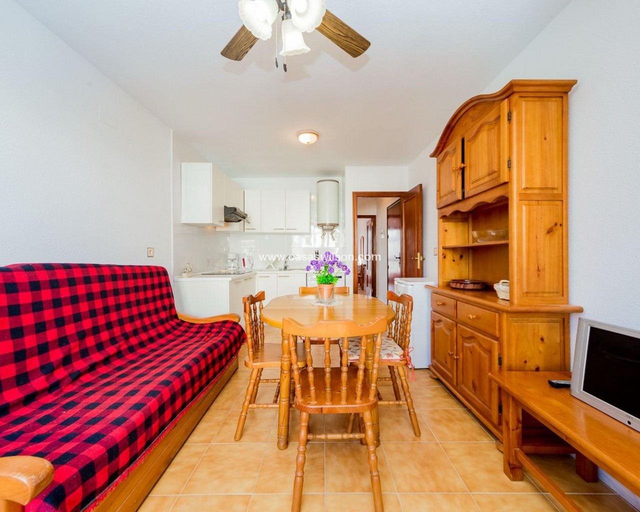 Bright 1-bedroom apartment with swimming pool in Torrevieja One-bedroom flat located on the first floor without a lift. The property stands out for its practical layout and pleasant brightness. It has a living room with direct access to a balcony, ideal for enjoying the outdoors and the views of the residential area. The kitchen is integrated into the main space, offering comfort and functionality for everyday living. The bedroom is spacious and has good natural ventilation, while the bathroom is in perfect condition. The flat is located in a quiet residential area with a communal swimming pool, perfect for relaxing during the summer months. LOCATION: Torrevieja is in the province of Alicante (Costa Blanca). It is famous for its Mediterranean climate and its coast. We cannot forget its promenades where we can find some restaurants along the fine sandy beaches. It also has many excellent beaches such as Playa de los Náufragos, Playa de los Locos and Playa de la Mata. Therefore, it is considered a remarkable tourist town where the environment takes an important place as an important tourist attraction. In addition, we can find many shopping centres (Habaneras, La Zenia Boulevard), golf courses, sport centres, hospitals (such as Hospital Universitario de Torrevieja) and airports such as Alicante Airport (35 km away) and Region of Murcia International Airport (43 km away). DISTANCE TO THE SEA: 1000m COMUNITY: 150 €. IBI: 75 €. Should you have any question do not hesitate to contact us!
