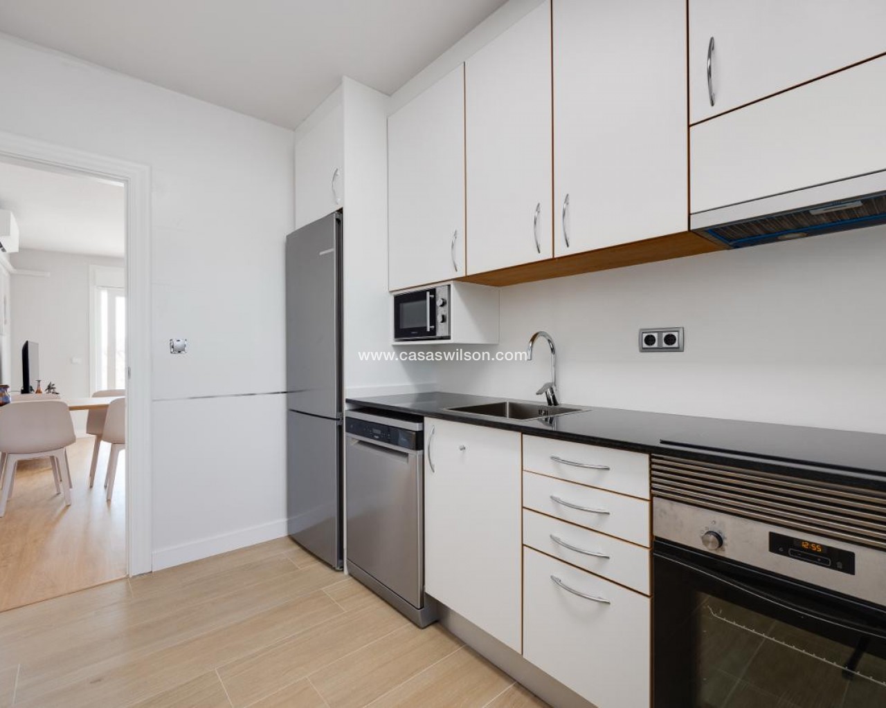 Ready to move into this beautiful, fully renovated first-floor apartment with 2 bedrooms, located just 300meters from the Aquamarina – Dehesa de Campoamor Beach. This modern apartment has70 m² and consists of 2 bedrooms with fitted wardrobe,1 modern bathroom with shower, spacious and bright living / dining area with a large sliding door that opens onto a 12 m2 sunny balcony overlooking the community green area, making it the perfect place to relax, have breakfast, or watch the sunrise over the Mediterranean Sea and as well as a independent fully equipped kitchen with utility area. The apartment is located in a residential complex with a communal pool, fully furnished and is equipped with air conditioning C/W in all rooms to ensure maxim um comfort throughout the year. Just a short walk from supermarkets ,restaurants, cafes, pharmacy, beach bars, water sports and all kinds of services, it is very close to Zenia Boulevard, the largest shopping centre in the province of Alicante with over 150 shops. Just a 10-minute drive takes you to 4 internationally renowned golf courses Villamartín, Las Ramblas, Campoamor and Las Colinas. Aquamarina - Dehesa de Campoamor Beach is one of the most sought-after areas of Orihuela Costa, perfect for permanent residence or investment. Don't miss the opportunity to live the dream in this magnificent apartment by the sea with exceptional amenities on your doorstep! The airports of Alicante and Murcia (Corvera) are only 45 min drive away. This highly popular area with close proximity to ALL amenities makes this property perfect for a holiday home, permanent residence or a great rental opportunity, so be quick as it will not be on the market for long. MUST BE SEEN !