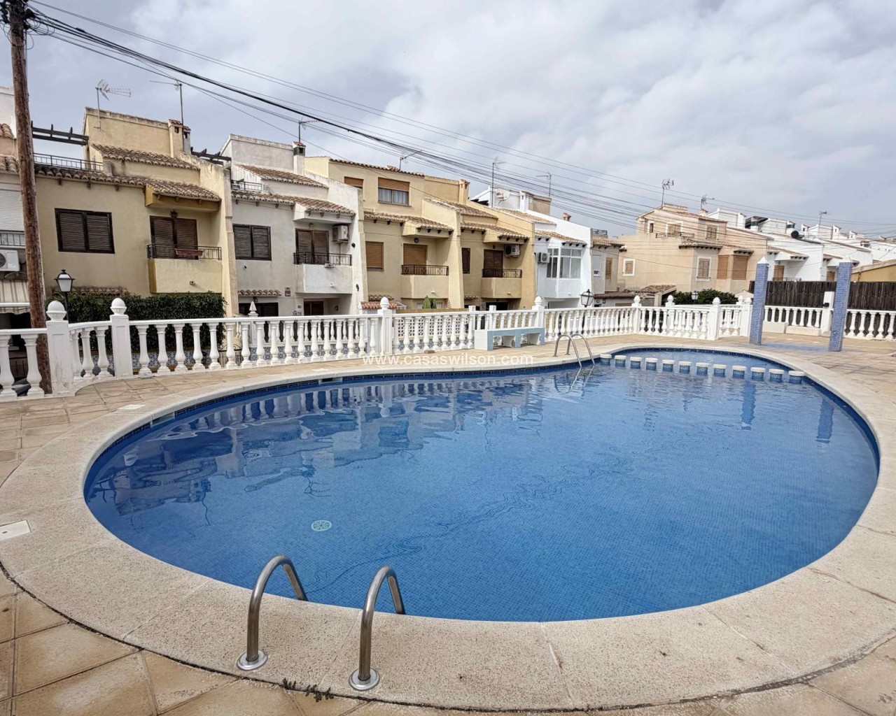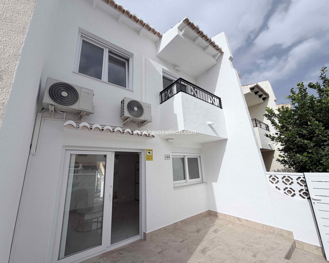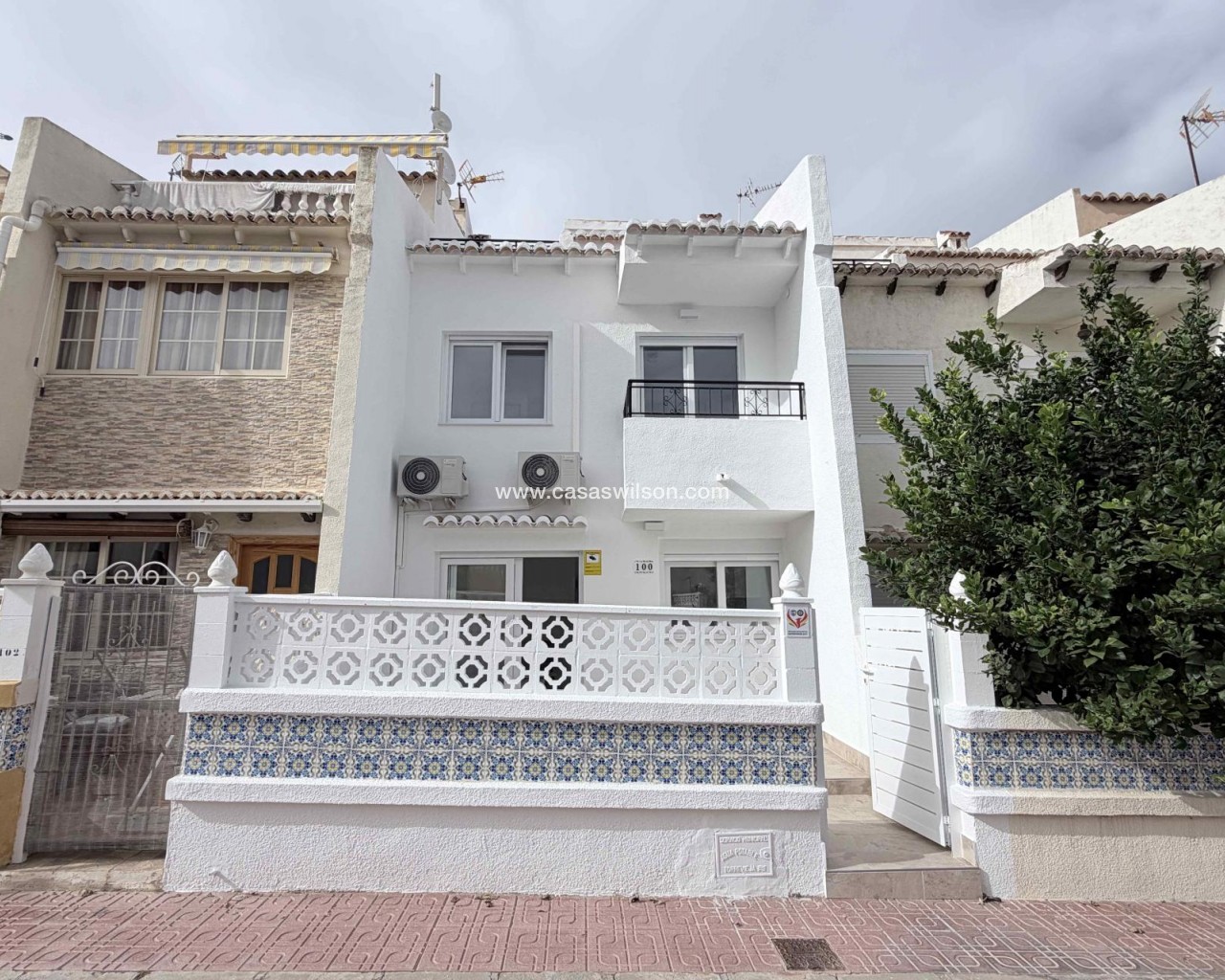Discover this fully renovated, move-in ready townhouse, designed for those who value comfort, style, and an excellent quality of family life.The property features three spacious bedrooms and two bathrooms, offering the perfect space for each member of the household to enjoy their own private retreat. Imagine waking up each morning to natural light on your private balcony, or sharing unforgettable moments on its two terraces, ideal for barbecues, al fresco dining, or simply relaxing in the sun.Recently renovated, this townhouse allows you to move in worry-free and enjoy it from day one. It also boasts two air conditioning units that guarantee year-round comfort.The property offers access from two streets, is distributed over three floors, and includes a solarium with panoramic views of the sea and the Torrevieja lagoons—a perfect spot to unwind and enjoy the scenery.The private residential complex features a communal swimming pool, ideal for cooling off and enjoying time with friends or family during the warmer months. Unbeatable LocationJust a few minutes' walk from the Filton Shopping Centre (Los Balcones), with bars, restaurants, a pharmacy, beauty salons, a veterinarian, and much more!The Torrevieja University Hospital and several schools are less than 3 minutes away by car, while the beaches of Punta Prima and La Zenia are less than 10 minutes away.Alicante International Airport is only 40 minutes away by car, making this property a perfect option for both permanent residence and holiday homes.Expenses and Community FeesThe community fees are approximately €420 per year, and the property tax (IBI) is around €220 per year, ensuring comfortable and affordable maintenance.Don't miss this unique opportunity. Come and visit this magnificent townhouse and discover the home where you'll start your new life.