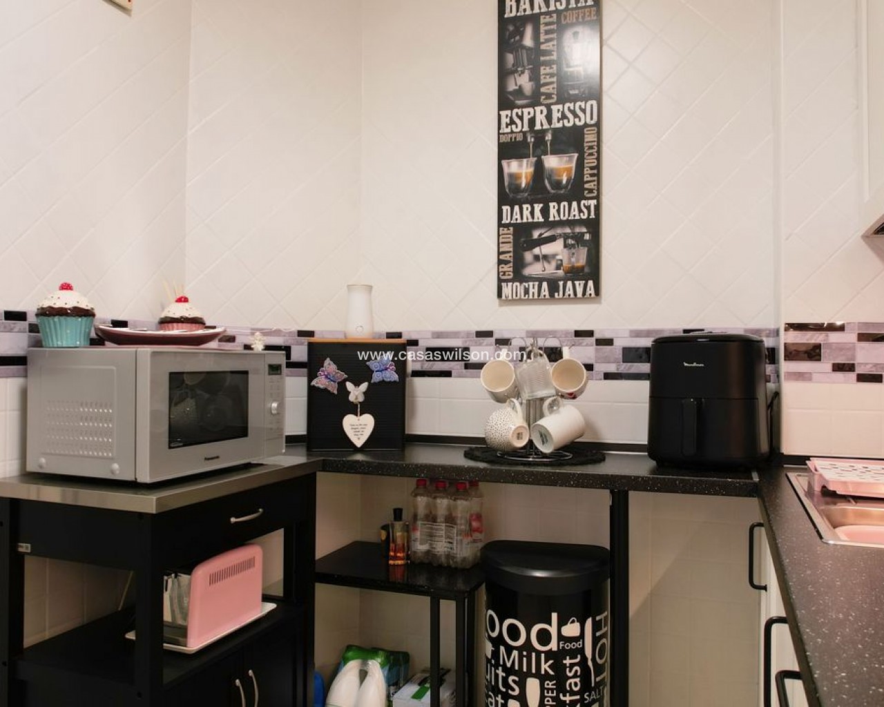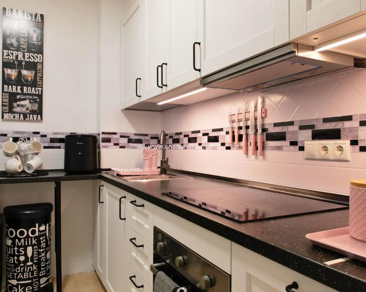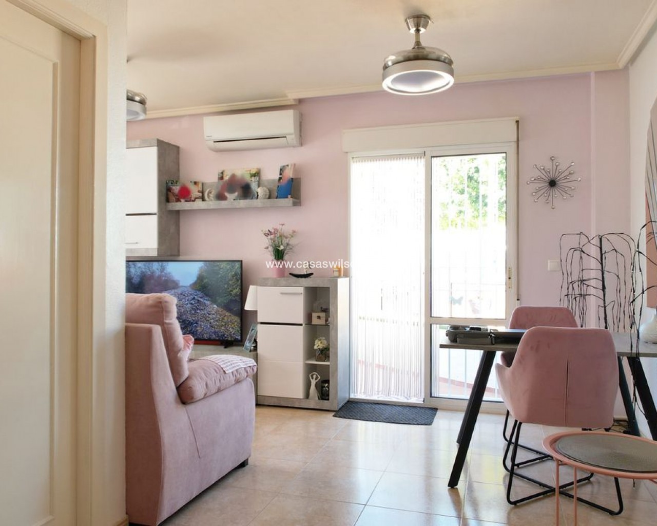 Ground floor apartment with 2 bedrooms and 1 bathrooms in Rojales, Alicante.Discover this charming ground floor apartment, offering stunning park and river views. Boasting two spacious bedrooms and a modern bathroom, this bright and recently renovated home features a fully equipped kitchen with a separate utility room. The open-plan living area benefits from natural light and opens onto a west-facing terrace overlooking the park and Segura River, perfect for relaxing or entertaining. One bedroom has fitted wardrobes and views of the park, while the other includes a small balcony. The property is well-maintained and includes amenities such as air conditioning, ceiling fans, mosquito nets, and a communal solarium shared by a few neighbors. Conveniently located within walking distance to Rojales charming town center and its amenities, this property is ideal as a full-time residence or a holiday retreat.SUMA/IBI: 135€/YearlyCommunity fees: 480€/YearlyBedrooms: 2Bathrooms: 1Build Size: 77 m2Orientation: NorthwestYear of construction: 2006Air conditioningHeatingElevated propertyBalconyCeiling fansCommunal solariumFitted wardrobesFully fitted kitchenMosquito netsPart furnishedPhone entry systemSeparate kitchenUtility room