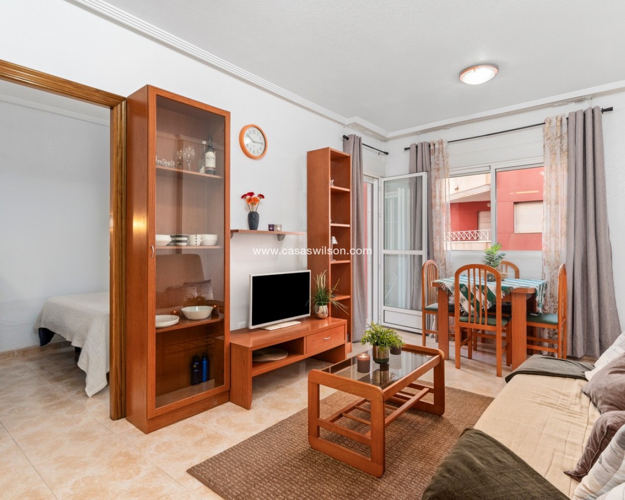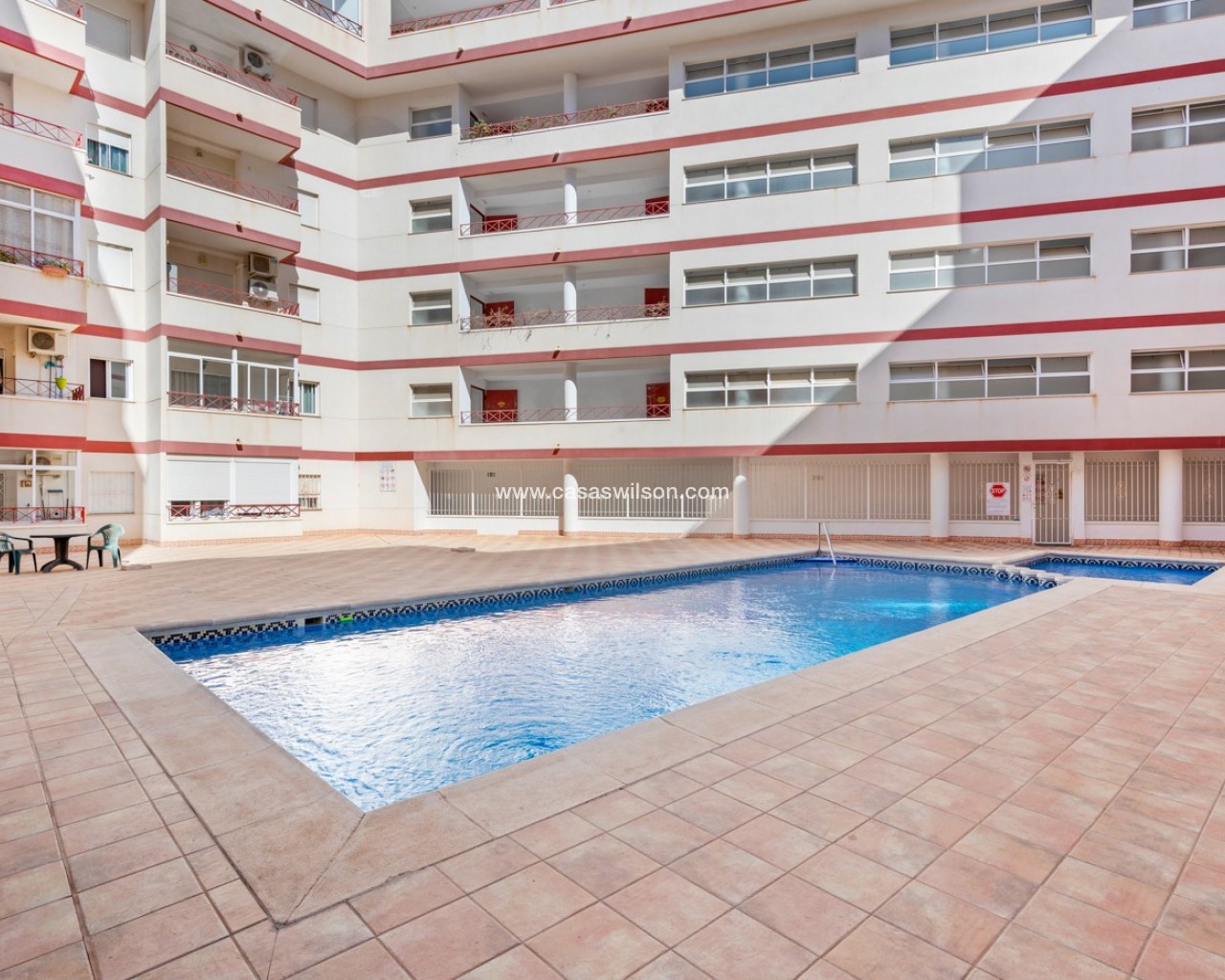 Discover a highly attractive holiday apartment featuring 2 bedrooms, 1 bathroom, and a sunny balcony – perfectly located within walking distance of both the beach and the marina in Torrevieja. In addition to the balcony, the property offers a private patio, ideal for outdoor dining, relaxing or as convenient storage for bicycles or golf equipment. A valuable feature whether you are looking for a holiday home or a comfortable year-round residence. Layout and Features The apartment is situated on the first floor of a building equipped with a lift. The community offers a communal swimming pool with seating areas, perfect for relaxing days in the sun. You are welcomed by a spacious entrance hall with storage for coats and shoes. To the left is the master bedroom with a large built-in wardrobe. The bathroom is bright and spacious, with a bathtub and window, providing natural light and ventilation. The kitchen has excellent storage space and direct access to both the laundry area and the private patio. A breakfast bar opens up to the living room, creating a social layout. The second bedroom and the balcony are accessed from the living room. Views, Park Areas and Communal Spaces The building also offers a communal rooftop terrace, where you can enjoy sunshine and lovely views throughout the day. The property is located next to the popular Parque de las Naciones, a beautifully designed park with playgrounds, ponds and walking paths. Colourful birds move freely in the area – and it is not unusual to spot a rooster just outside the entrance. During the summer months, the park hosts concerts and various events, all visible from the rooftop terrace. Prime Location Near the Beach, Marina and Town Centre With walking distance to the beach (approx. 900 m), the marina and the vibrant centre of Torrevieja, the apartment enjoys an exceptional location close to restaurants, bars, shops, services and cultural activities. Property Details Built area: approx. 70 m² Usable area: approx. 58 m² Orientation: East Community fee: approx. 36 €/month IBI/property tax: approx. 231 €/year Sold partly furnished About Torrevieja Torrevieja is one of Costa Blanca’s most popular coastal towns, known for its mild climate, beautiful beaches and vibrant atmosphere all year round. The city offers a wide selection of restaurants, cafés, shops and cultural events, as well as a picturesque promenade enjoyed by both locals and visitors. Surrounded by two unique salt lakes, Torrevieja benefits from a microclimate considered one of the healthiest in Europe. It is a perfect place to live, holiday or invest in.