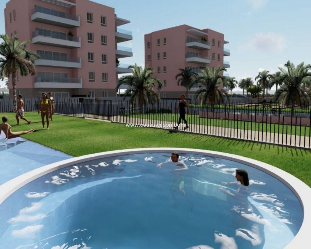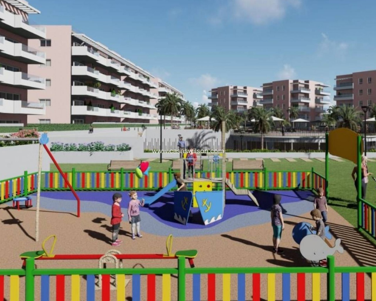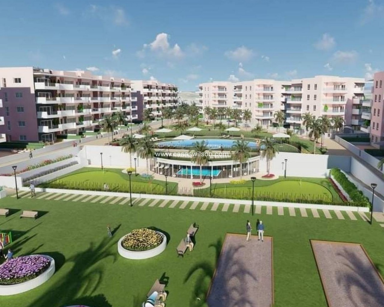 NEW BUILD RESIDENTIAL IN EL RASO, GUARDAMAR DEL SEGURA New Build residential complex of modern style apartment in El Raso, Guardamar del Segura! This apartments have 3 bedrooms, 2 bathrooms, open plan salon with kitchen, ground floor with private garden, middle floor with terrace and top floor with private solarium. Complex with swimming pool, green areas, golf greens, Spa, playground, bio-healthy machines and sports areas. Complex located in green area close to the salt lake, all amenities, walking distance to commercial centre, bars and restaurants. El Raso is a part of Guardamar del Segura. Guardamar del Segura is a town located on the Costa Blanca South. With its 11 kilometres of natural beach and its large pine forest. Guardamar del Segura has a large port with activities throughout the year, it has a large sports centre with paddle tennis, tennis, soccer and a large heated swimming pool that works all year round. It also has a library where there is free wifi and computers. Guardamar del Segura is only 20km away from the Alicante - Elche (El Altet) airport, where there are many flights every day with connections to the main European cities, due to the demand for tourists on the Costa Blanca.