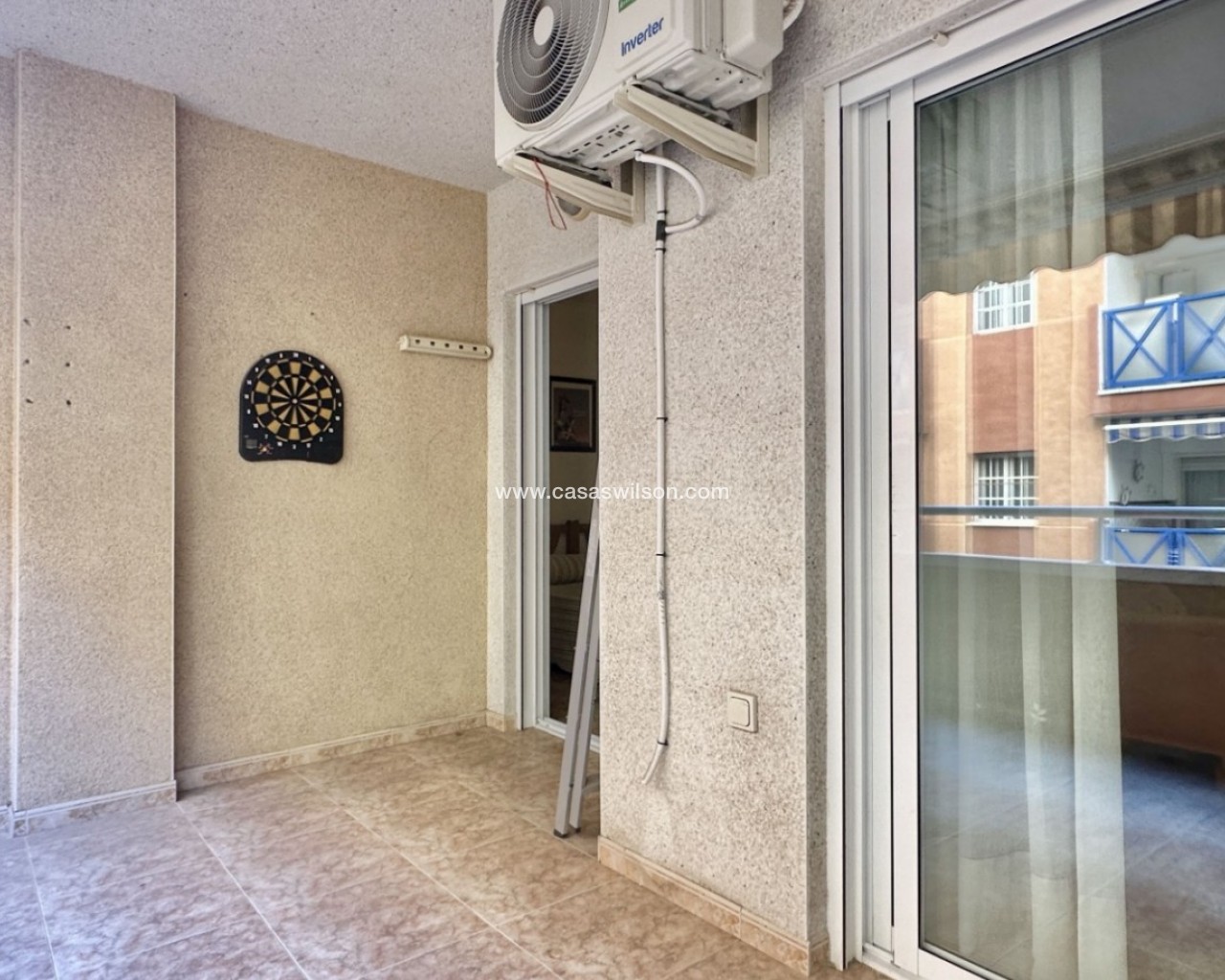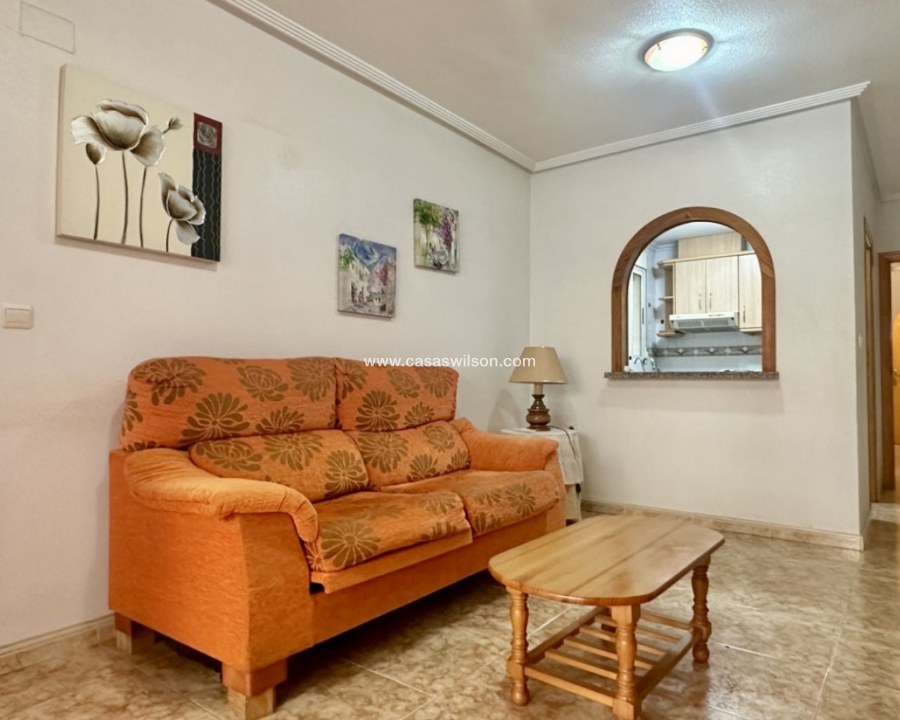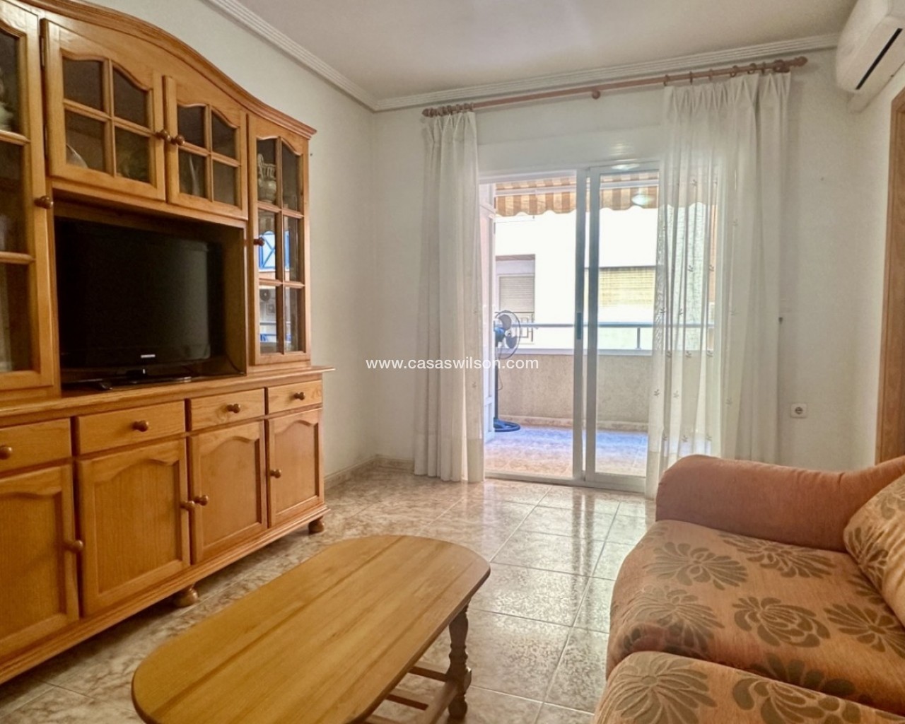 Welcome to this charming and well-maintained apartment located in the heart of Torrevieja, just a short 2-minute walk from the beautiful Mediterranean coast. A perfect opportunity for those looking to enjoy beachside living, use as a holiday home, or invest in a rental property. Inside, the apartment features a bright and comfortable living room, complete with direct access to a spacious covered terrace — ideal for relaxing, dining, or enjoying the sea breeze. The semi-open kitchen connects through a Mediterranean-style arch, adding character and functionality. The property includes 2 bedrooms and 1 bathroom, all on one level. Both bedrooms are spacious and offer built-in storage options, with one of them leading directly to the terrace. The home is offered fully furnished and ready to move in. Key Features: 2 bedrooms1 bathroomComfortable living room with natural lightSemi-open kitchenSpacious terrace with storageFully furnished2 minutes’ walk to the beachClose to supermarkets, cafés, restaurants, and promenadeGreat rental investment potential